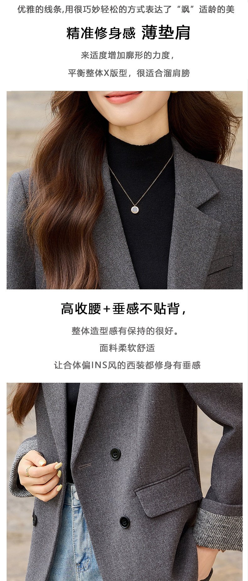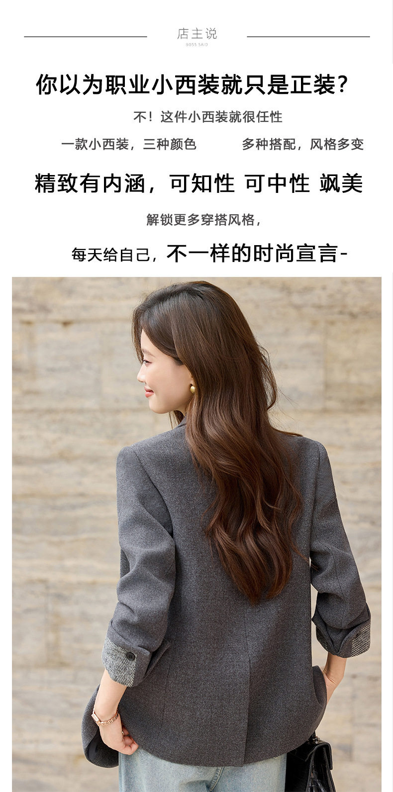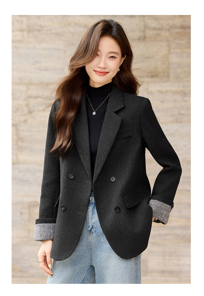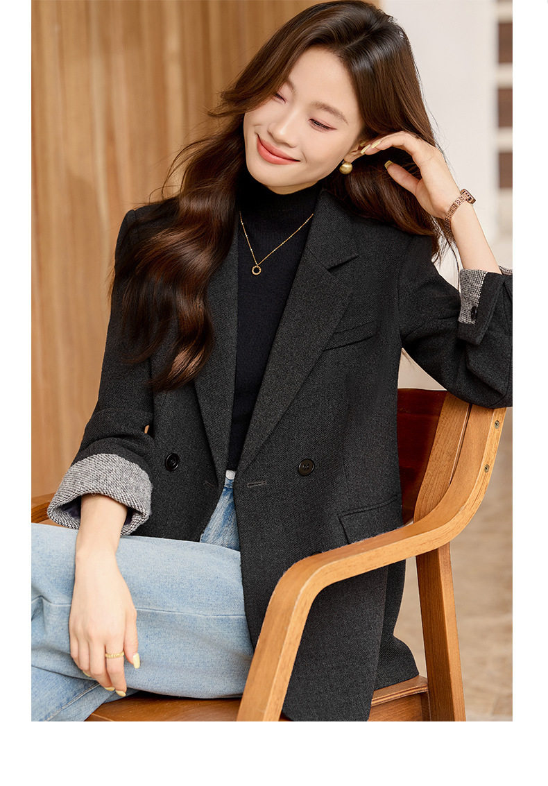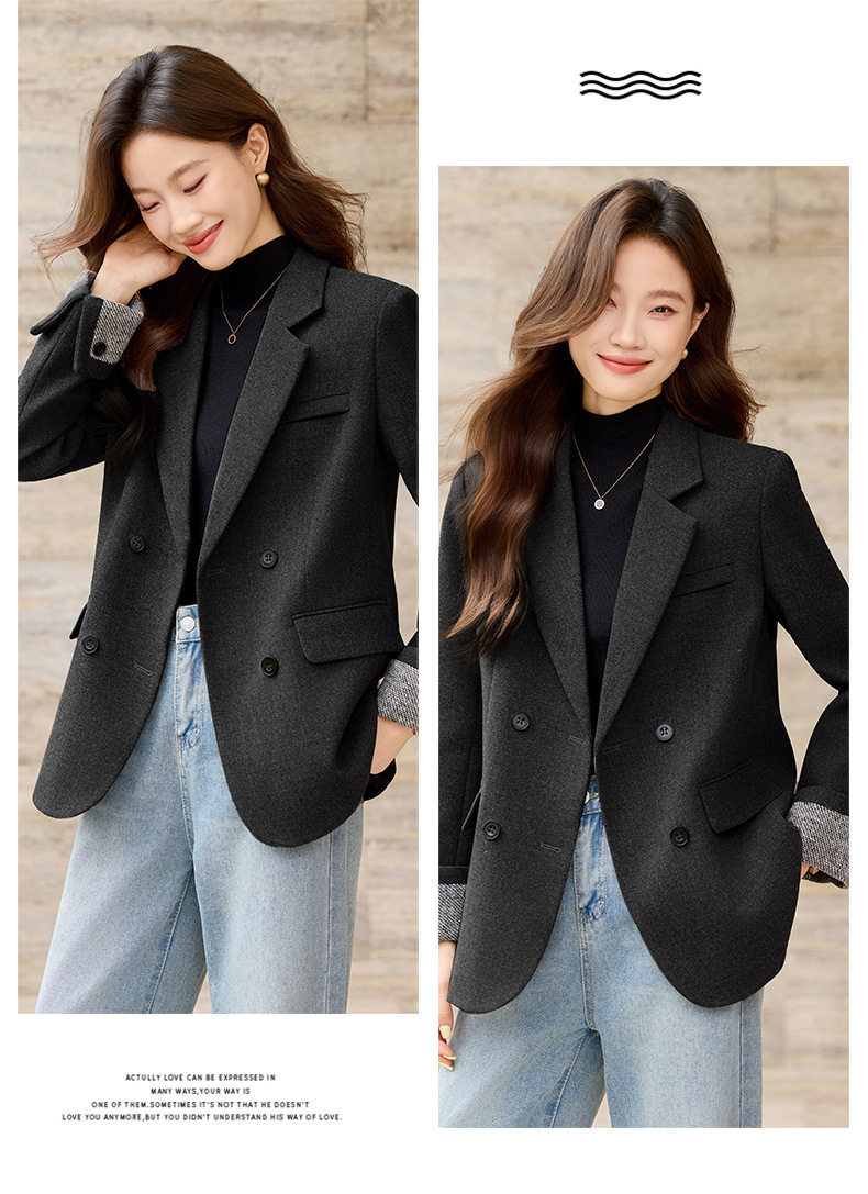 「自」全新升级【铂金会员220/天猫289/差价69】(32712)洛诗琳气质拼色西装外套202新款一粒扣百搭通勤加厚外套女