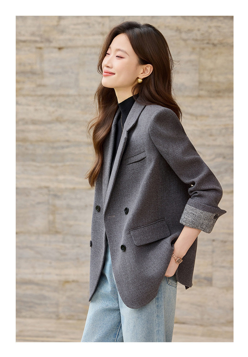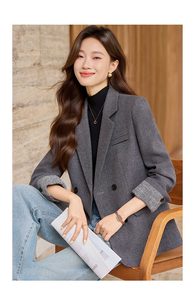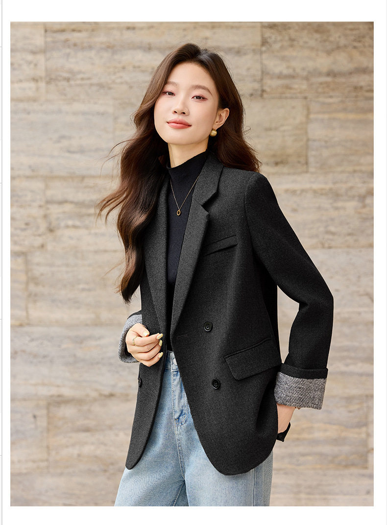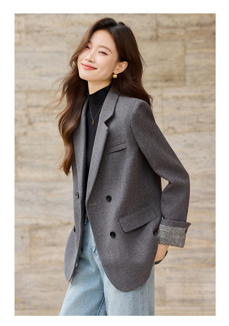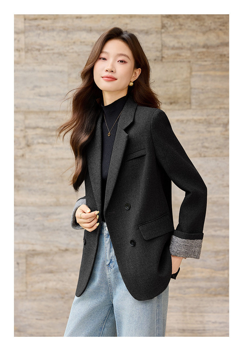「自」全新升级【铂金会员220/天猫289/差价69】(32712)洛诗琳气质拼色西装外套202新款一粒扣百搭通勤加厚外套女