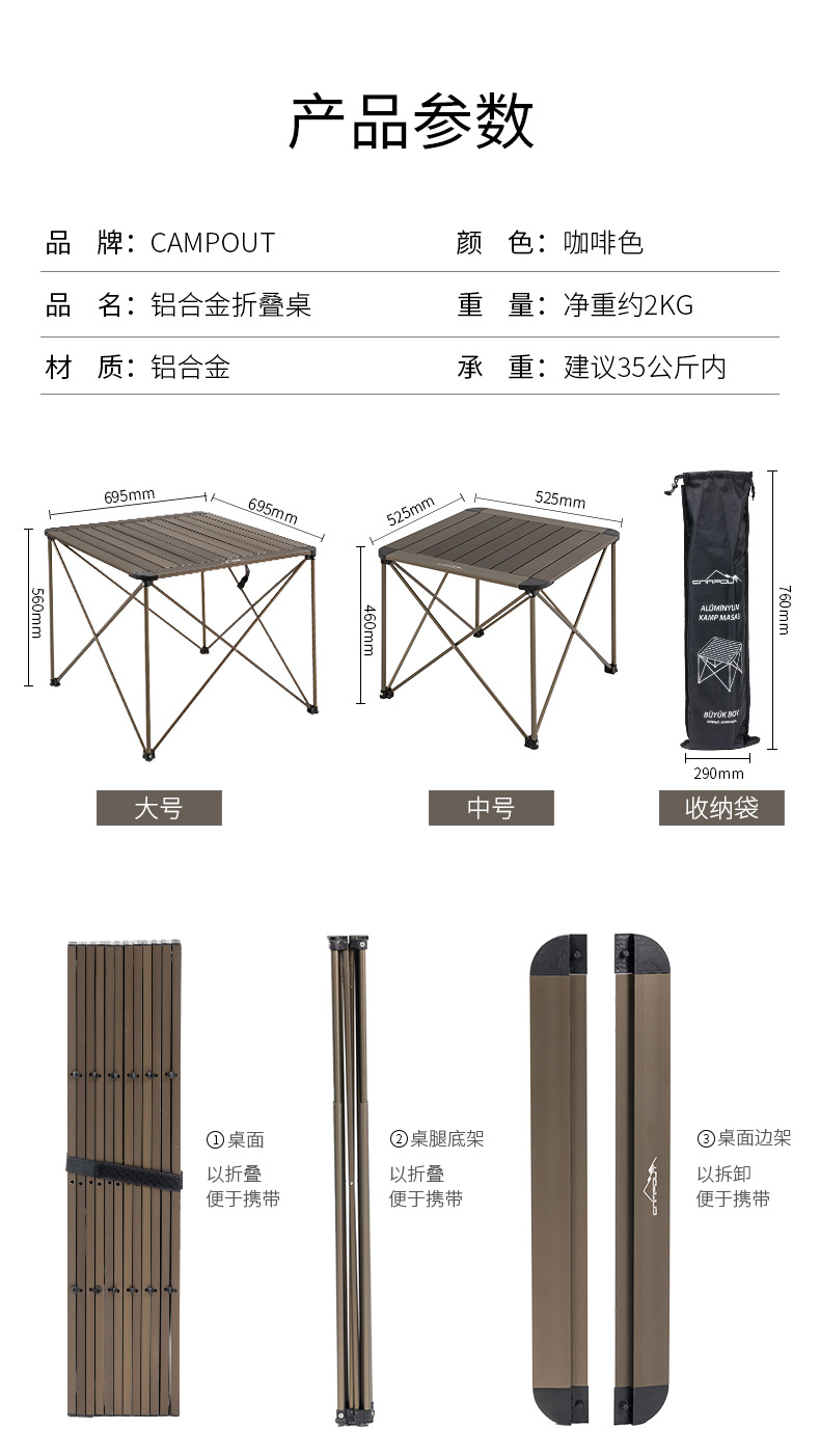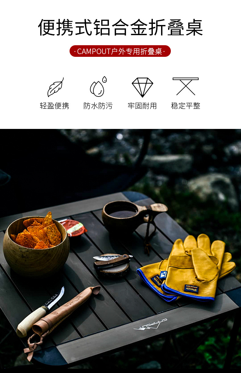 CAMPOUT「户外露营折叠桌」全铝合金野餐桌 便携式露营长桌 旅行摆摊折叠桌