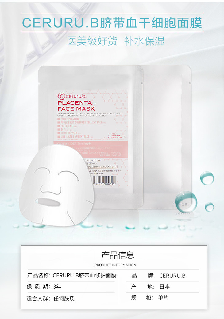 ceruru.b 脐带血干细胞再生面膜 保湿补水修护