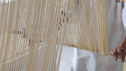 挂面是面条的工艺延伸,需经和面、搓条、悬挂拉伸、晾晒等工序,形成细长易储的干面。