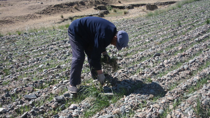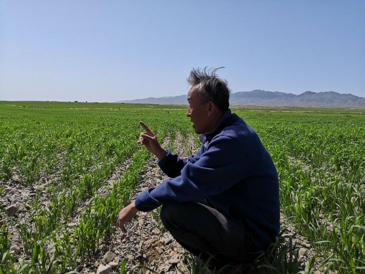小麦采用生态种植,种植土壤是从河里挖来铺在土地上的砂地,当地极其干旱,没有灌溉条件, 施肥反而会导致小麦烧死。加上四季温差大,昼夜温差也较大,小麦几乎没有病虫害,基本处于“放养”状态。 因为土地压砂的原因,草几乎很少。