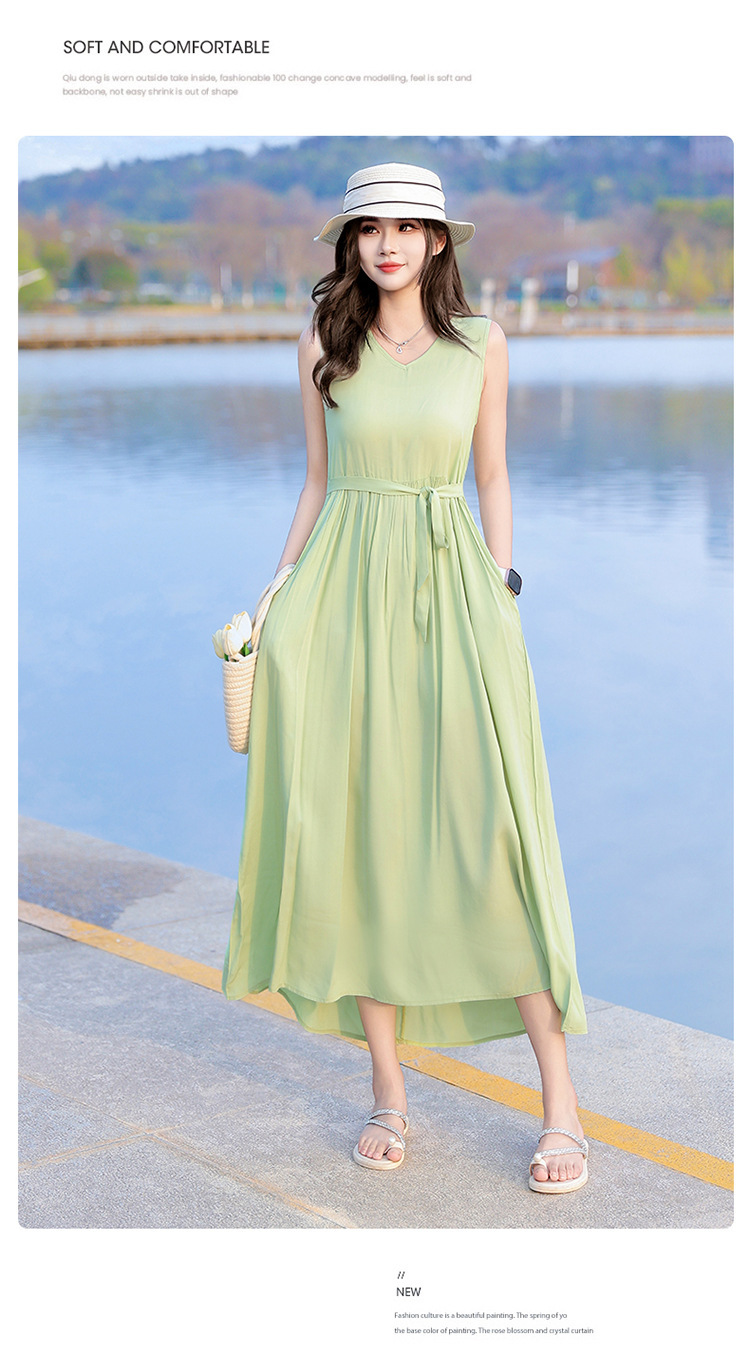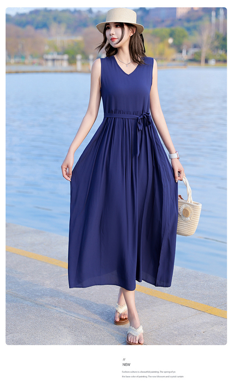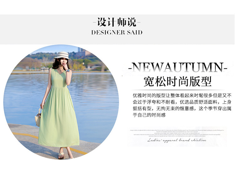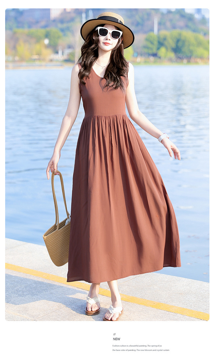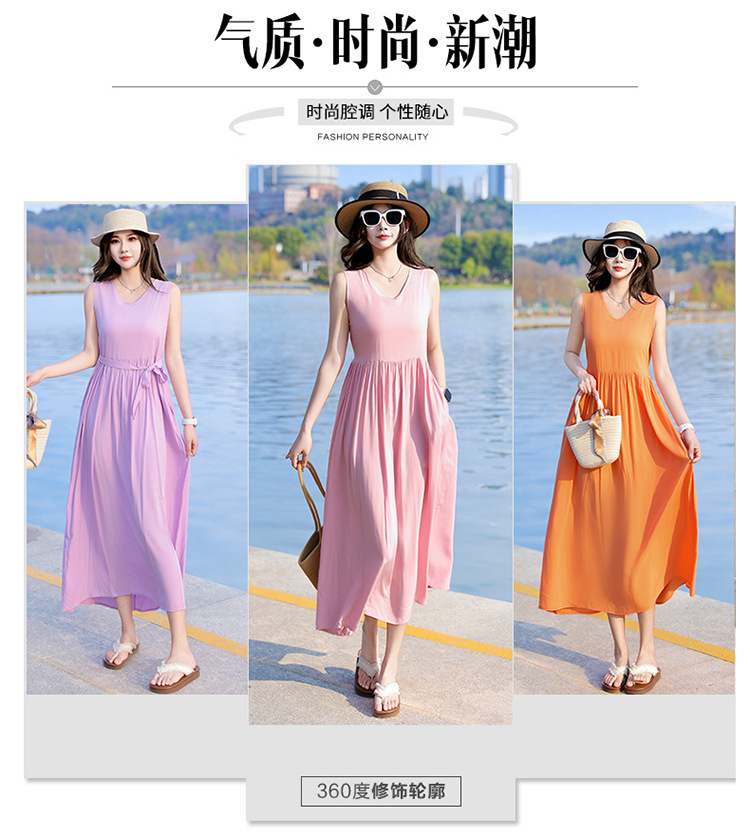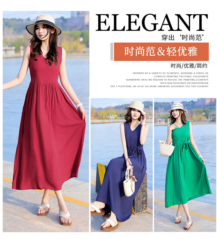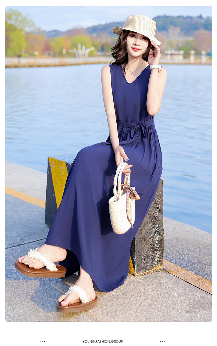 2025新款夏装收腰显瘦高支棉绸连衣裙气质妈妈度假风海边沙滩裙