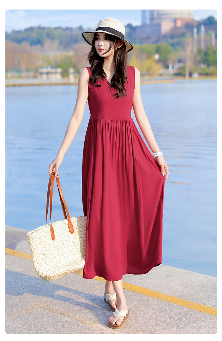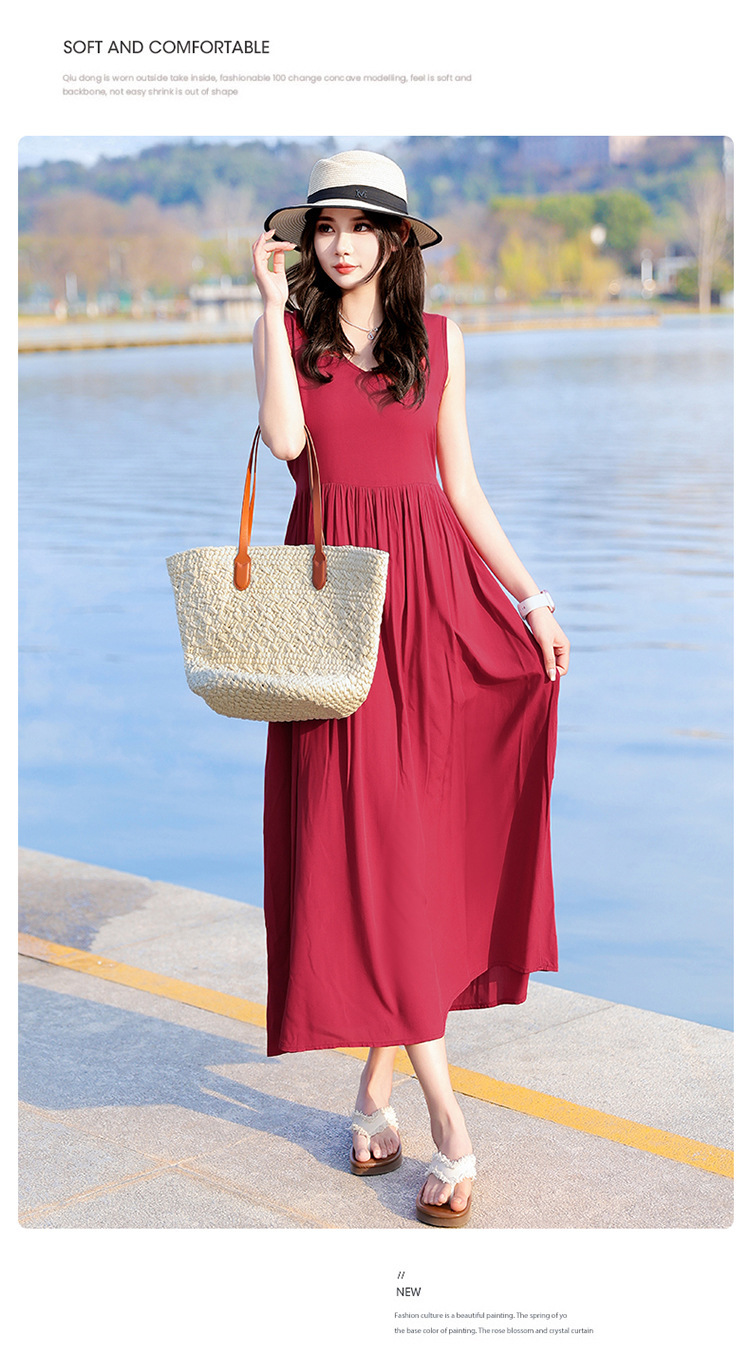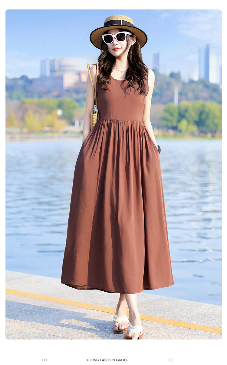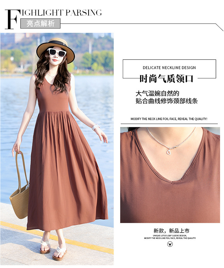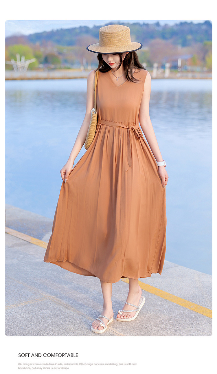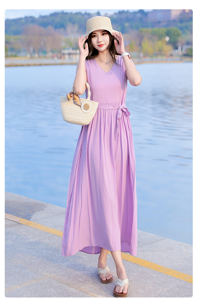 2025新款夏装收腰显瘦高支棉绸连衣裙气质妈妈度假风海边沙滩裙