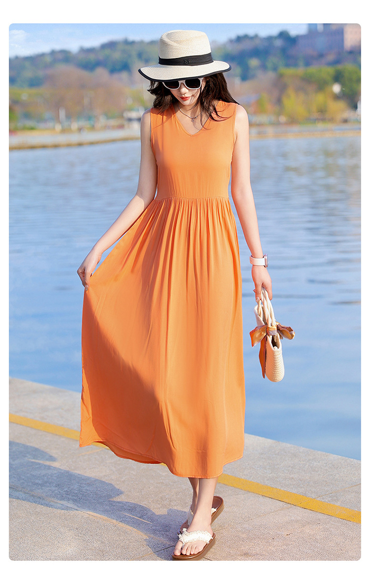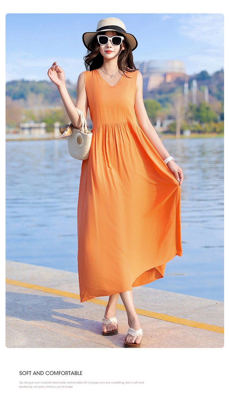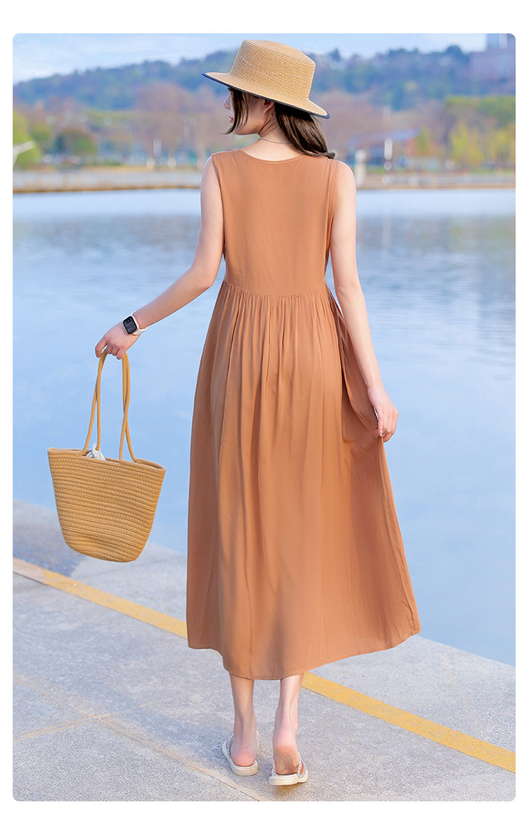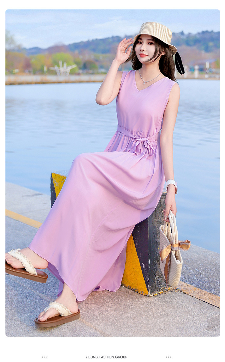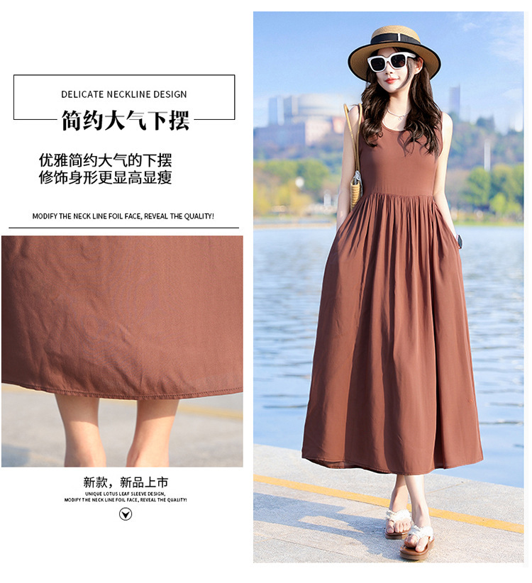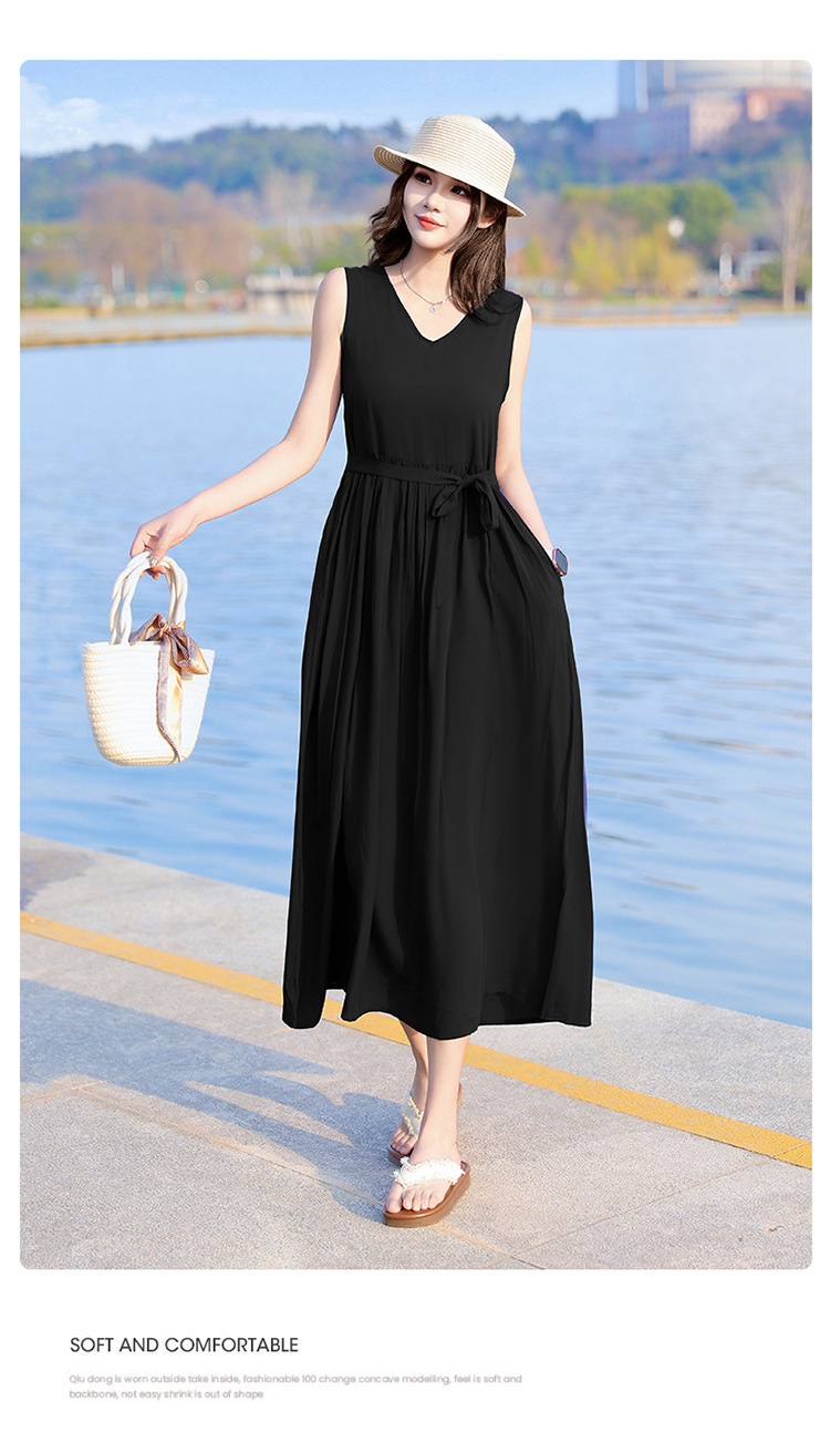 2025新款夏装收腰显瘦高支棉绸连衣裙气质妈妈度假风海边沙滩裙