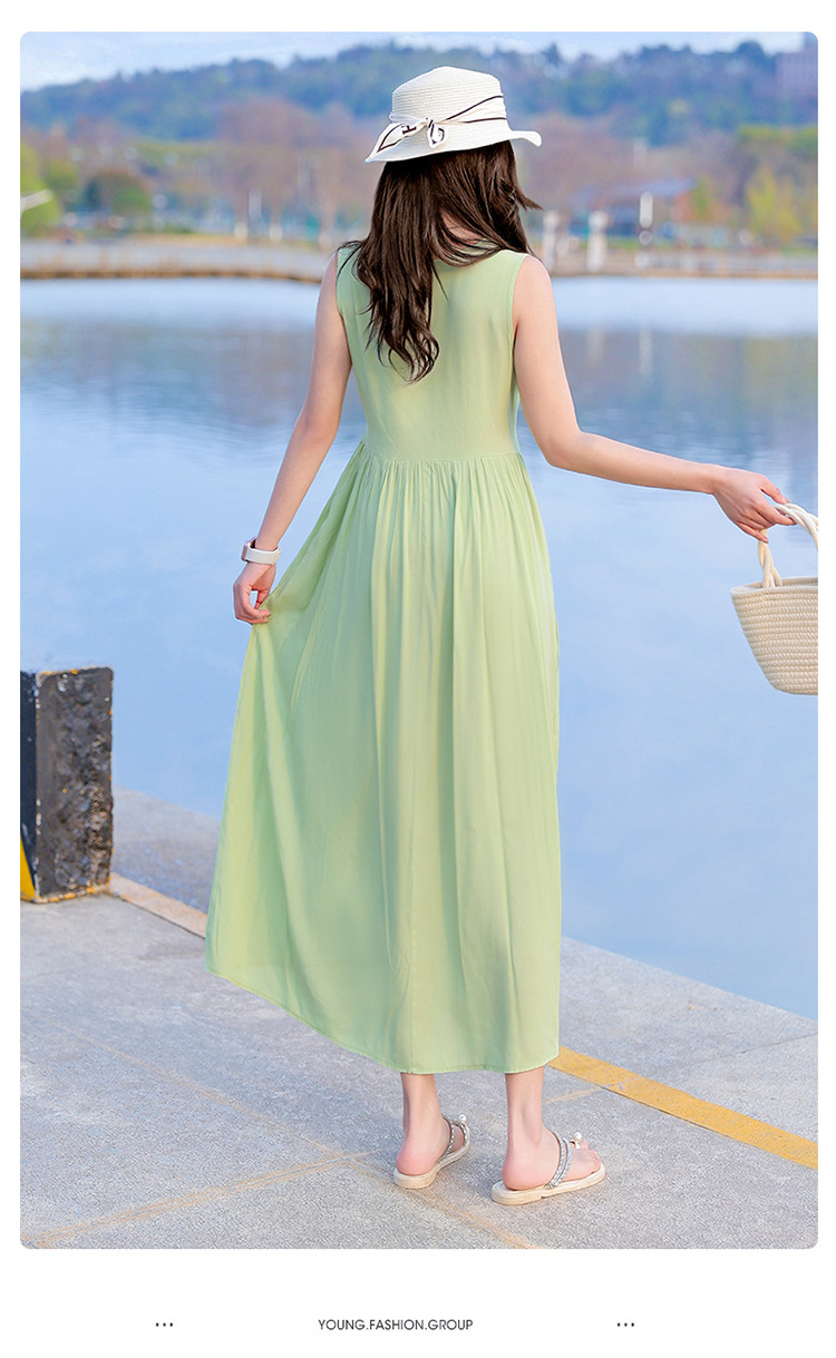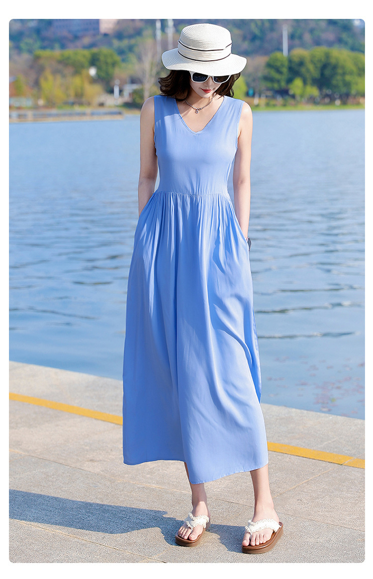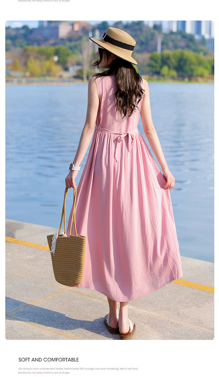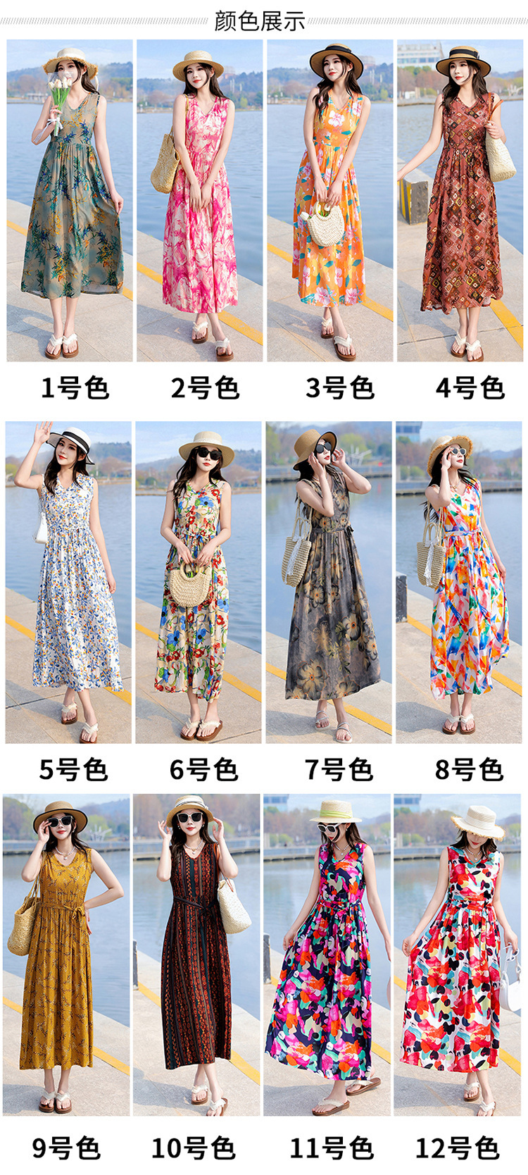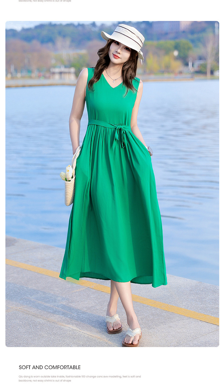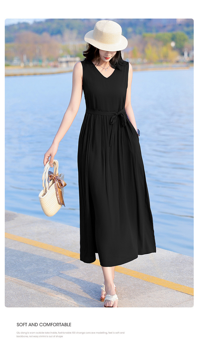 2025新款夏装收腰显瘦高支棉绸连衣裙气质妈妈度假风海边沙滩裙
