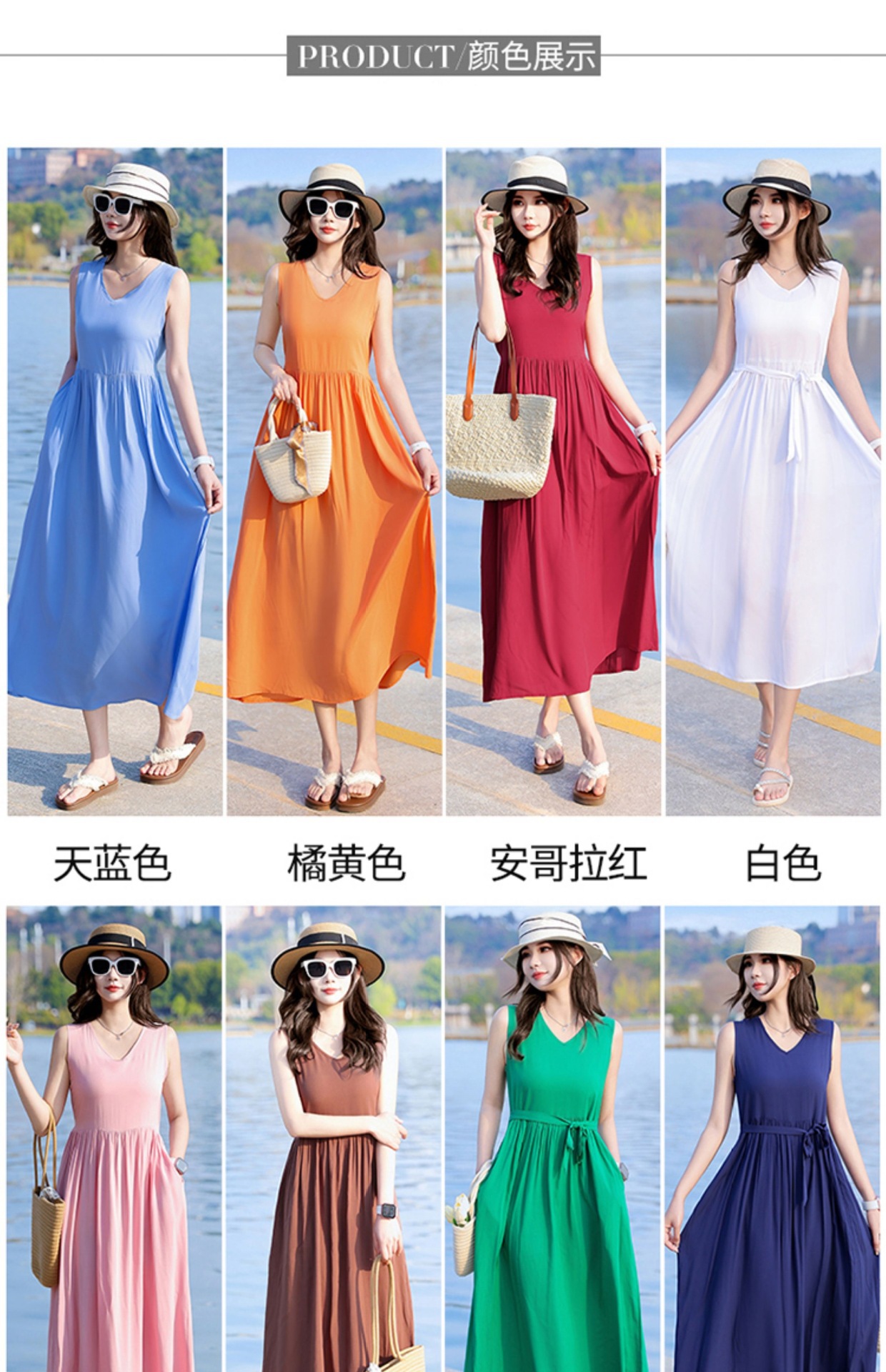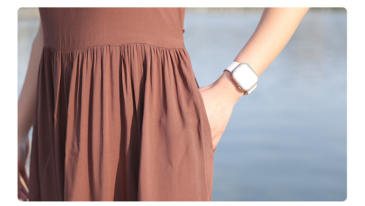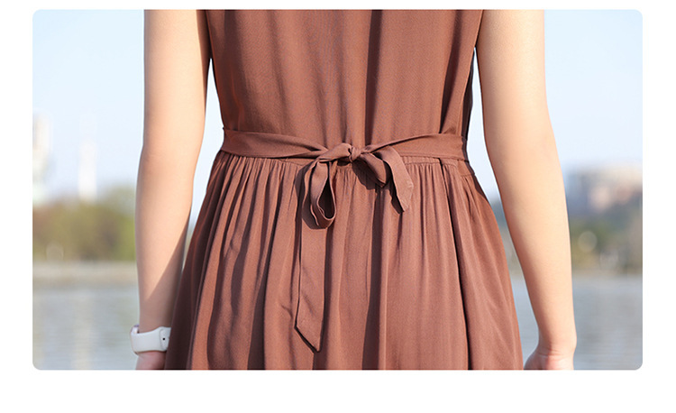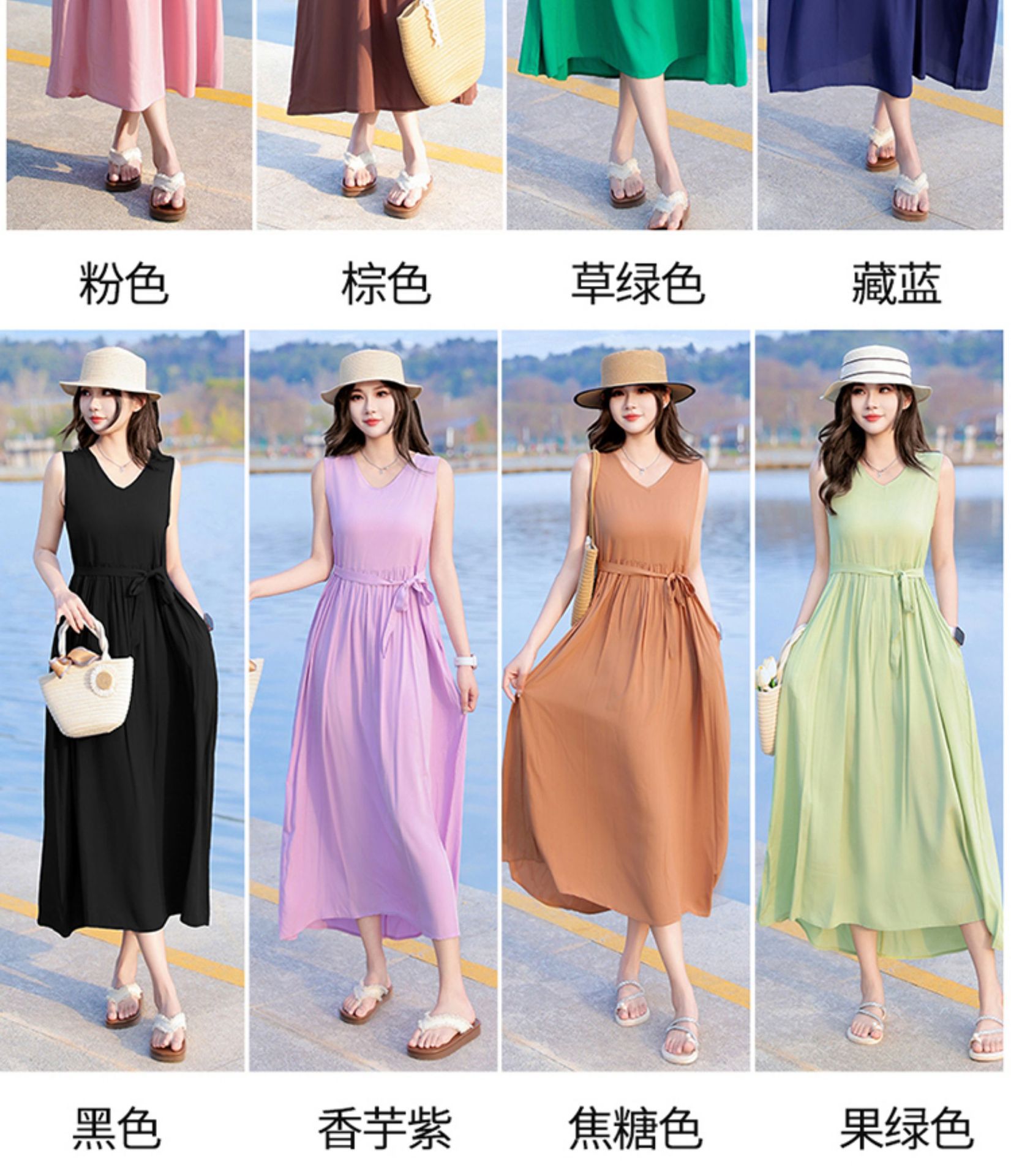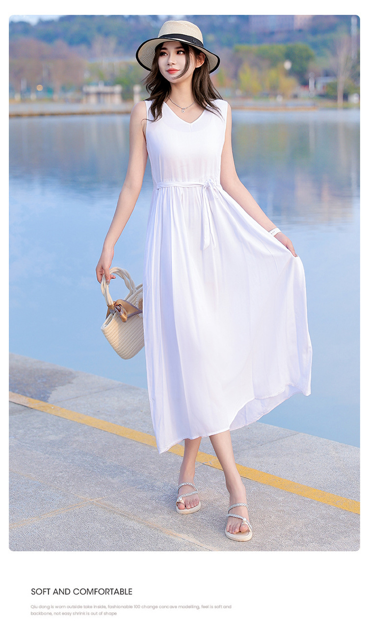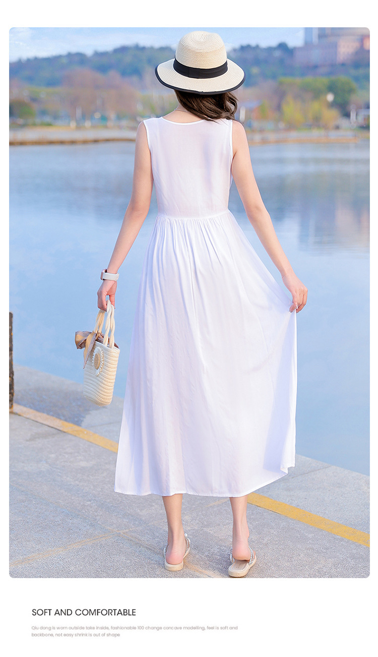 2025新款夏装收腰显瘦高支棉绸连衣裙气质妈妈度假风海边沙滩裙