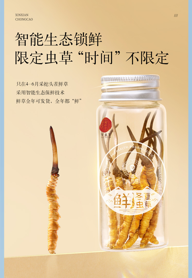 【正宗同仁堂品牌】北京同仁堂 青源堂 新鲜虫草0.81-1.0克/条 10条装 草头粗壮 优中选优 智能生态锁鲜SY