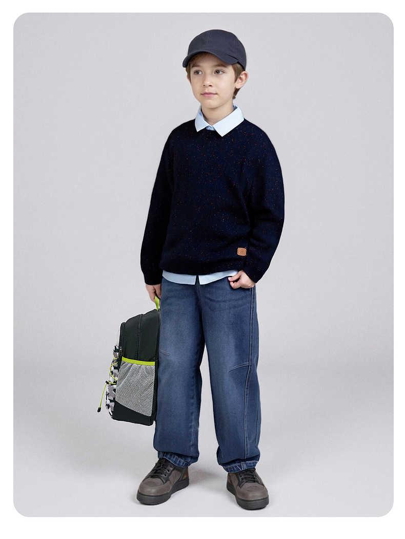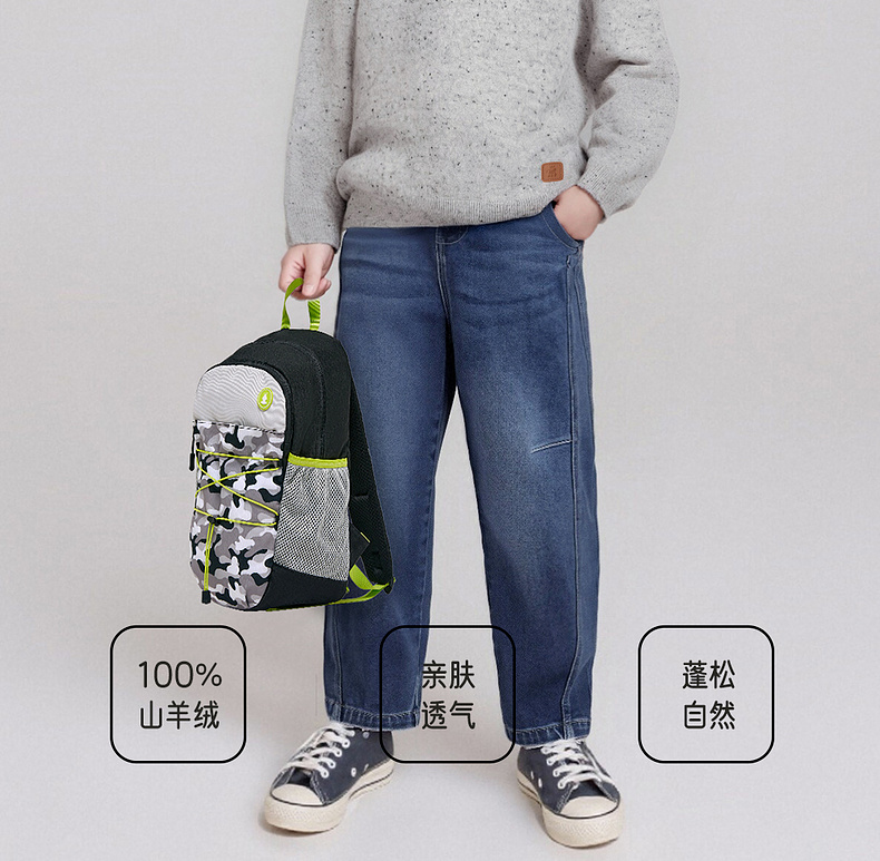 英氏【100%山羊绒】儿童羊毛衫套头衫纯色百搭秋冬保暖亲肤男童女童新款