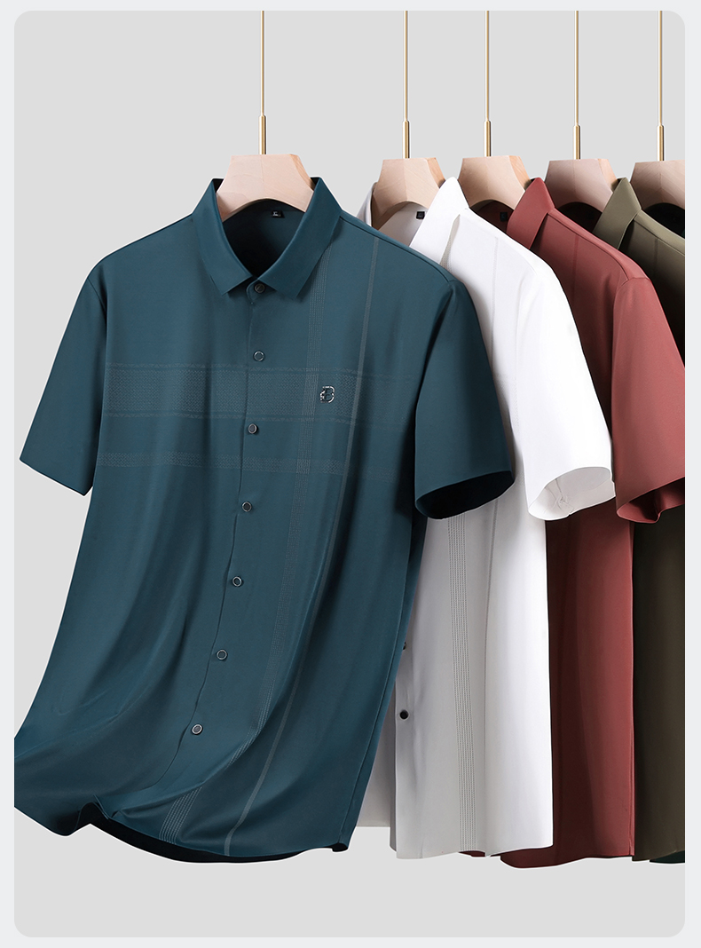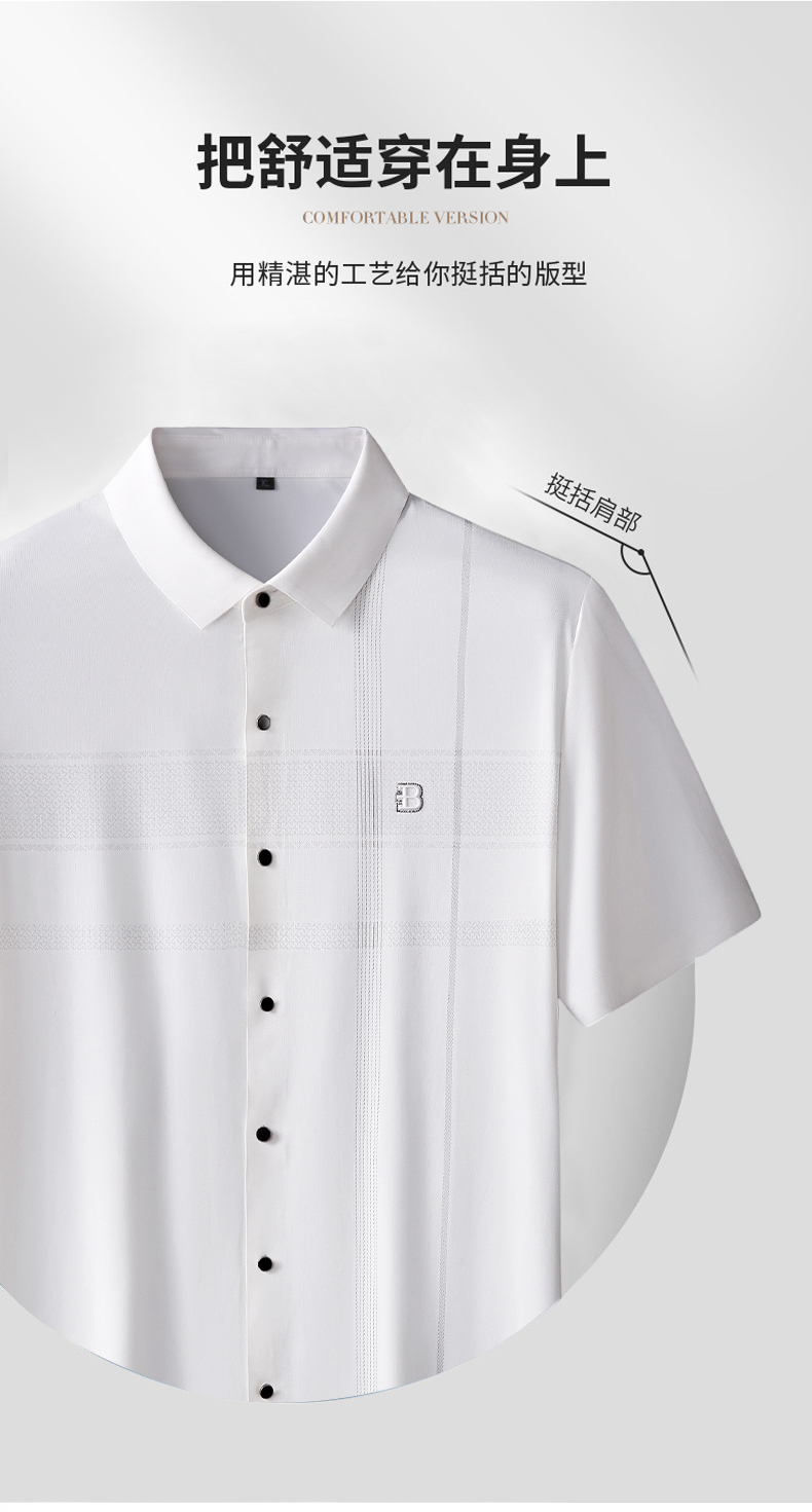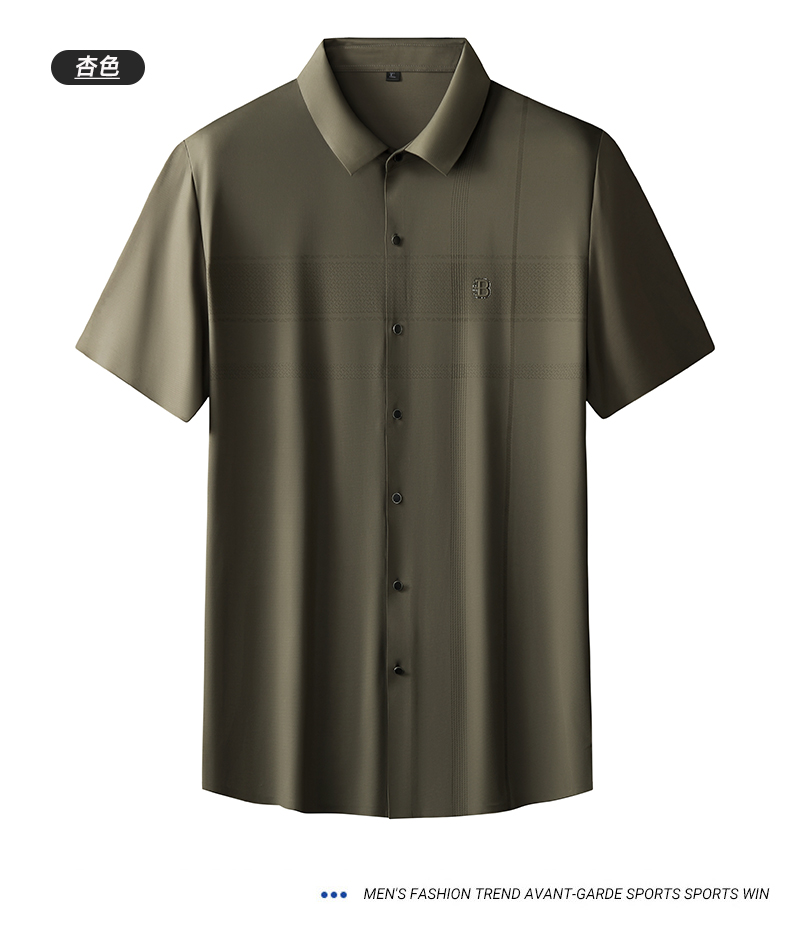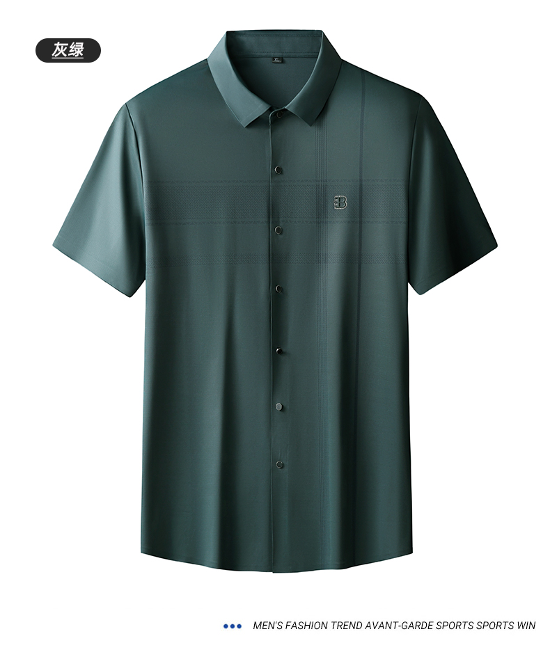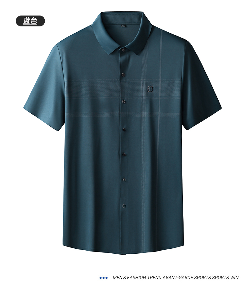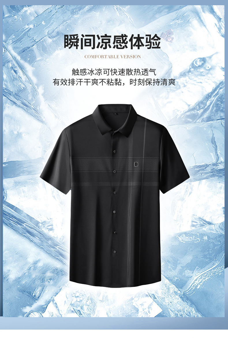 【冰丝高弹】【新款DK】大依优型大码男装短袖衬衫翻领加肥加大透气吸汗夏季上衣半袖t恤夏装