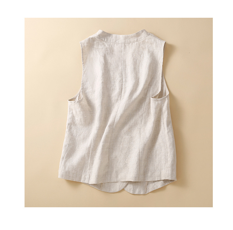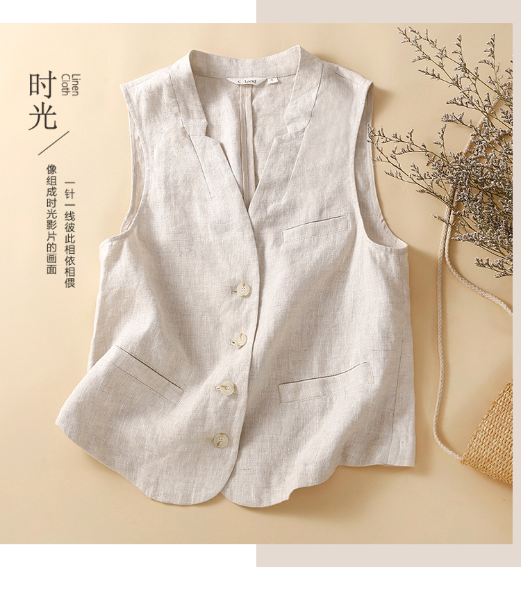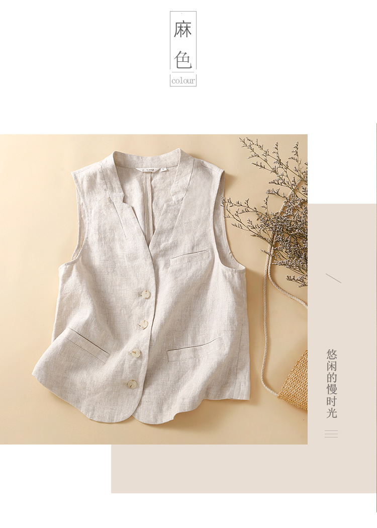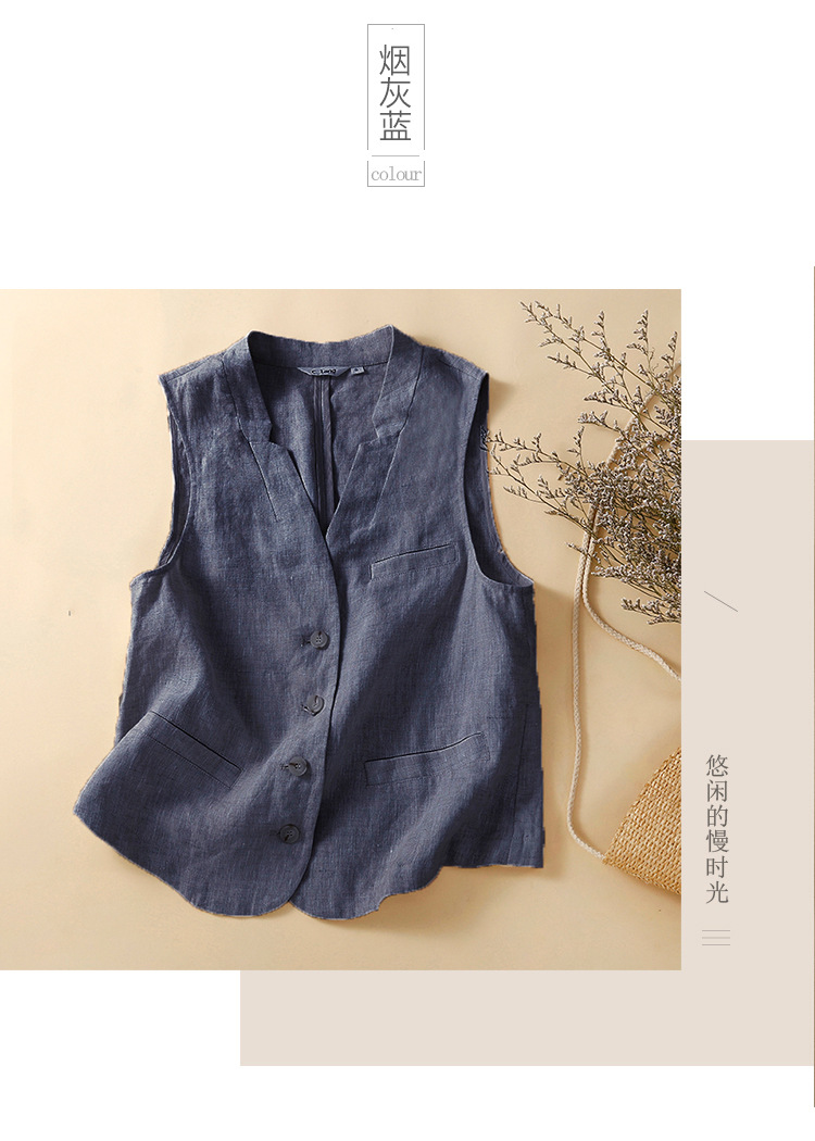 雀说新款文艺宽松纯色棉麻背心马甲女外套马夹上衣AL6297
