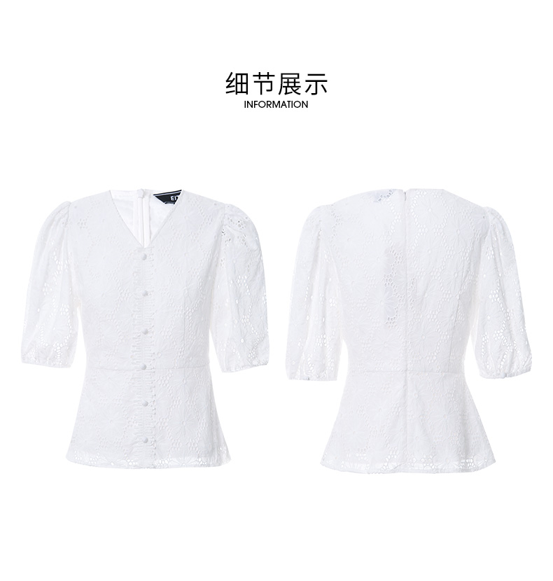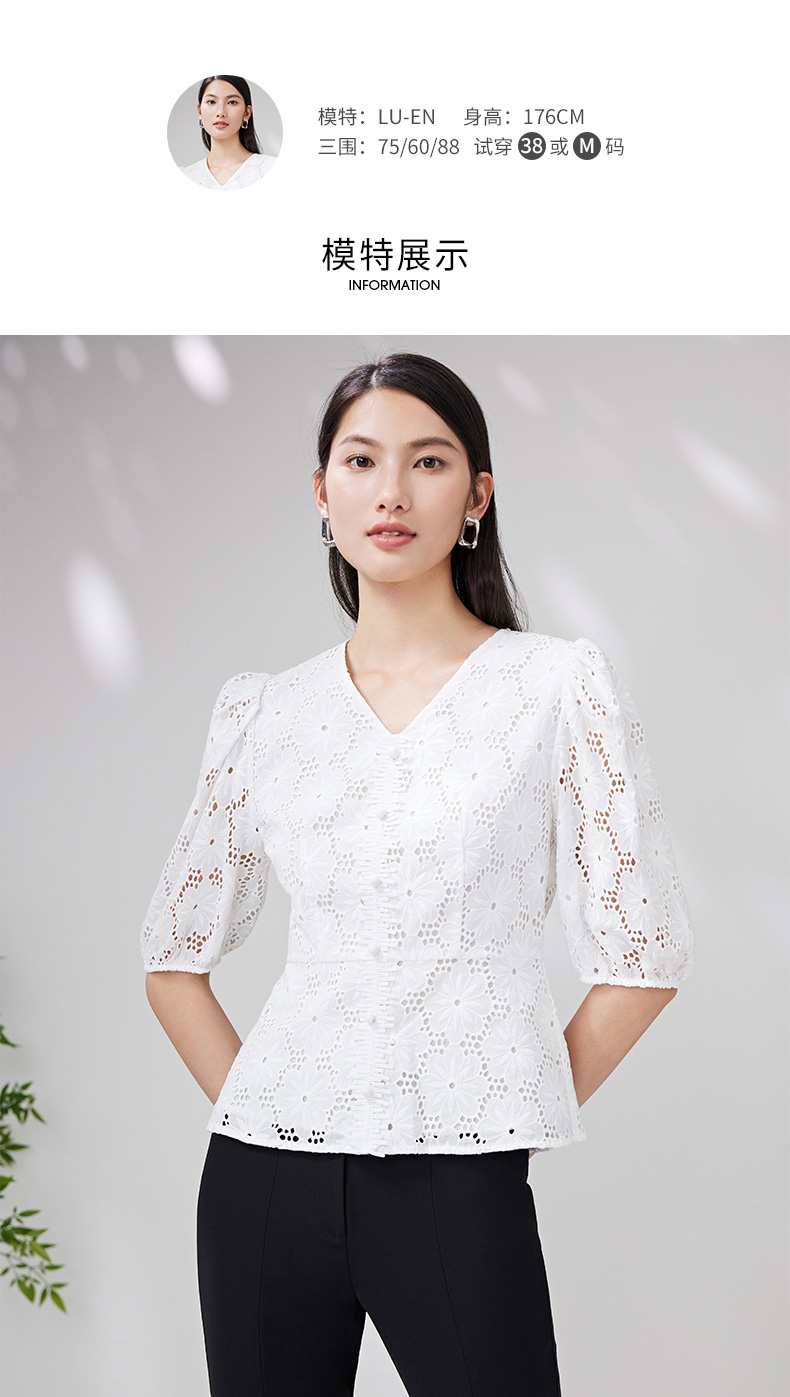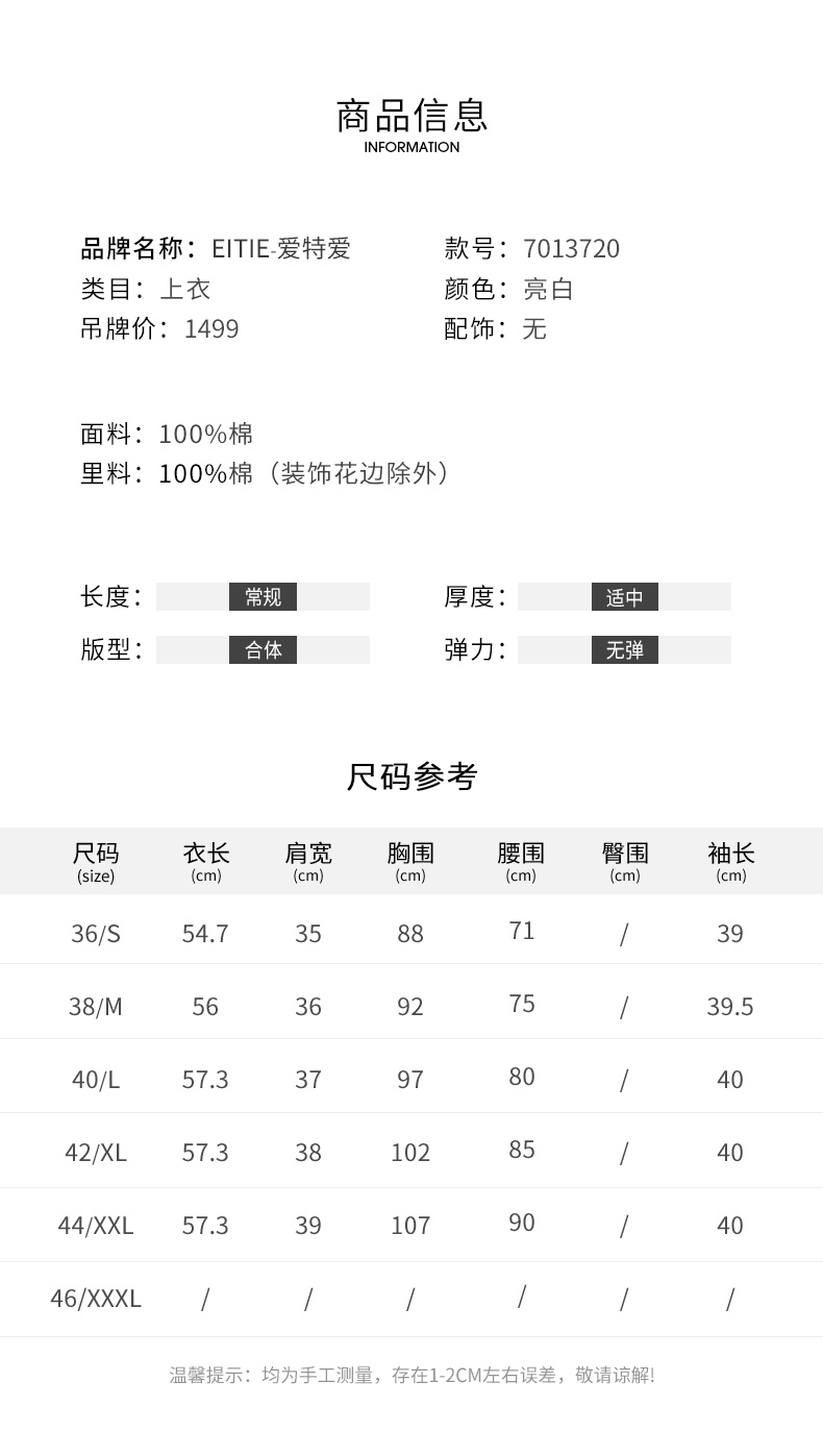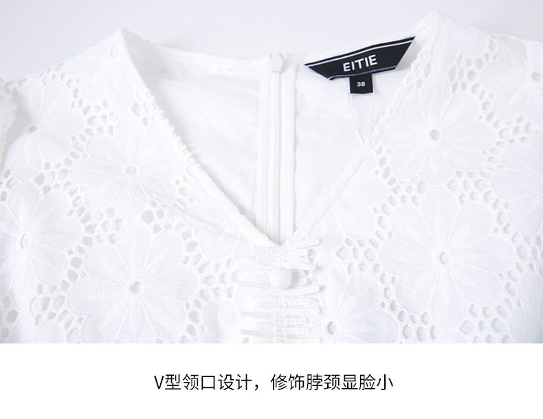 EITIE爱特爱夏款新品100%棉优雅V领显瘦小上衣7013720