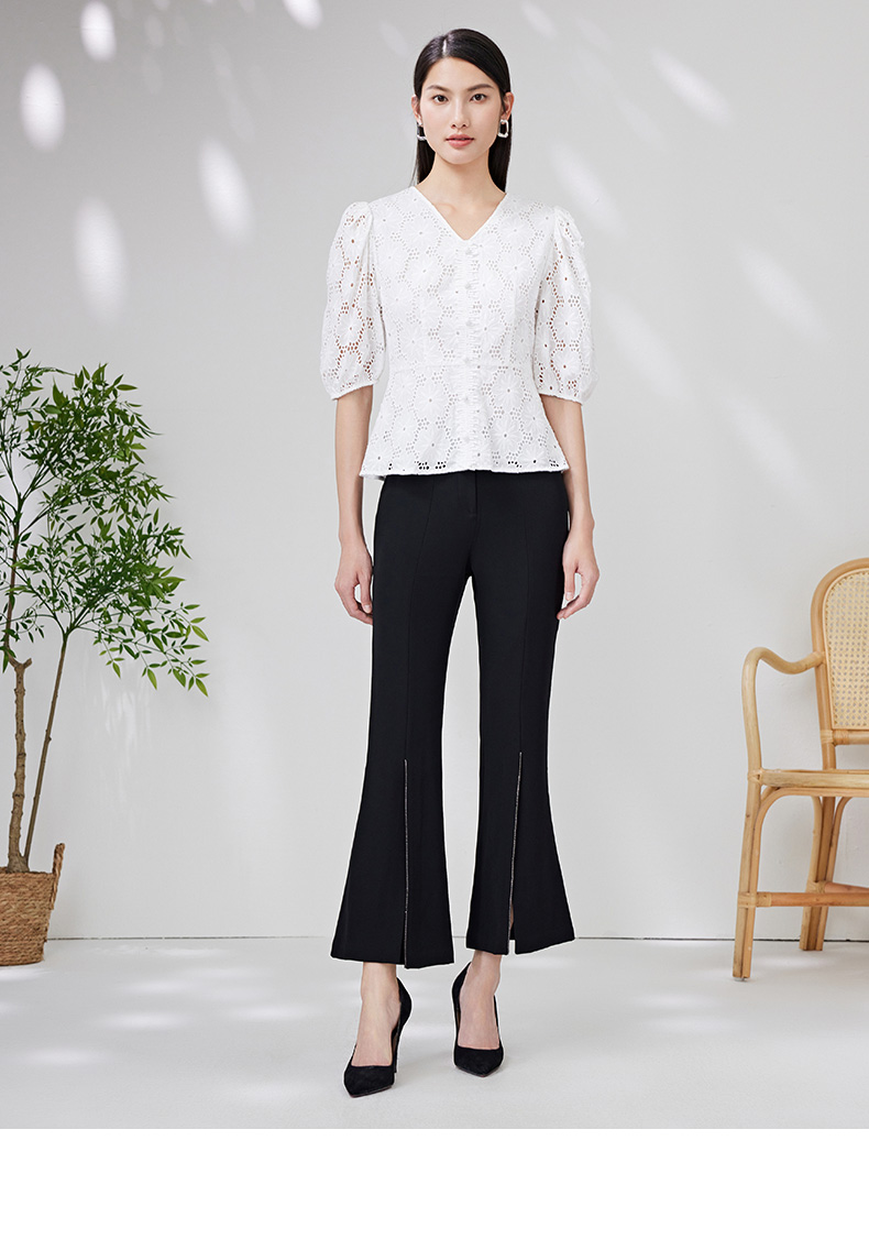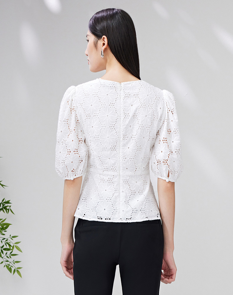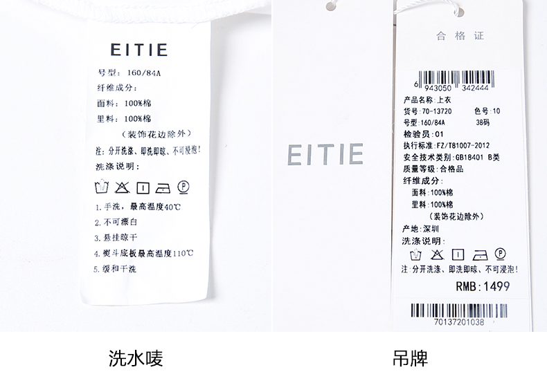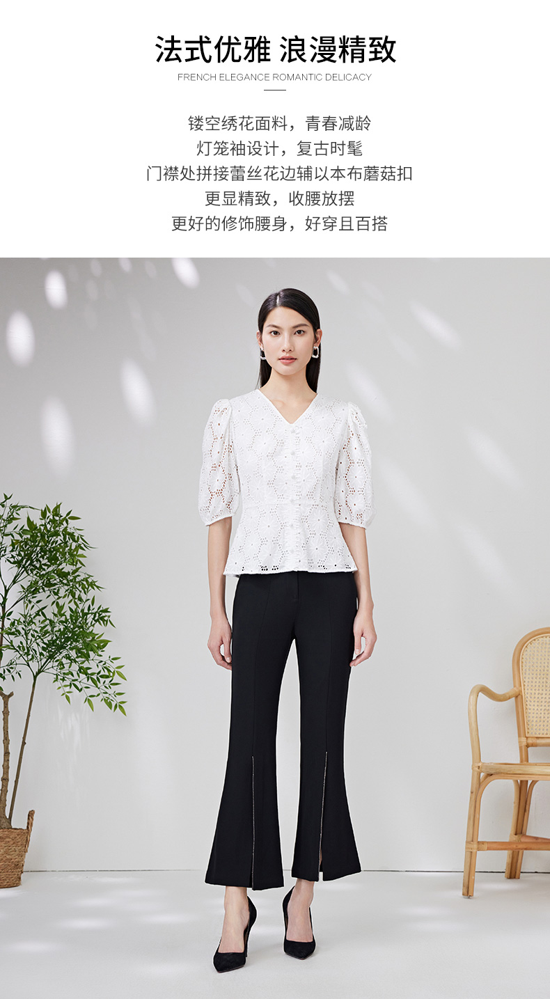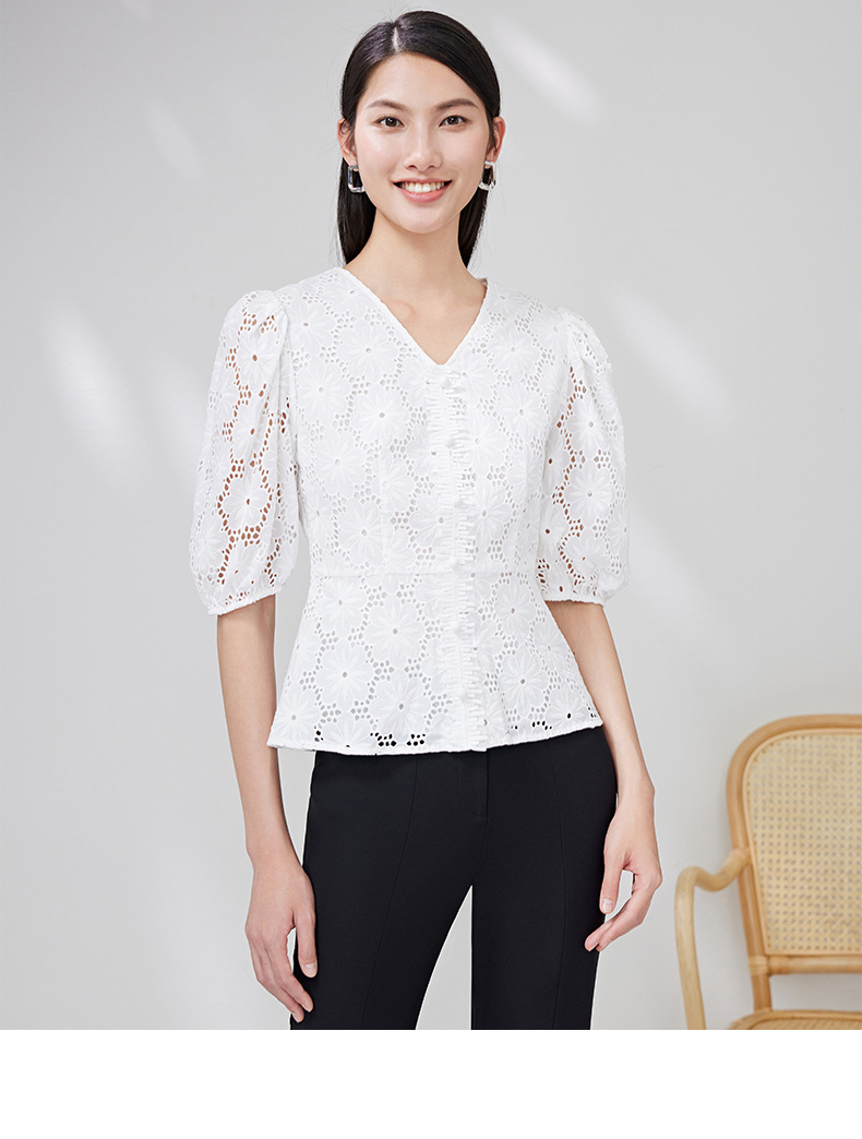 EITIE爱特爱夏款新品100%棉优雅V领显瘦小上衣7013720