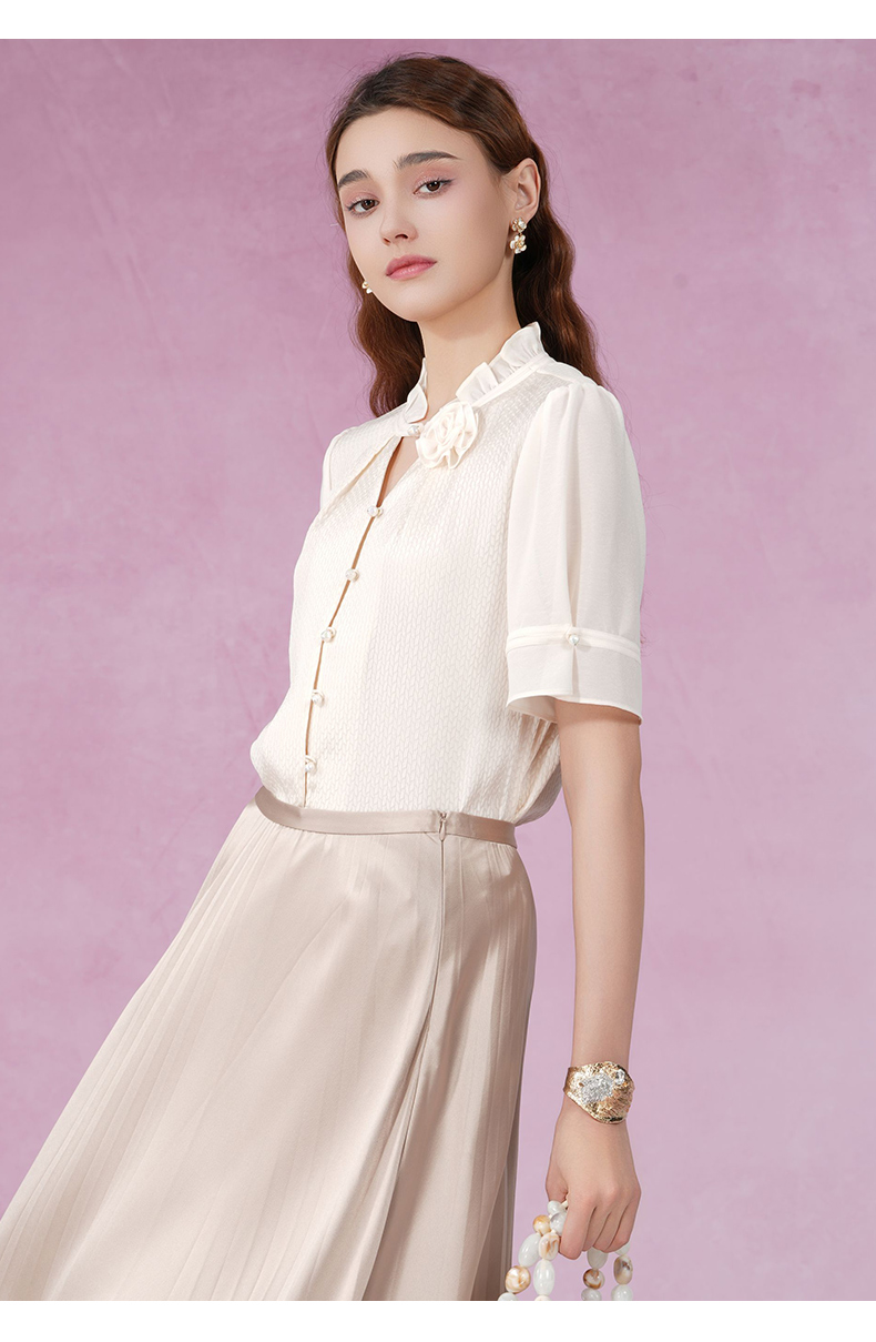 乔万尼短袖衬衫真丝桑蚕丝宫廷风新品EM2C822