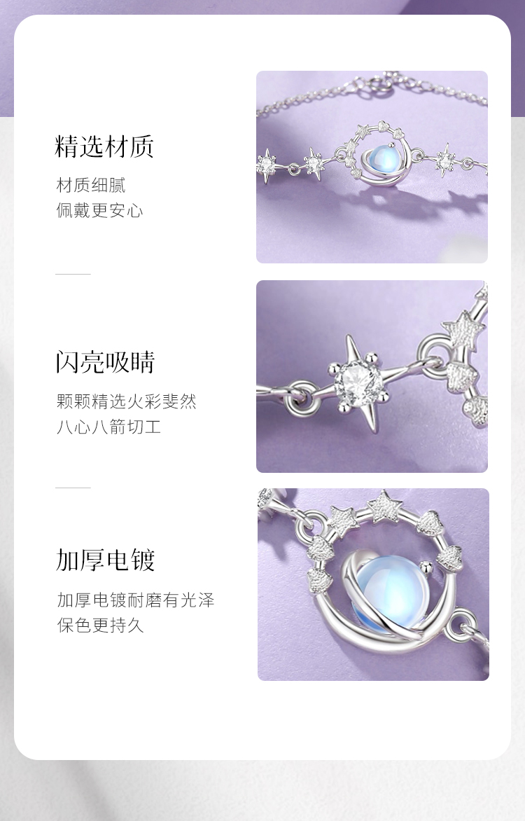 Winy925银银河月辉手链送女友闺蜜节日生日礼物