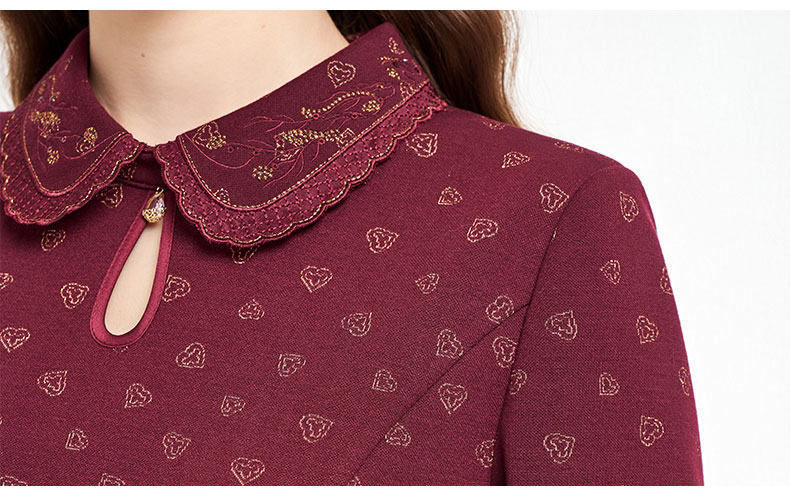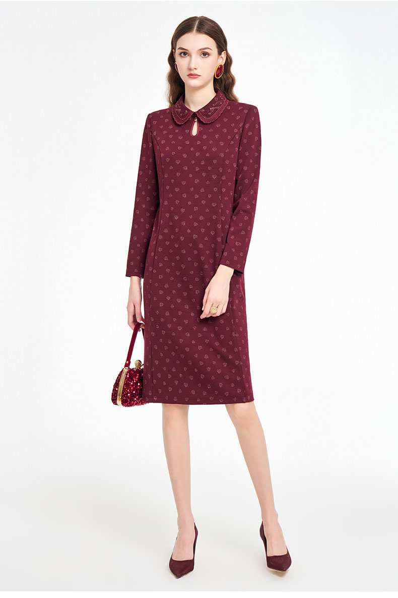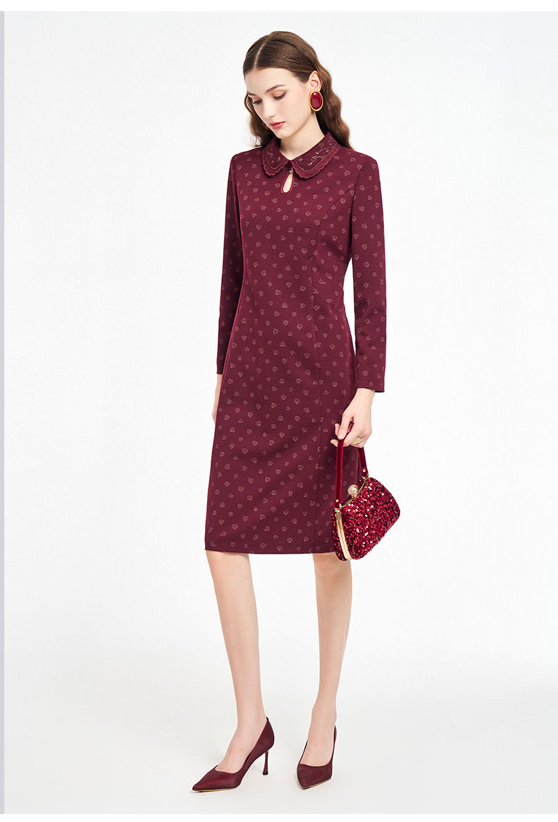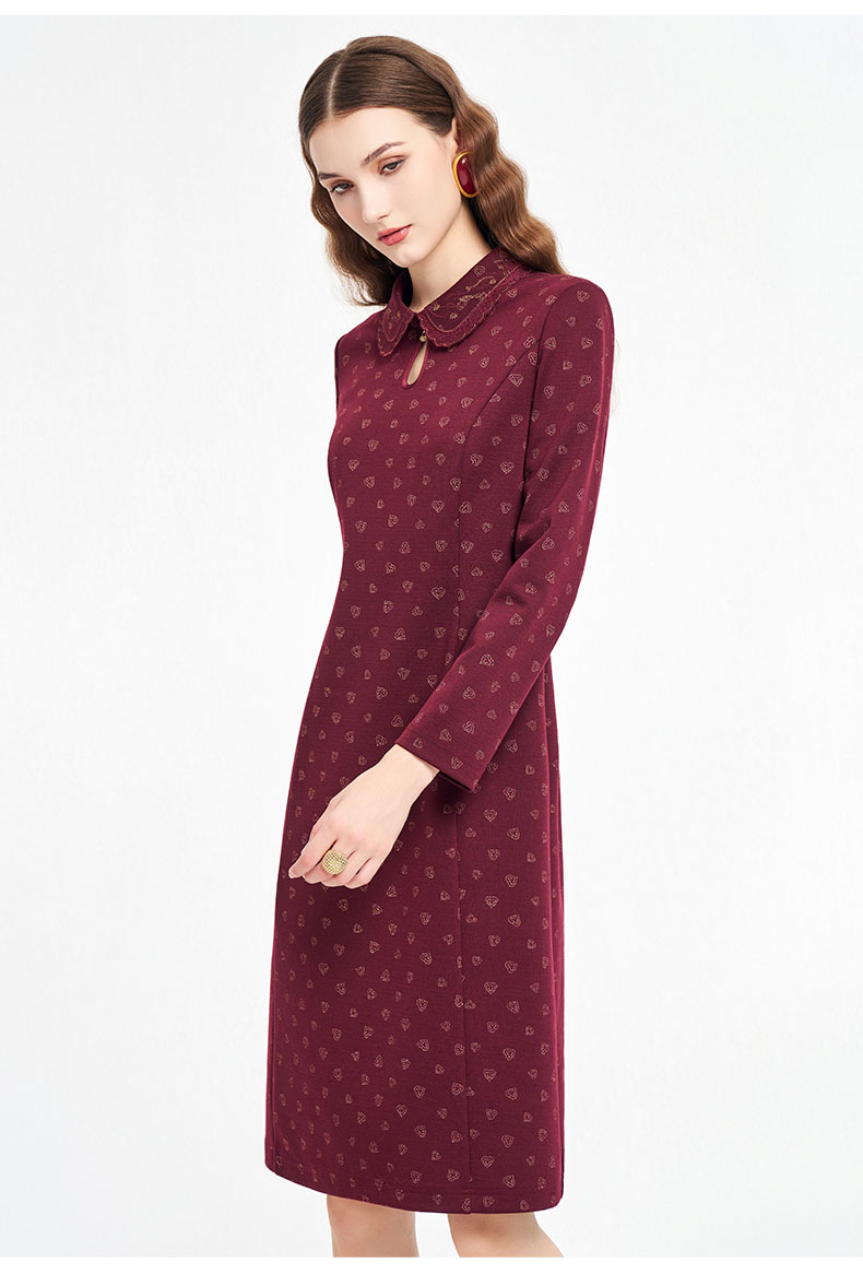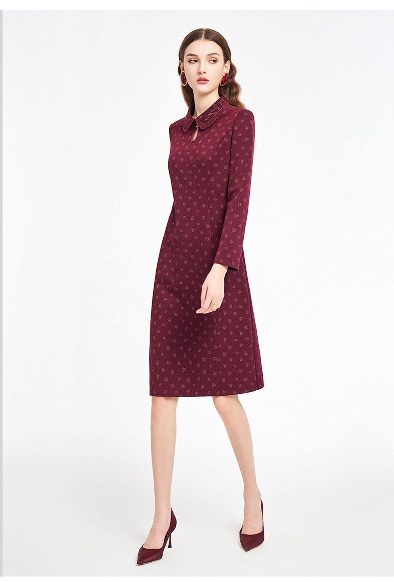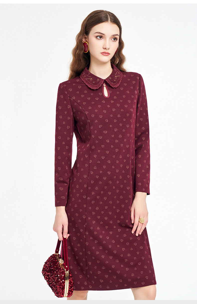乔万尼2025秋新品复古精致名媛风收腰长袖连衣裙ED3E297