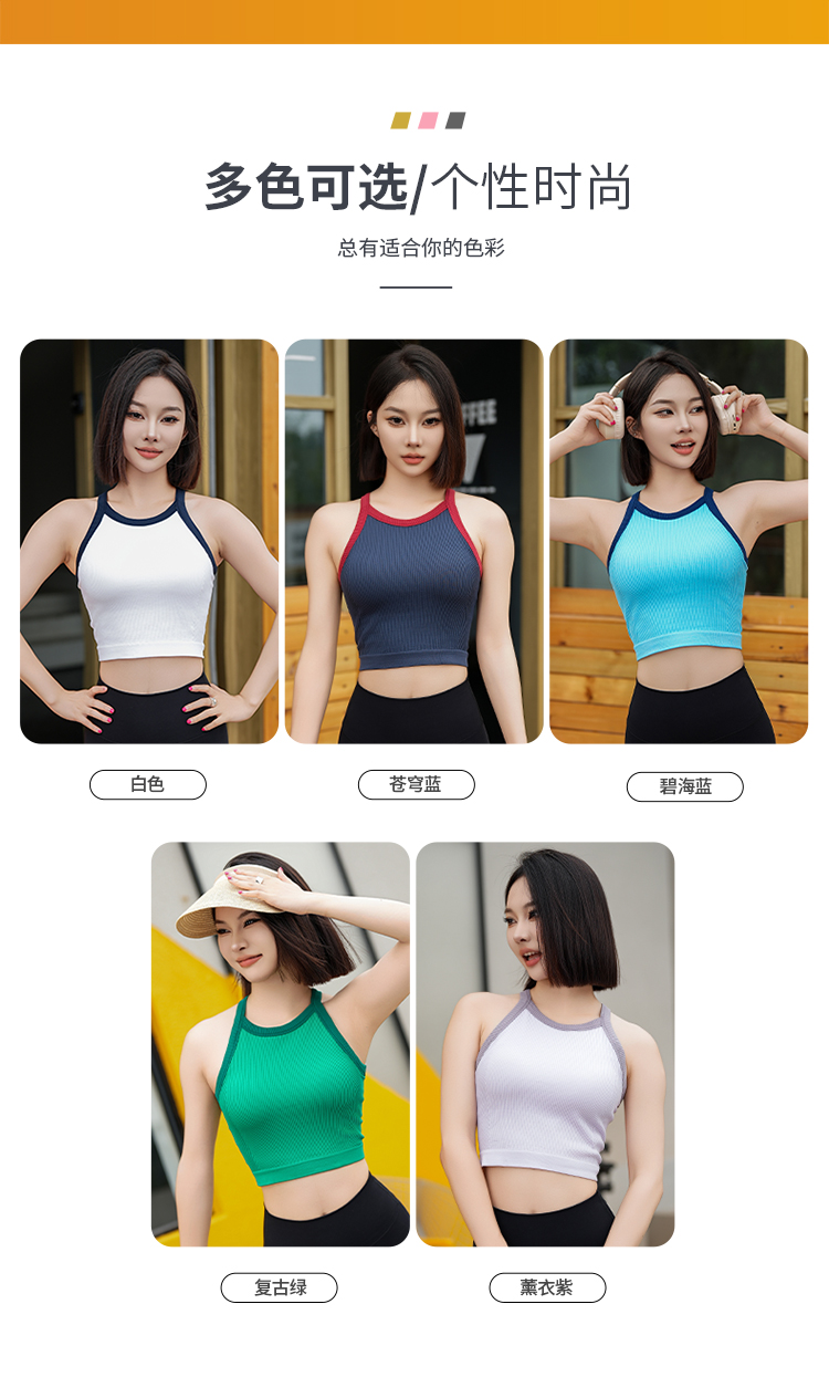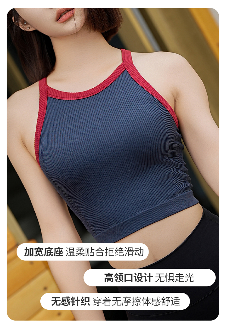 跃牌【安琪拉系列】撞色款高弹3D无缝一体织瑜伽女运动内衣背心WX2436(一体杯)