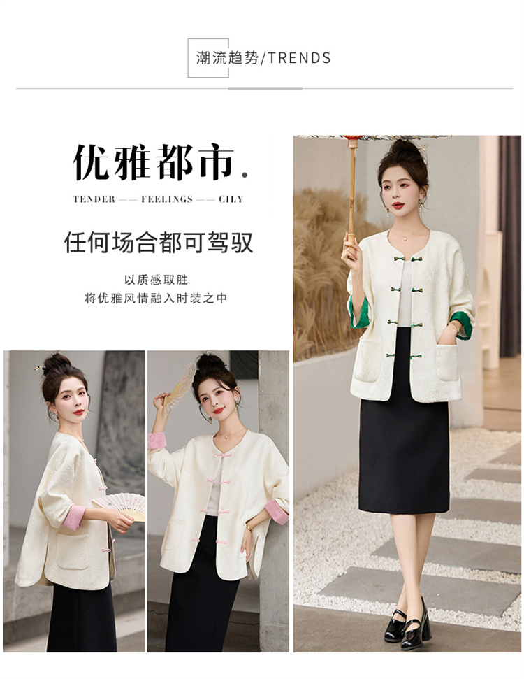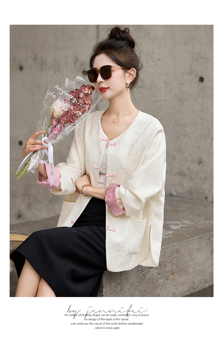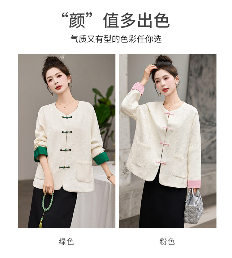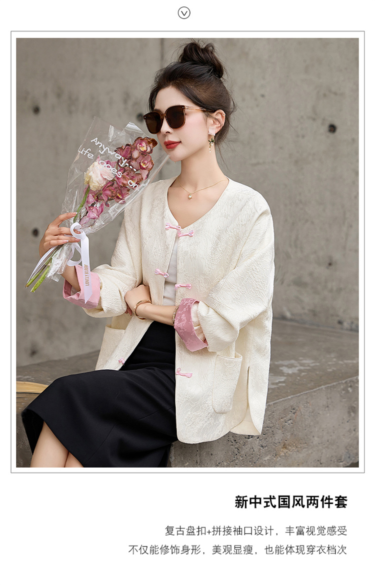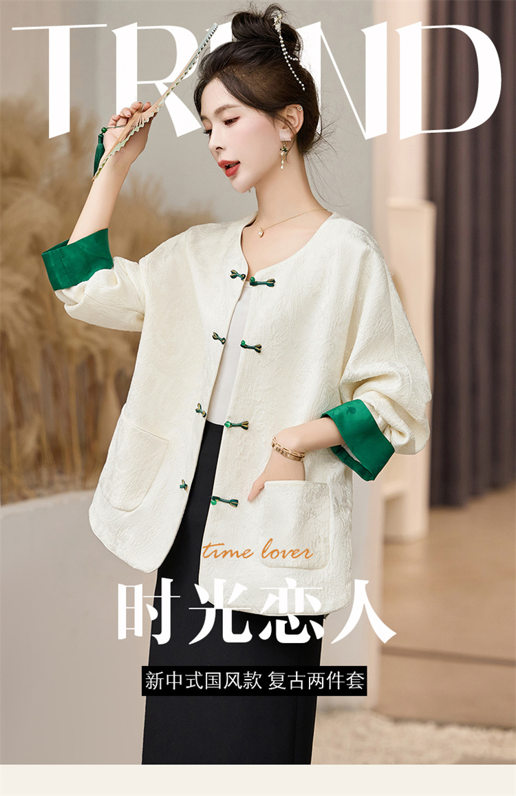 春季新中式,盘扣撞色提花宽松时尚款新款套装HR-DJ5801