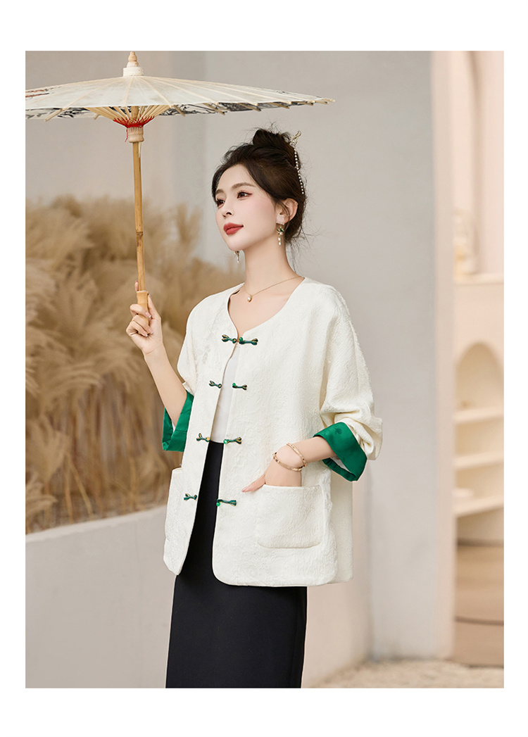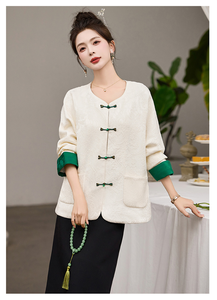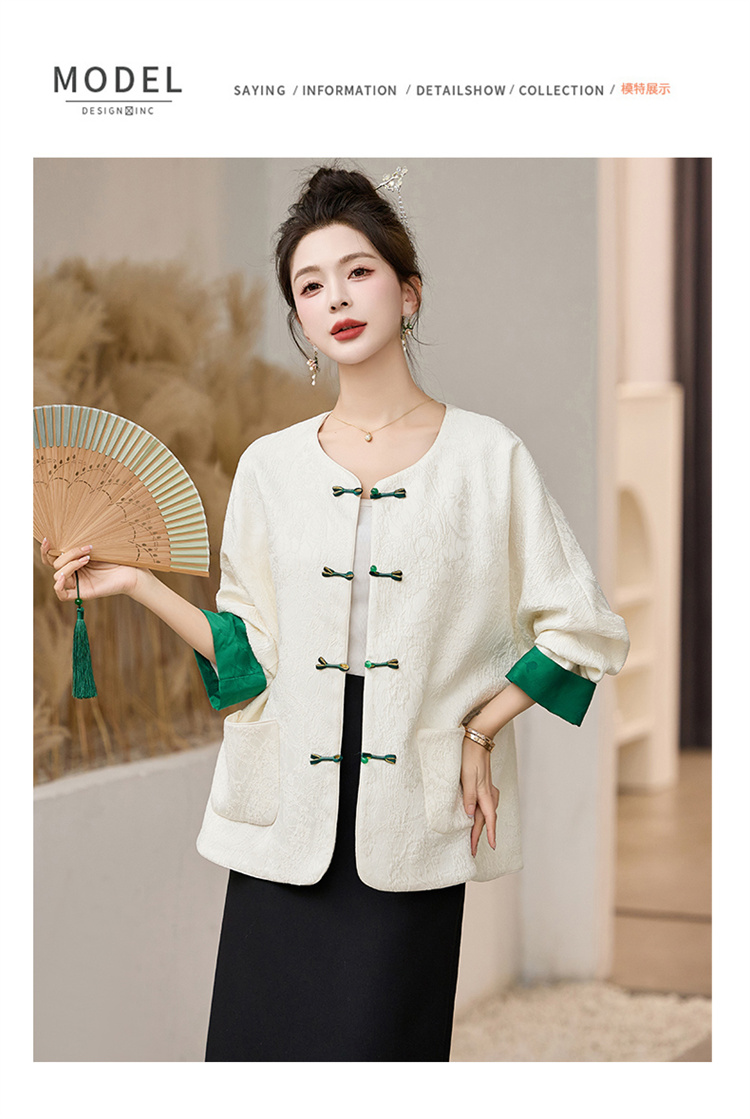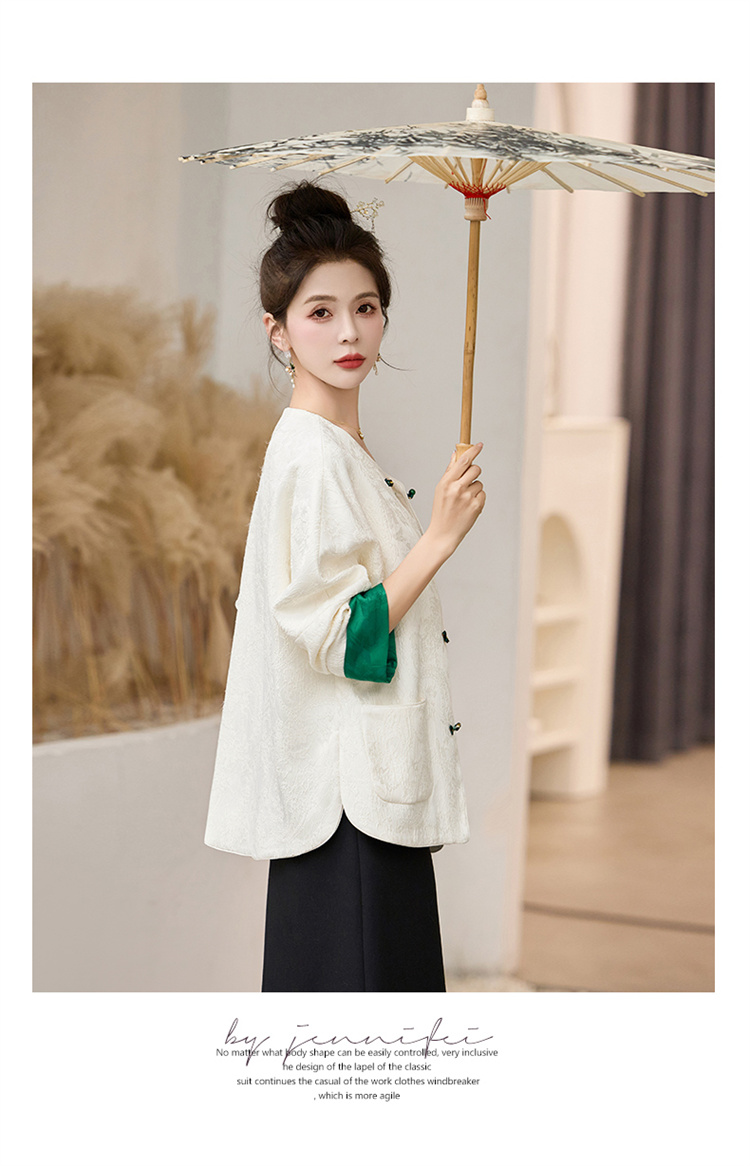 春季新中式,盘扣撞色提花宽松时尚款新款套装HR-DJ5801