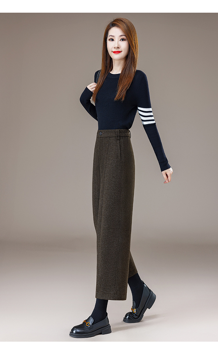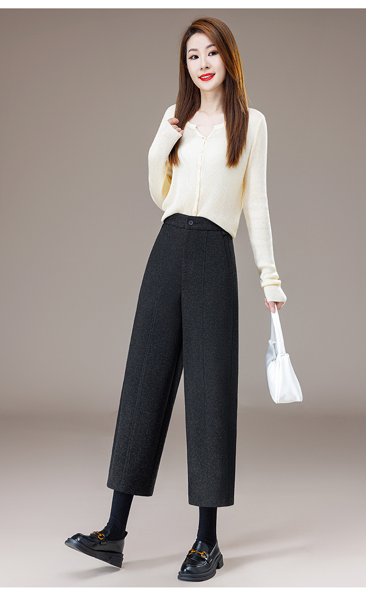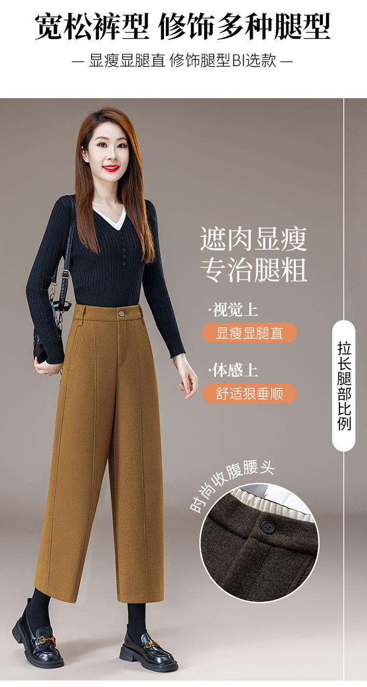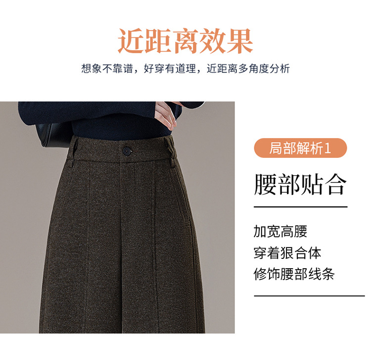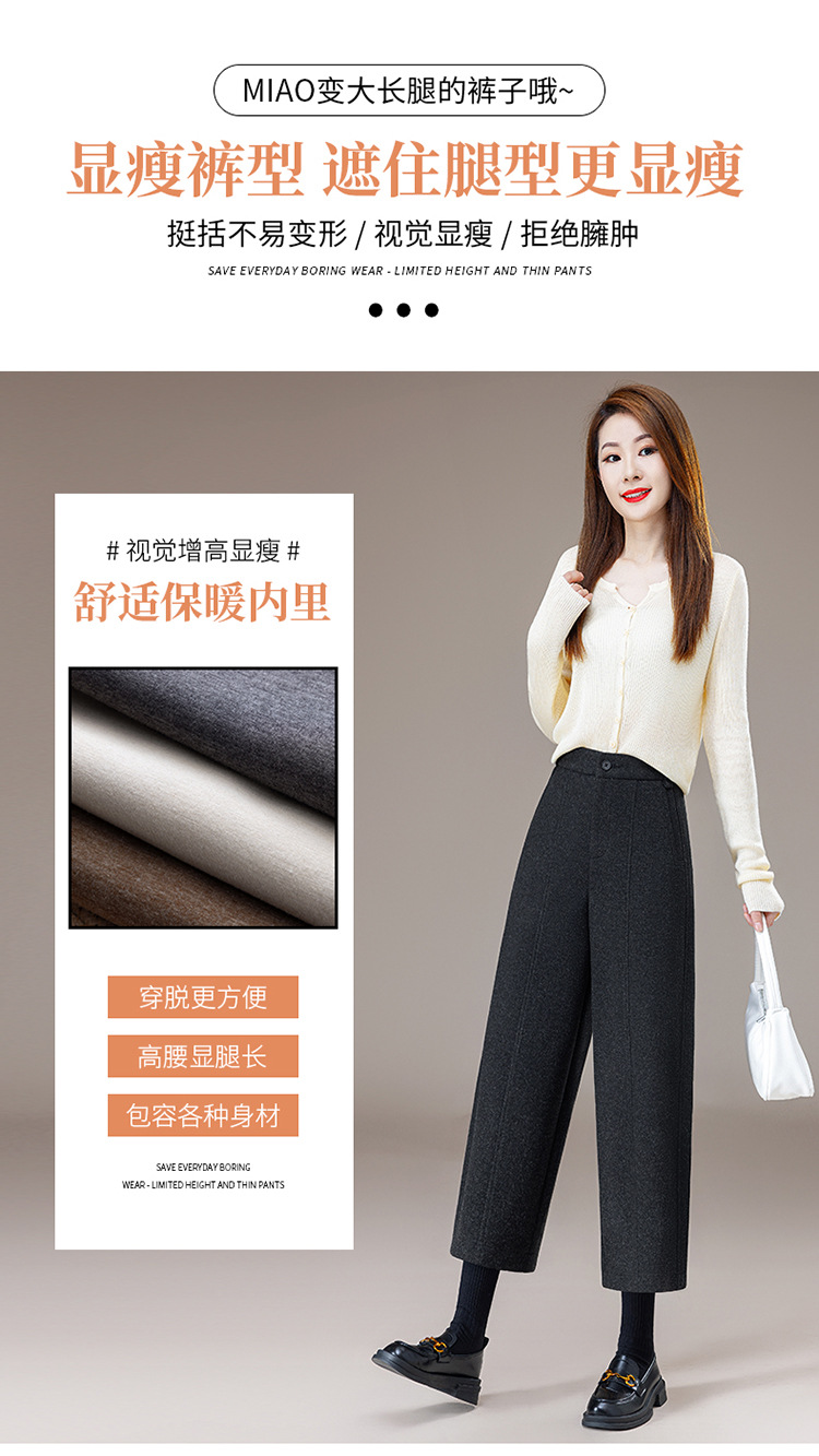 YM 5113-72气质减龄毛呢弯刀阔腿裤显瘦九分裤 商品图4