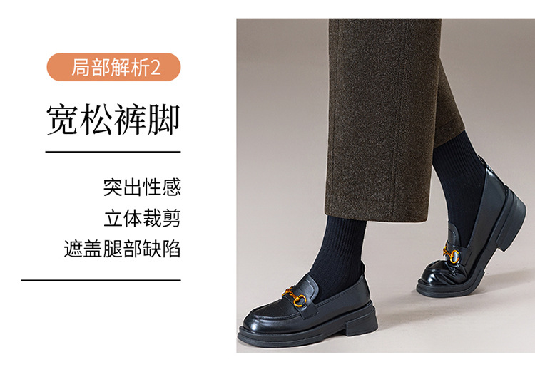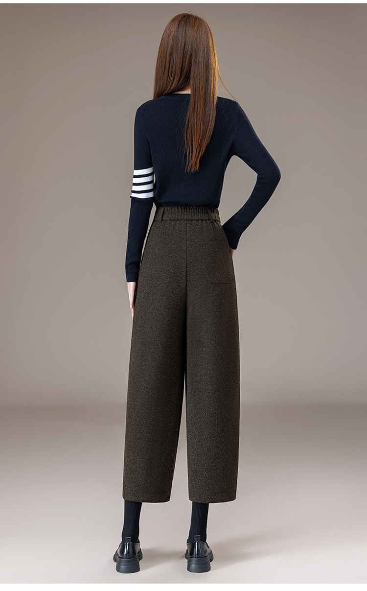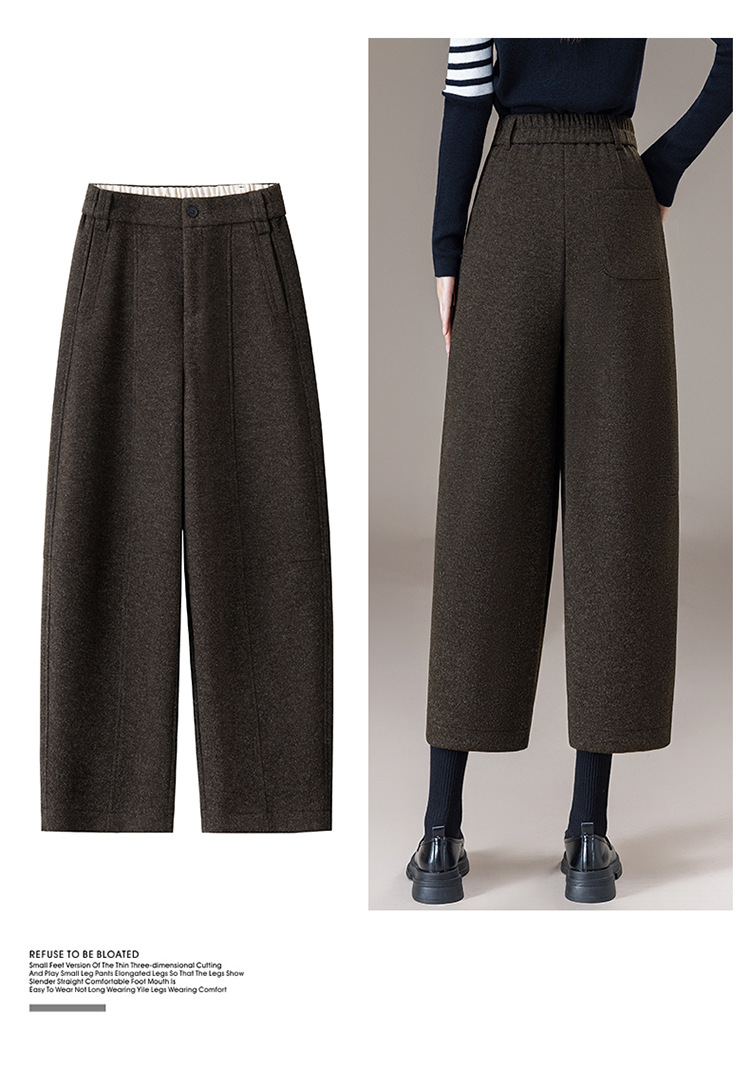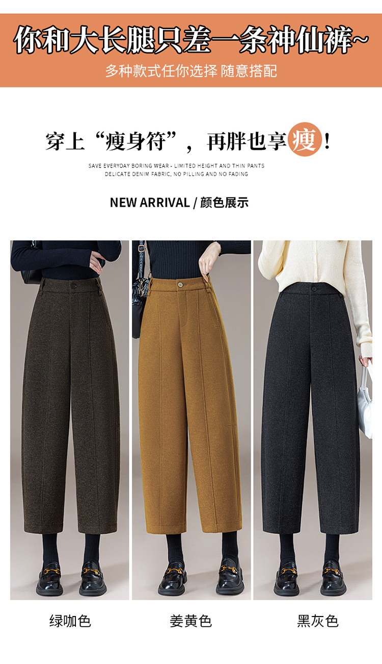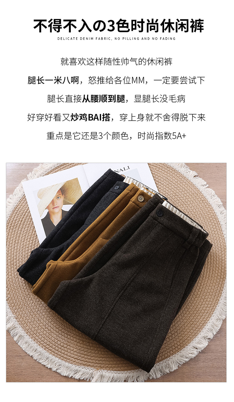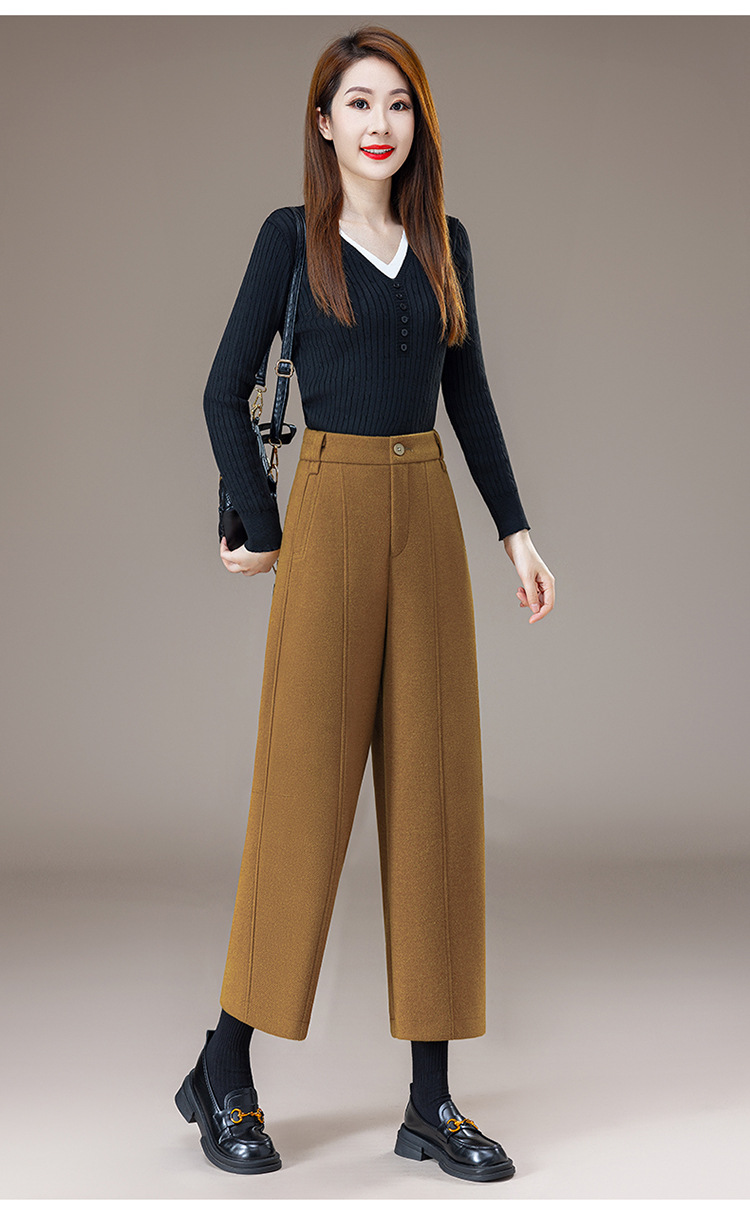 YM 5113-72气质减龄毛呢弯刀阔腿裤显瘦九分裤 商品图4