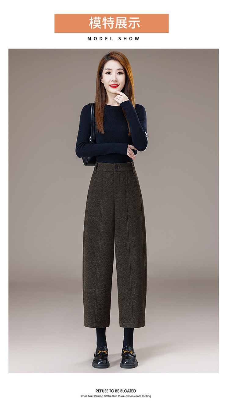 YM 5113-72气质减龄毛呢弯刀阔腿裤显瘦九分裤 商品图2
