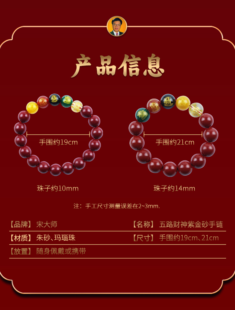 宋韶光大师新款三合六合朱砂手链 五路财神男女款朱砂手链吉品饰物