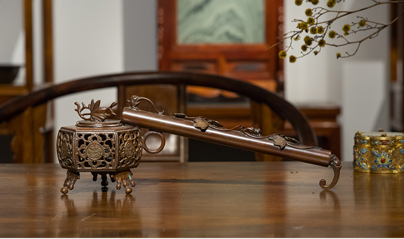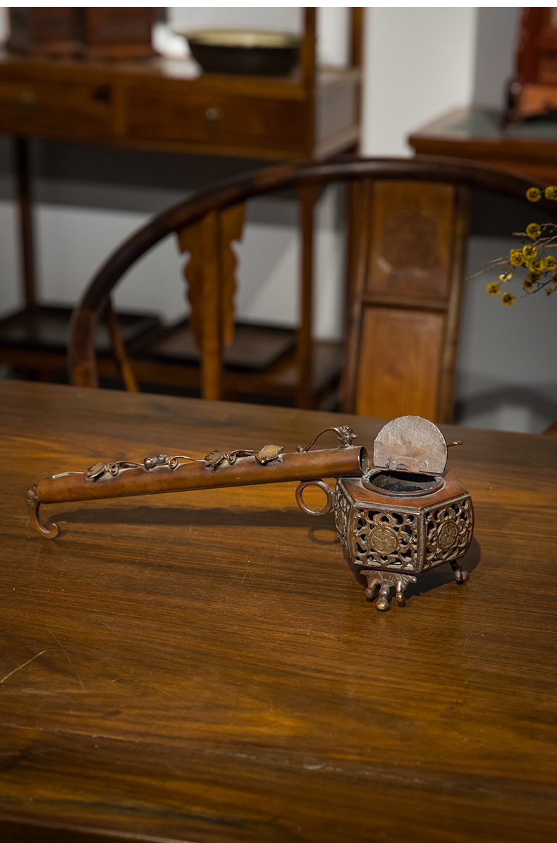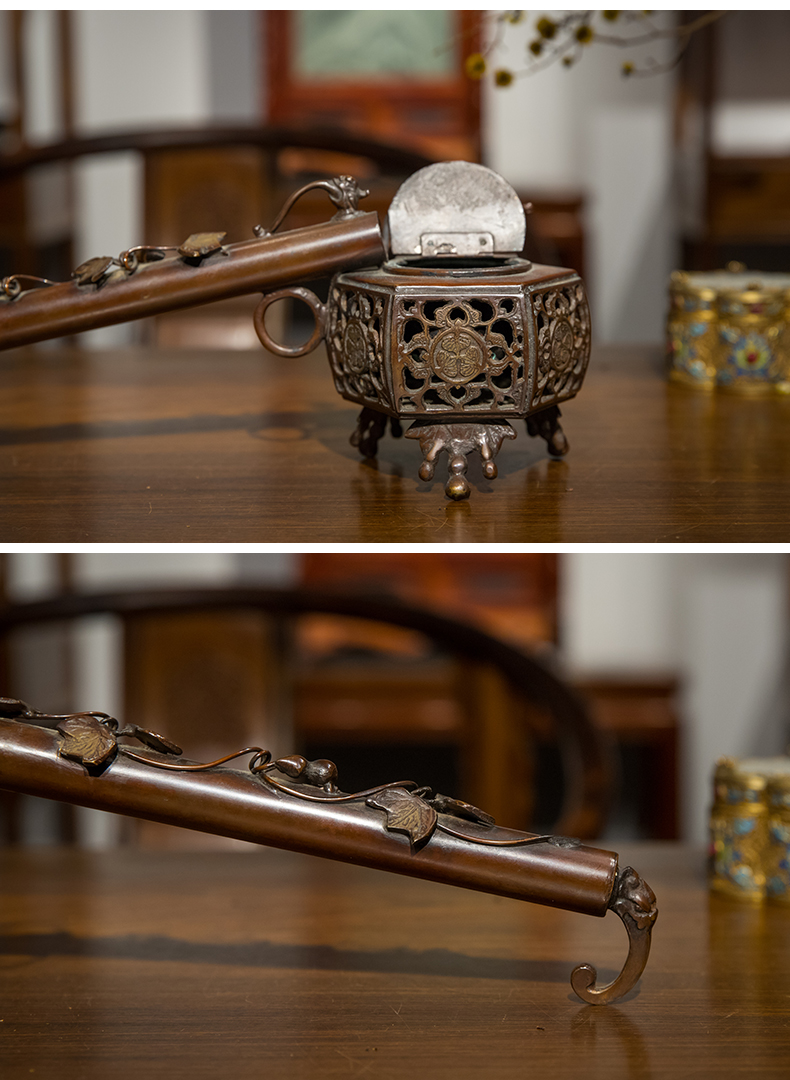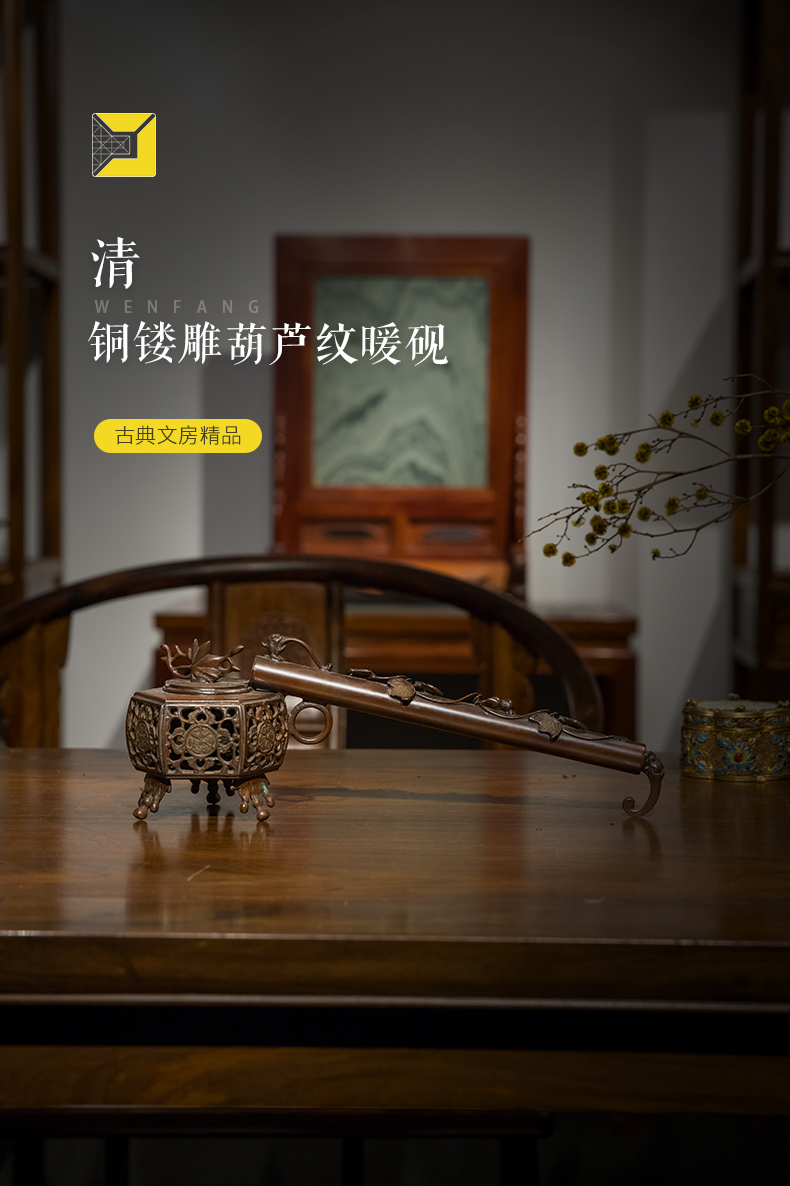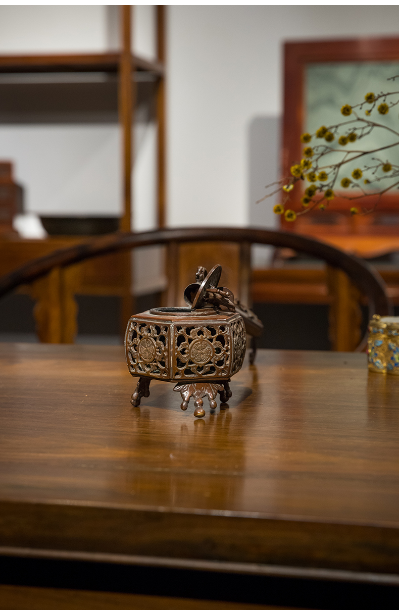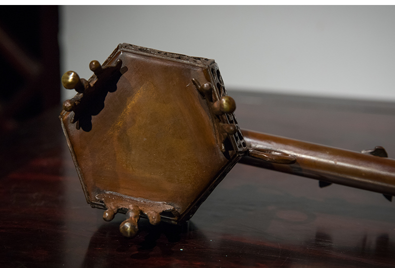 二十世纪 红木嵌云石透雕拐子纹百灵台