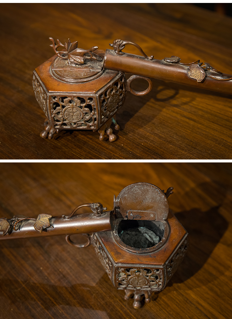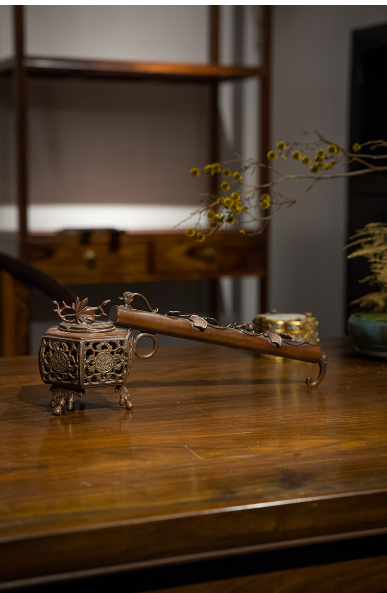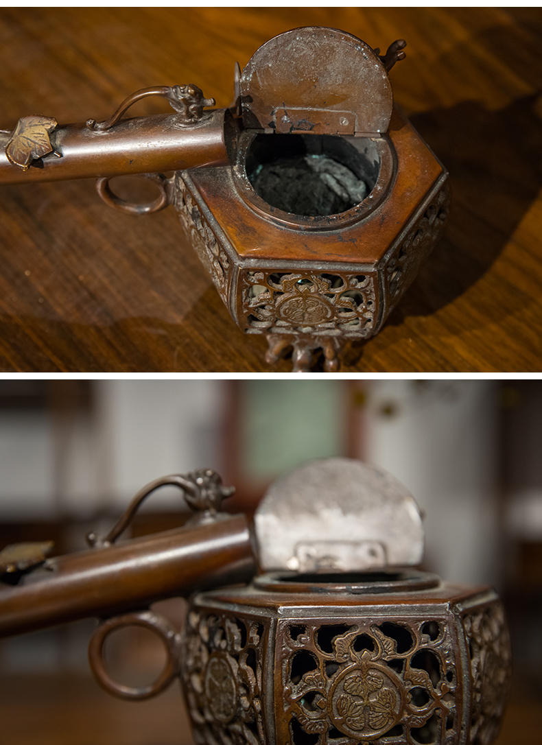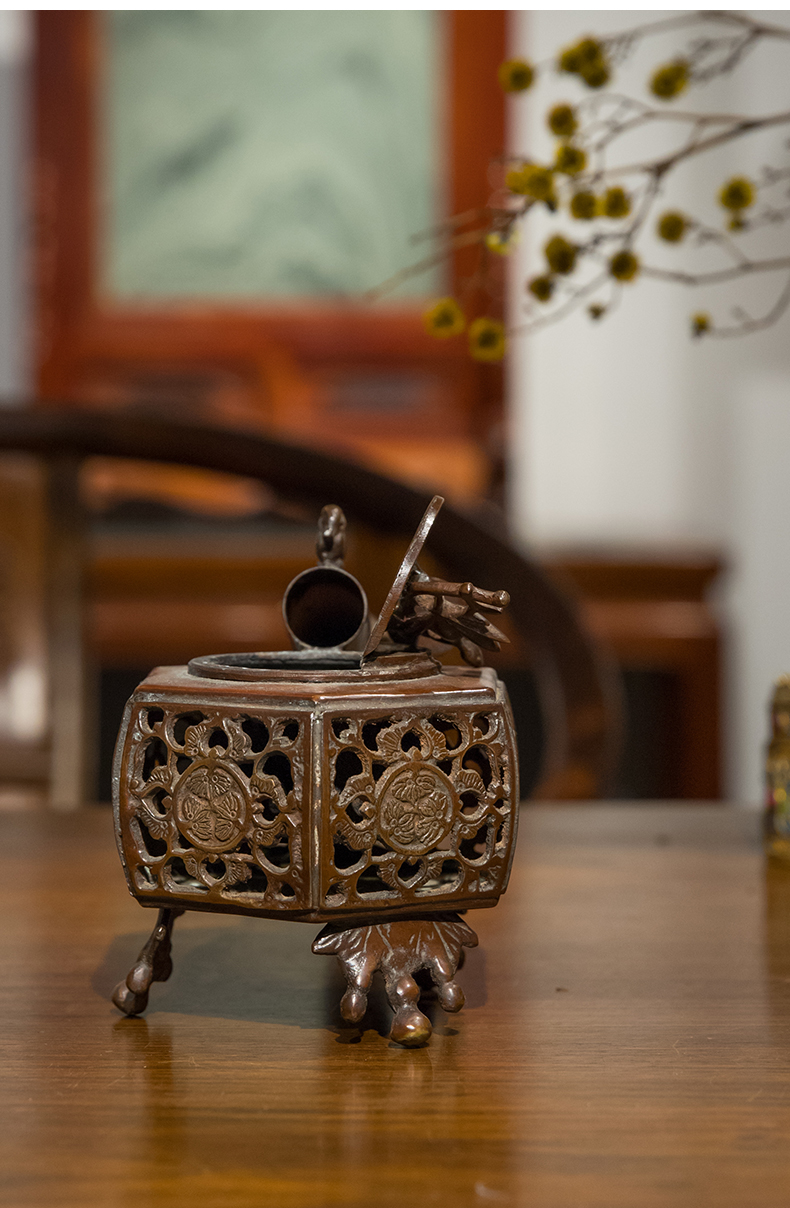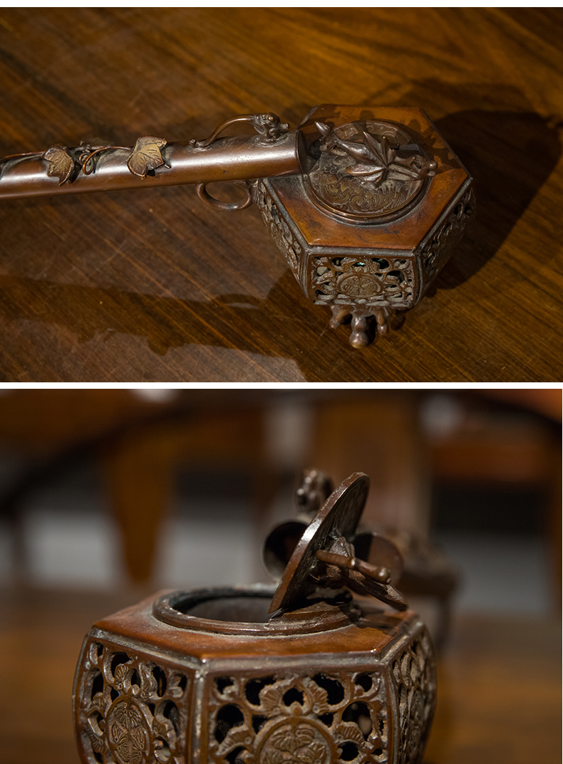 二十世纪 红木嵌云石透雕拐子纹百灵台