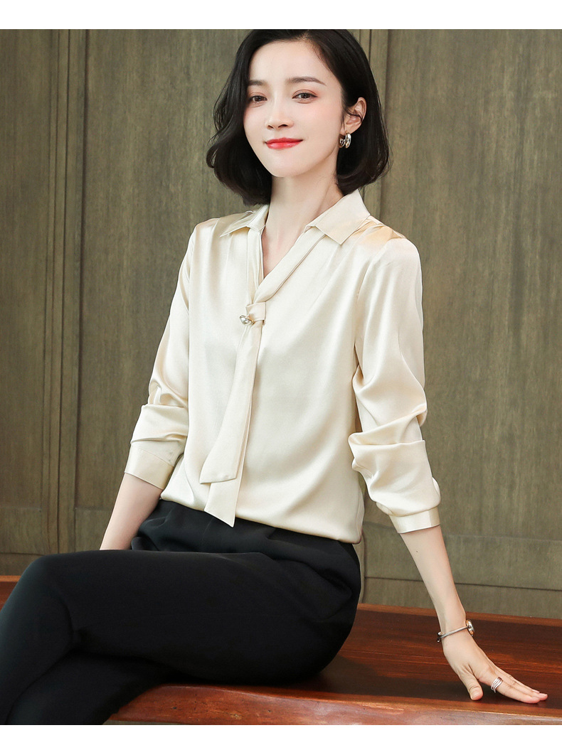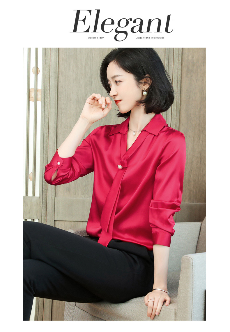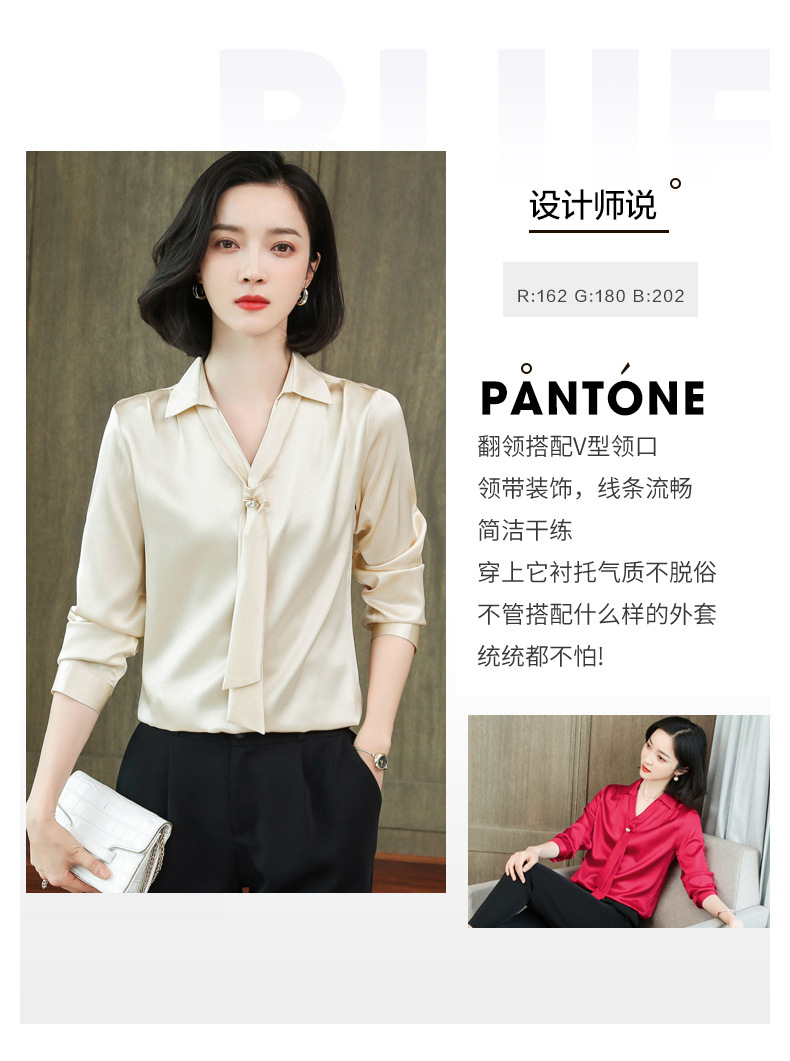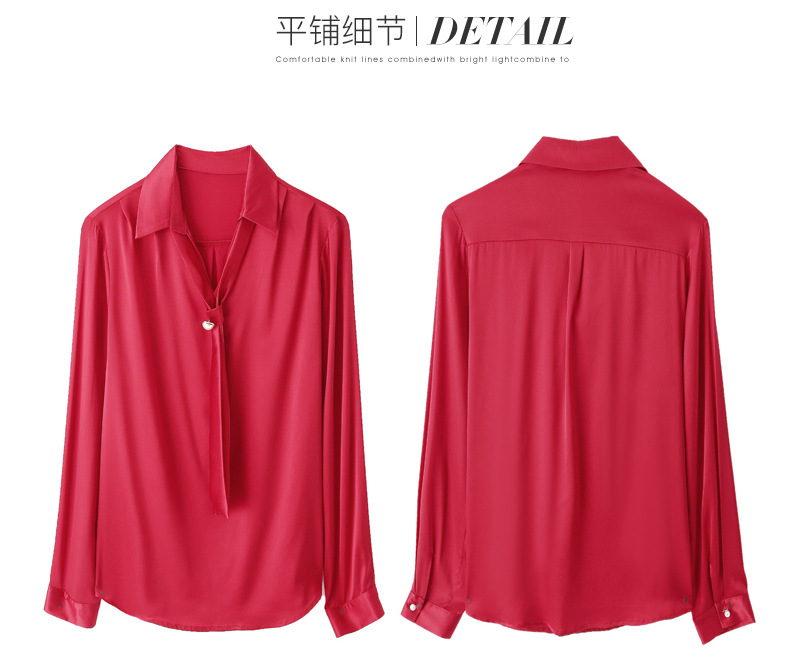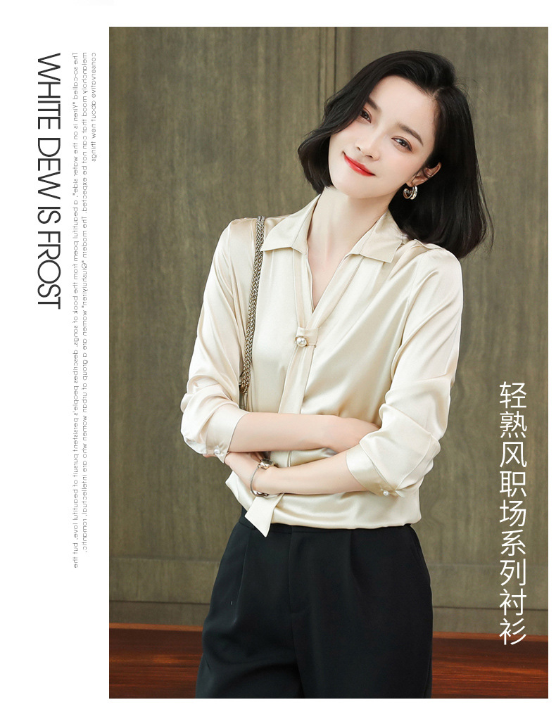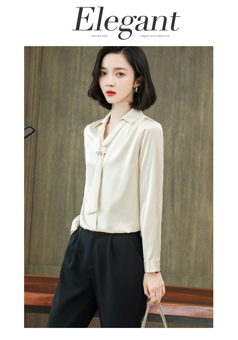 上海旗袍厂ASE-9019 小V领系带气质真丝衬衫