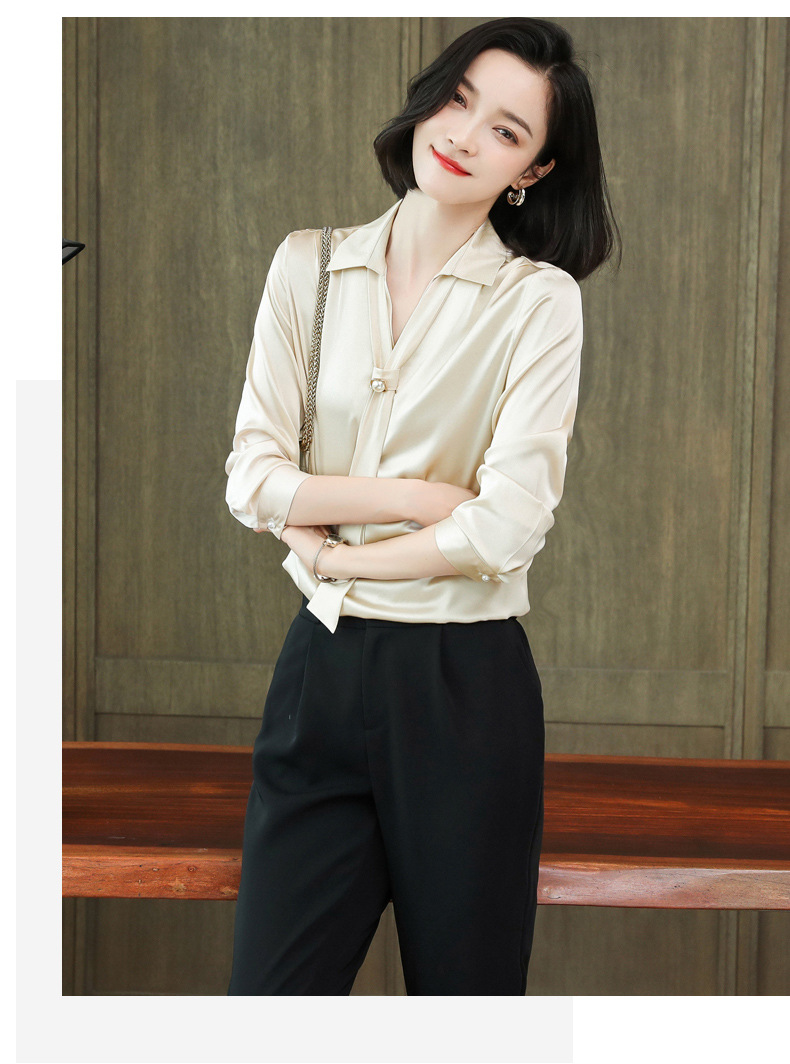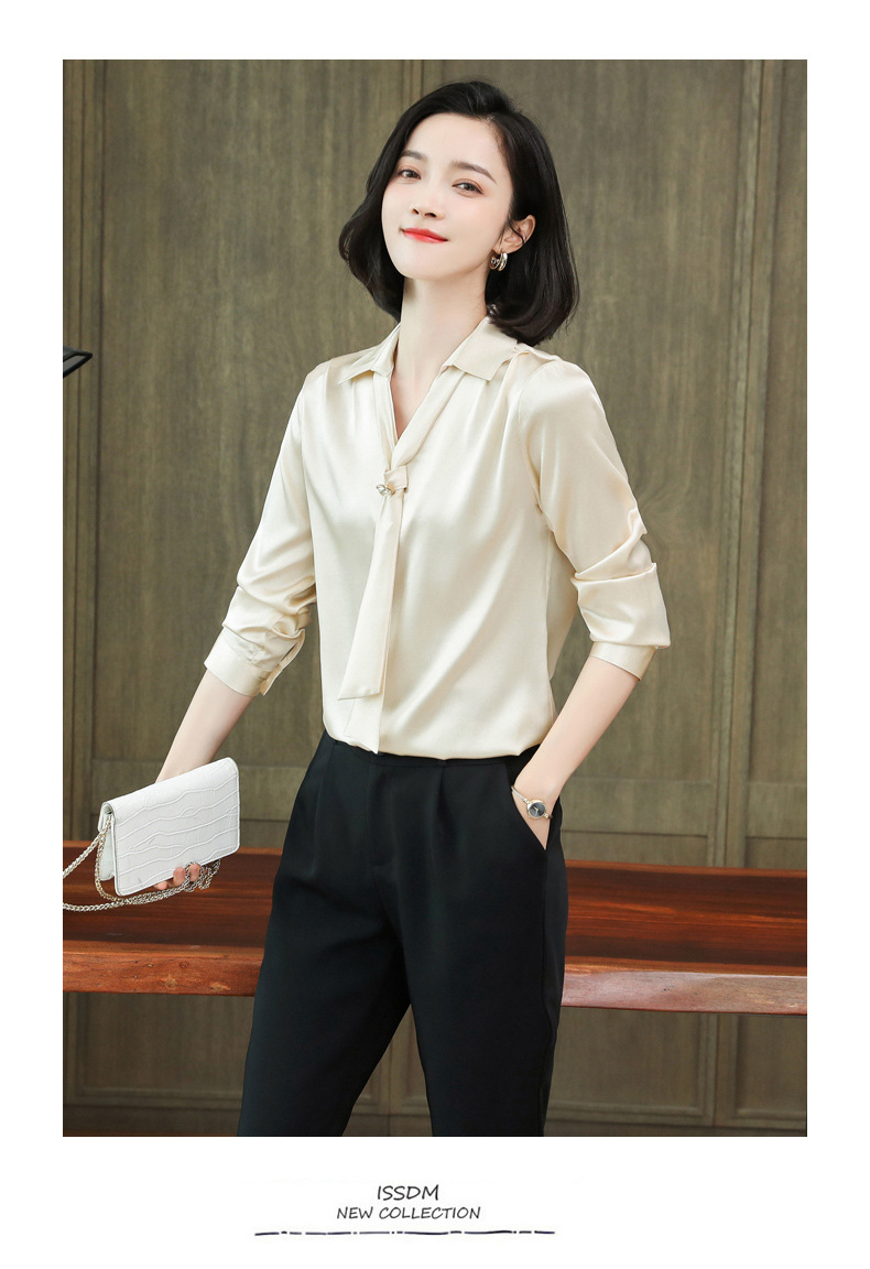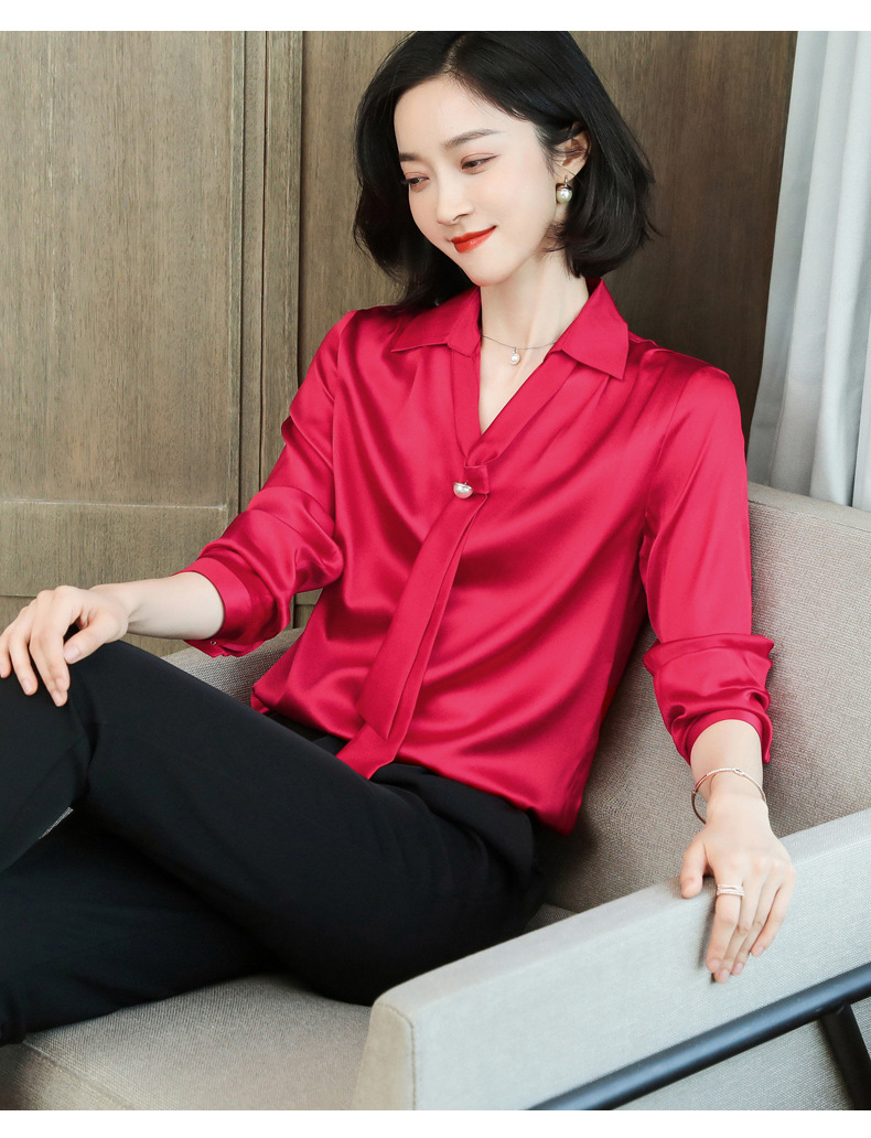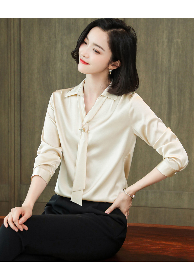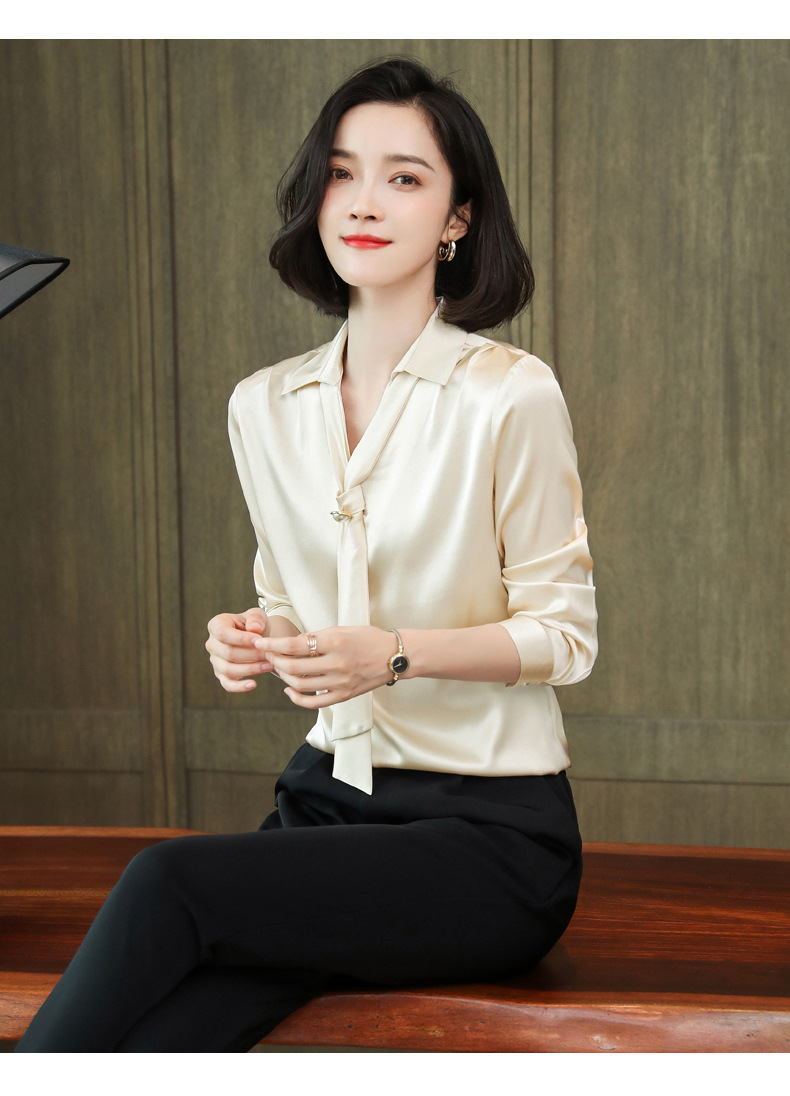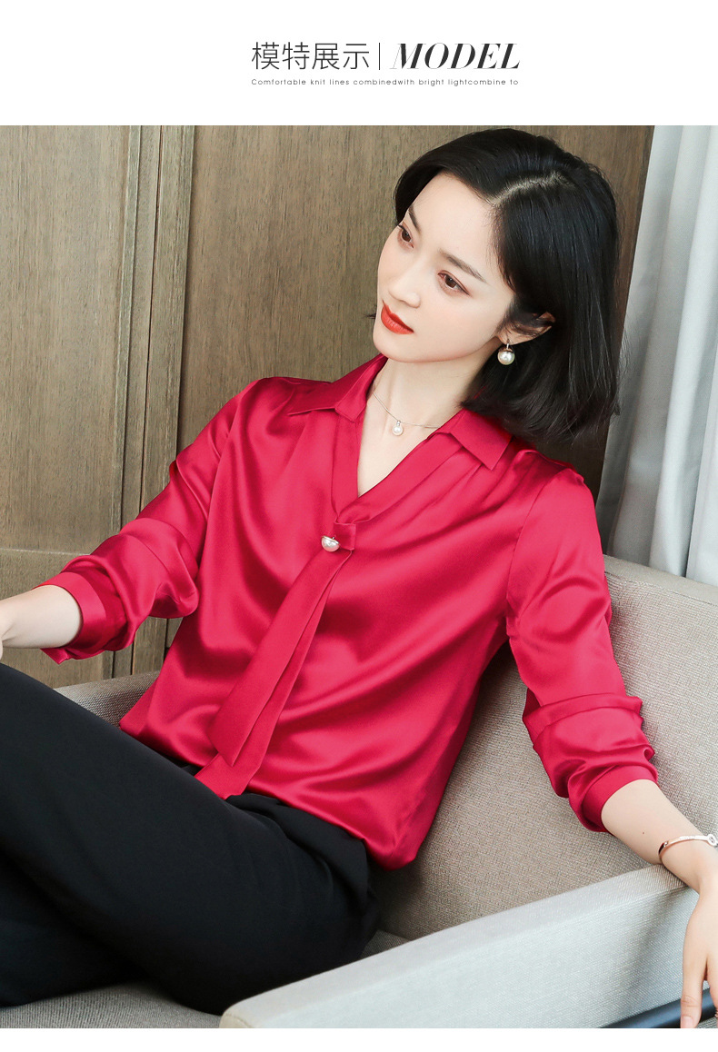 上海旗袍厂ASE-9019 小V领系带气质真丝衬衫