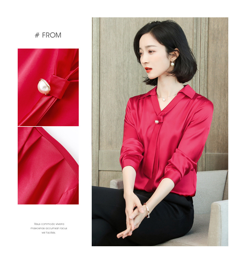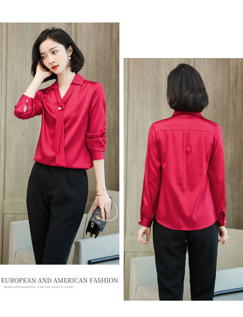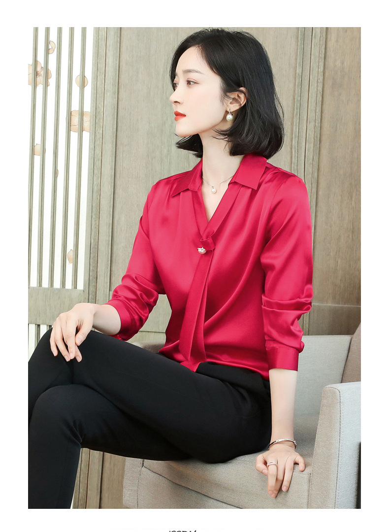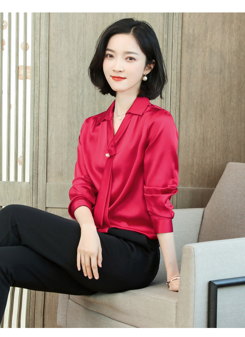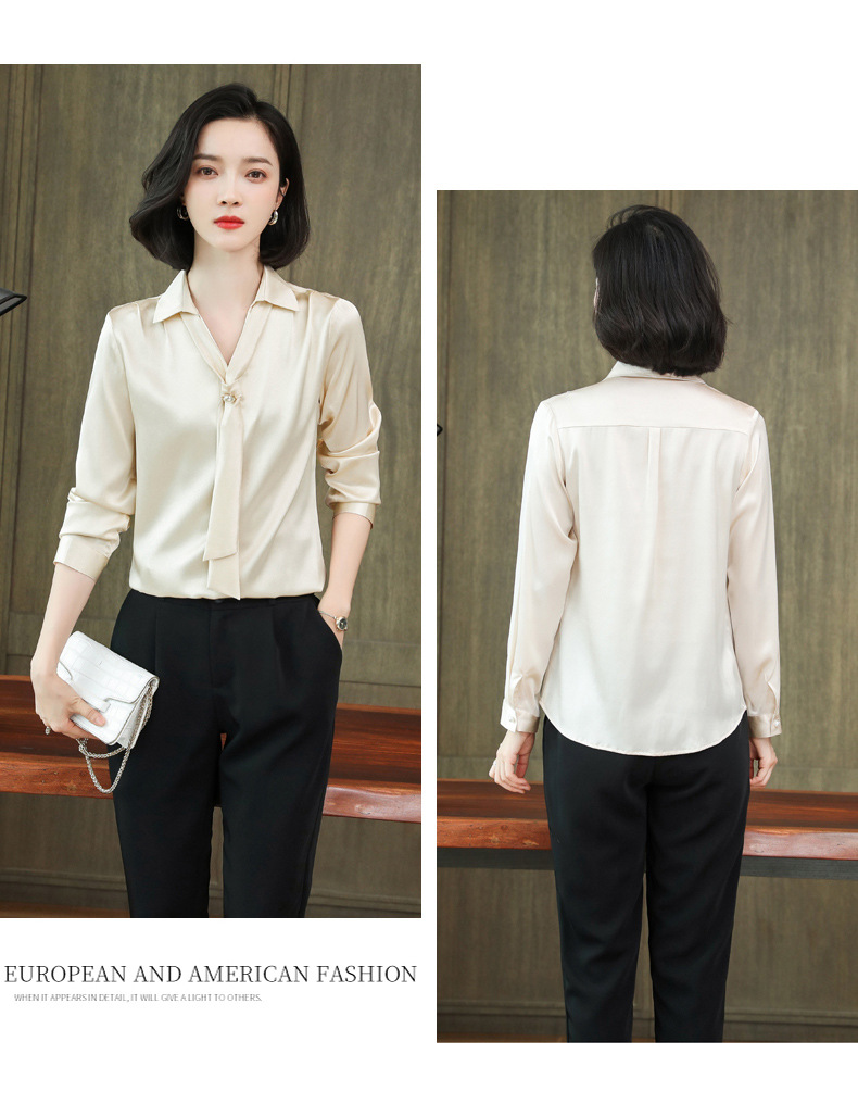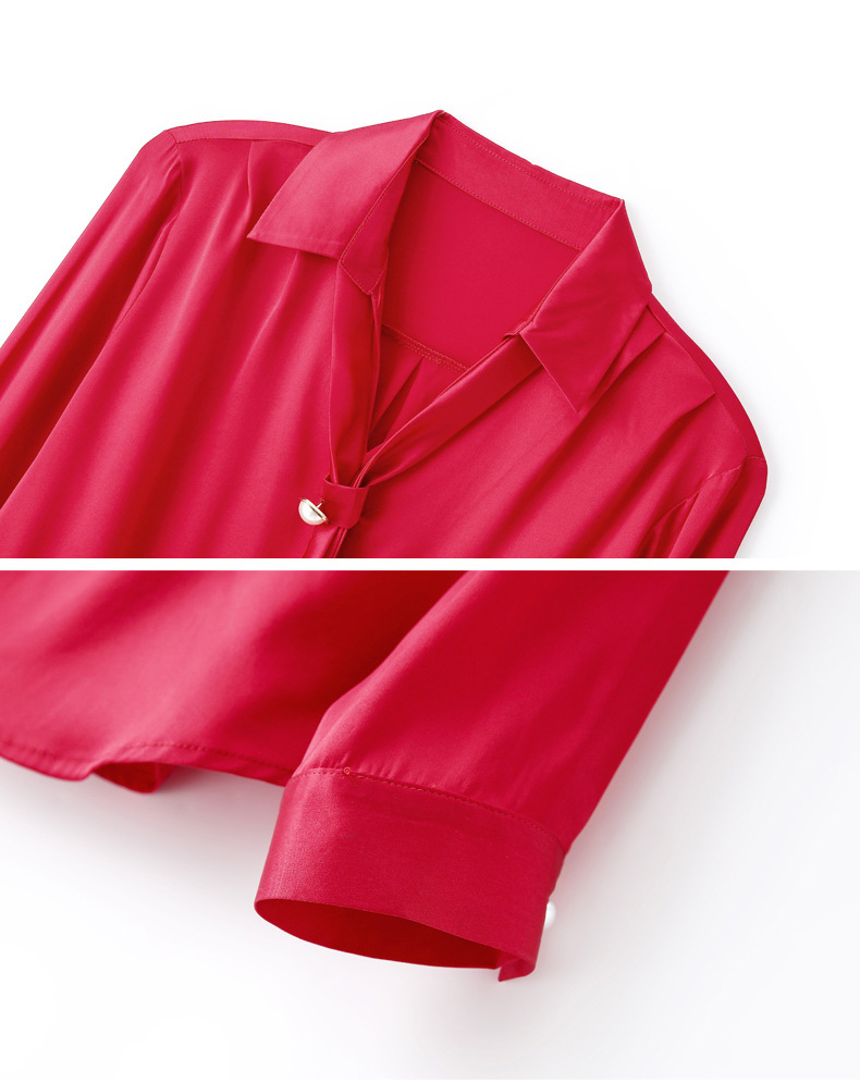 上海旗袍厂ASE-9019 小V领系带气质真丝衬衫
