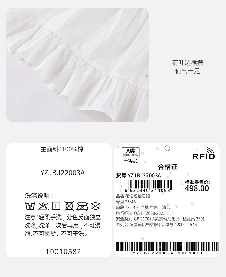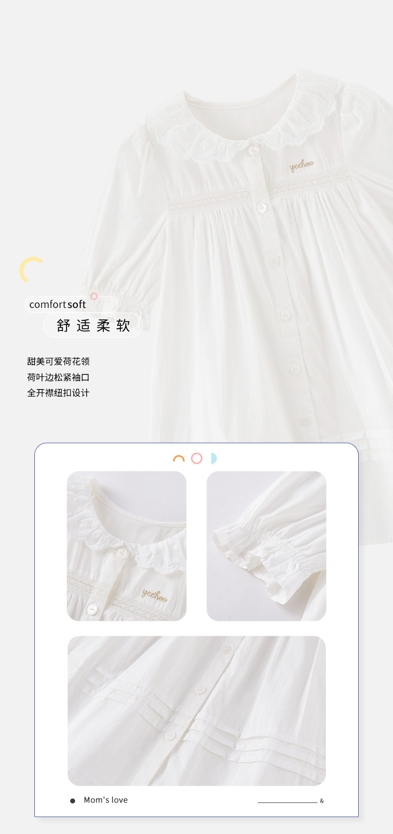 英氏儿童睡衣女童短袖居家休闲纯棉睡裙年春夏季款YZJBJ12002A