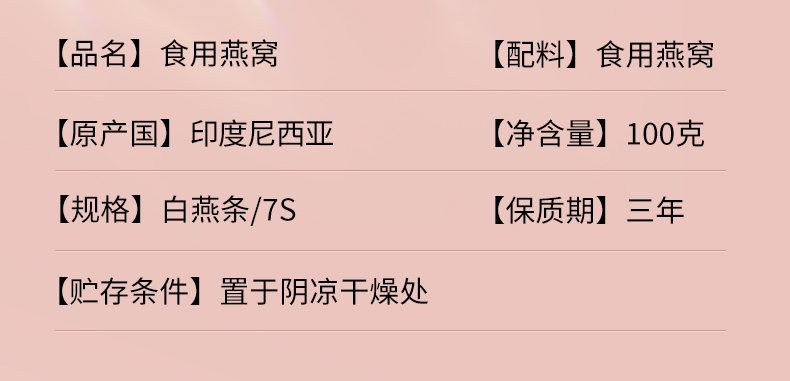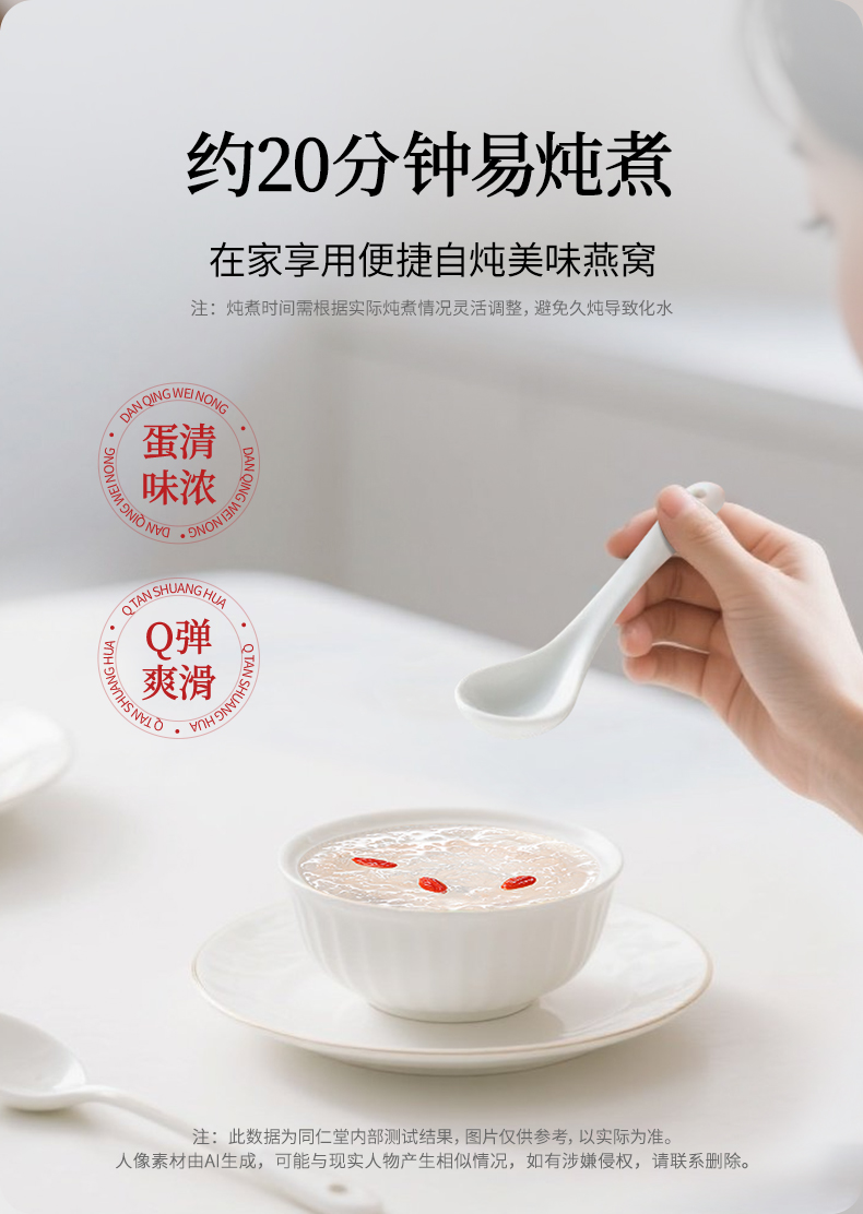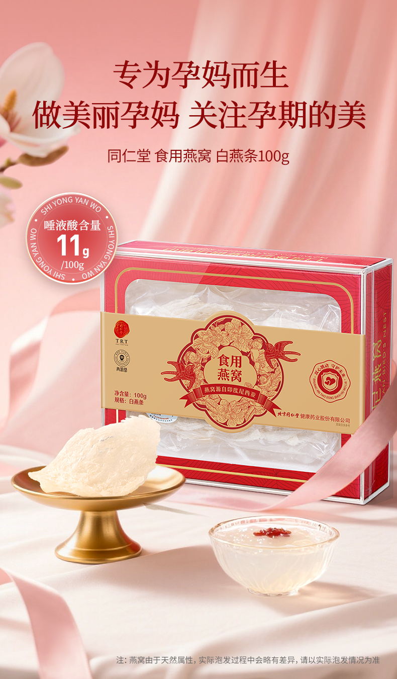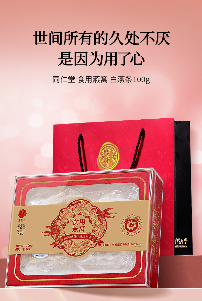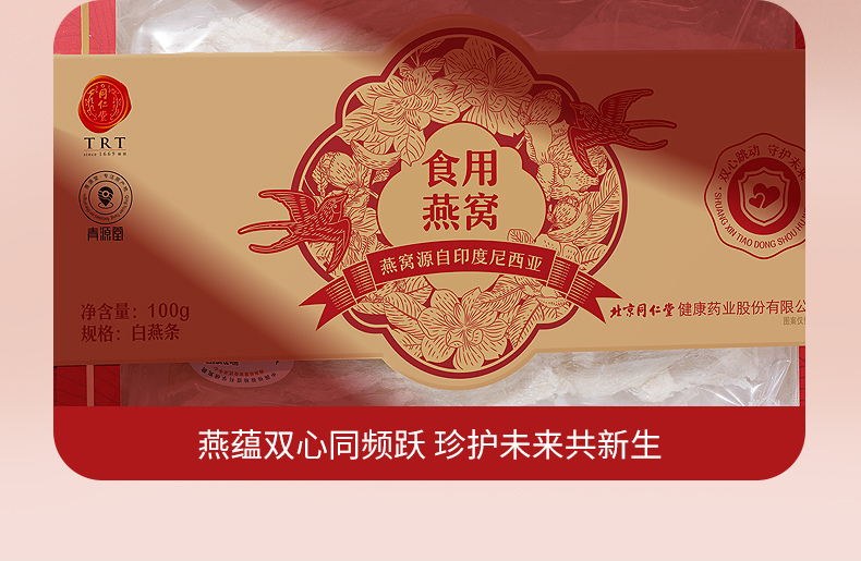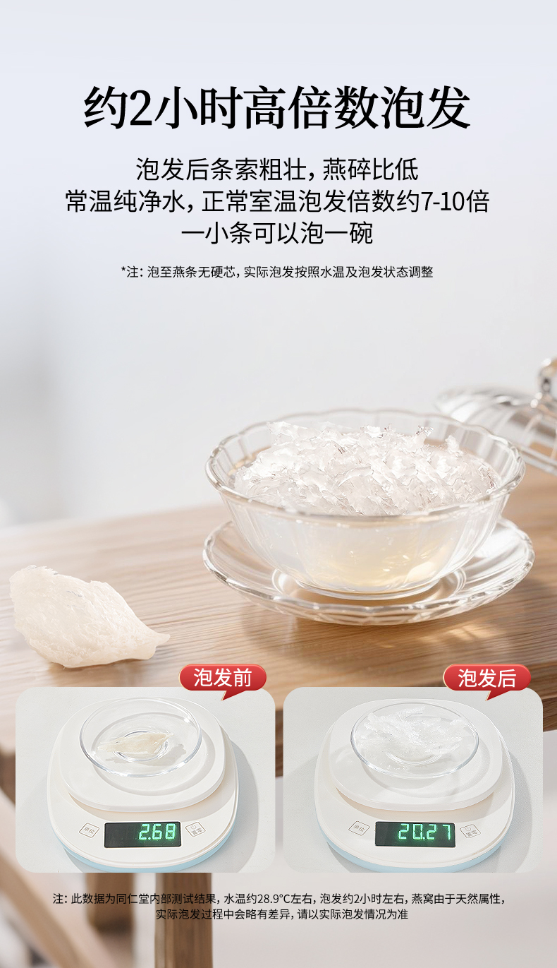 【正宗同仁堂品牌】北京同仁堂 青源堂 白燕条/印尼7S/100g 手工挑毛 自然燕条 自然色泽SY