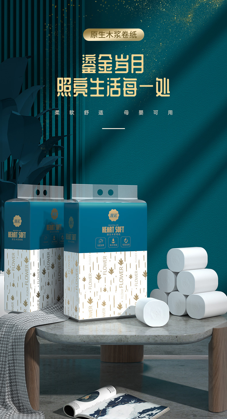 漫花纸巾 原木大卷筒纸 整提实惠装五层加厚卷纸家用卫生纸