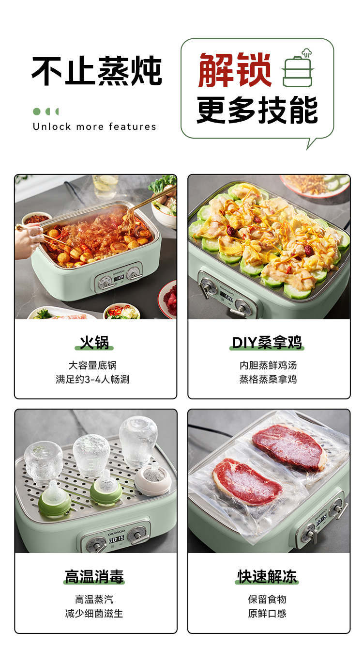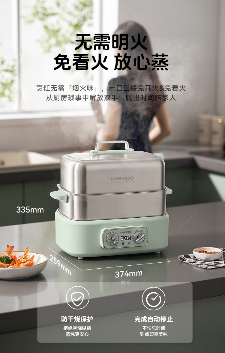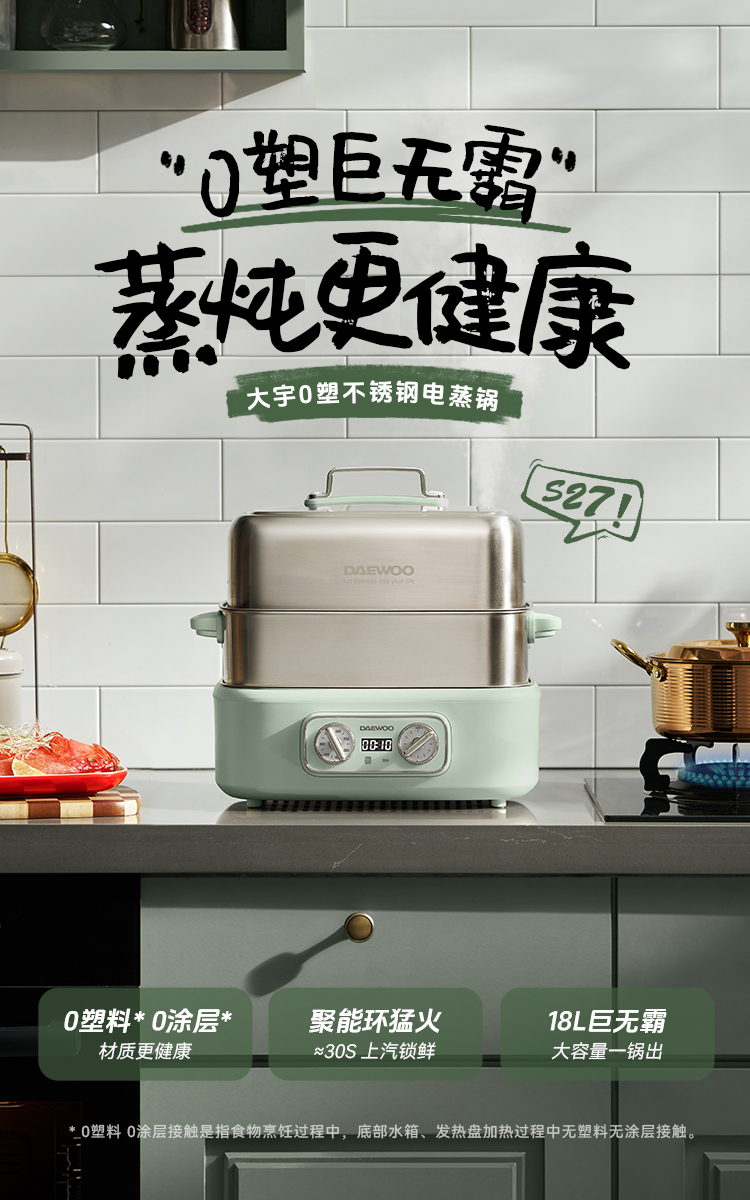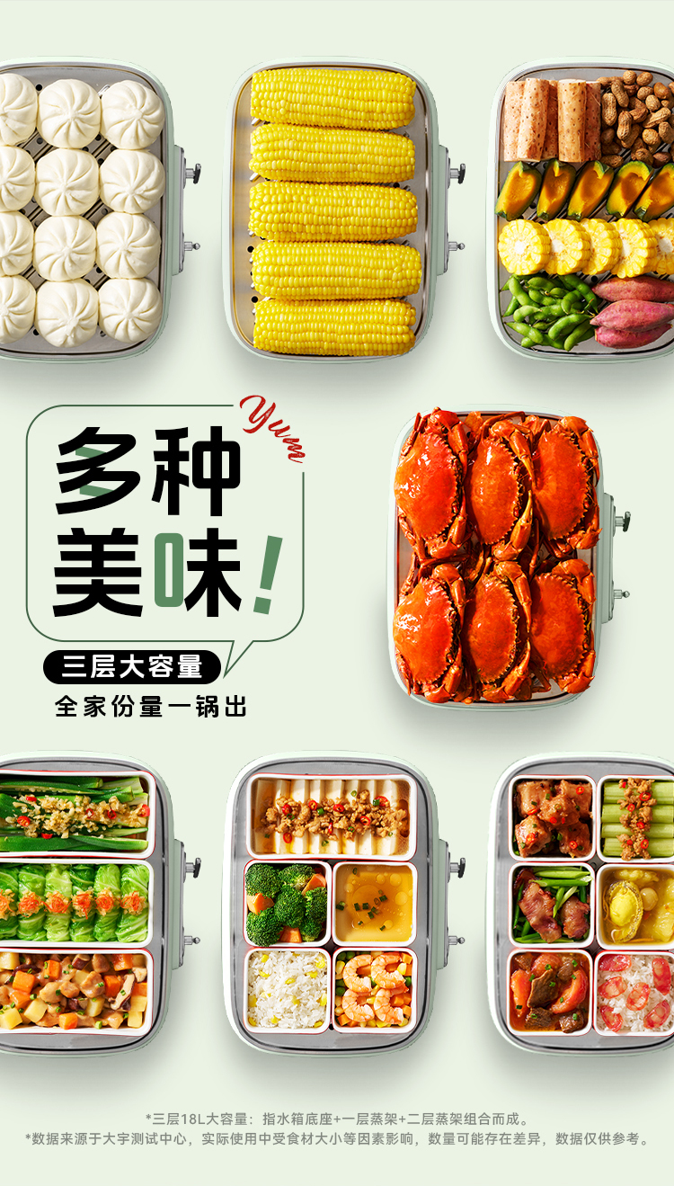 大宇多功能蒸煮炖一体三层可拆洗304不锈钢18L 电蒸锅S30