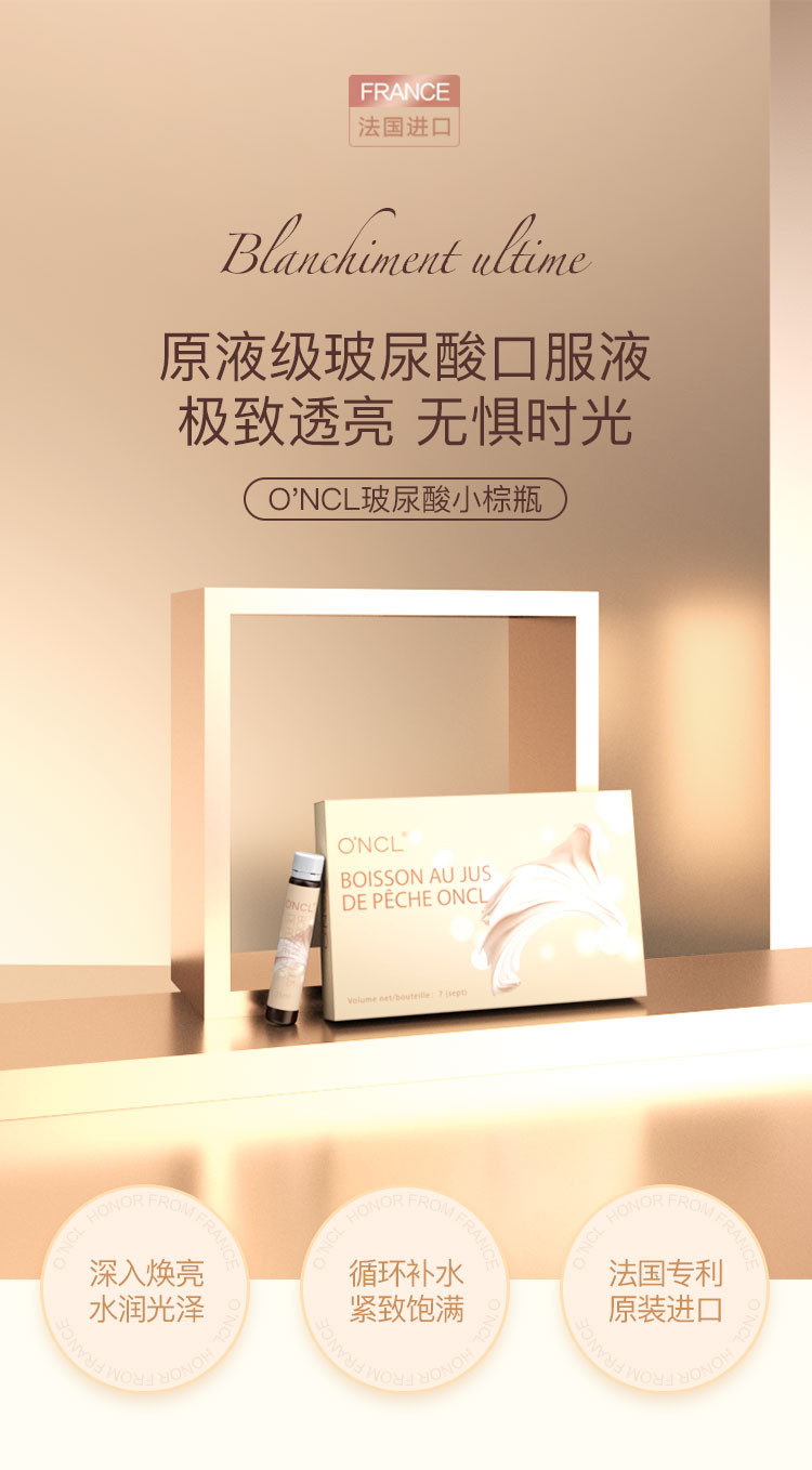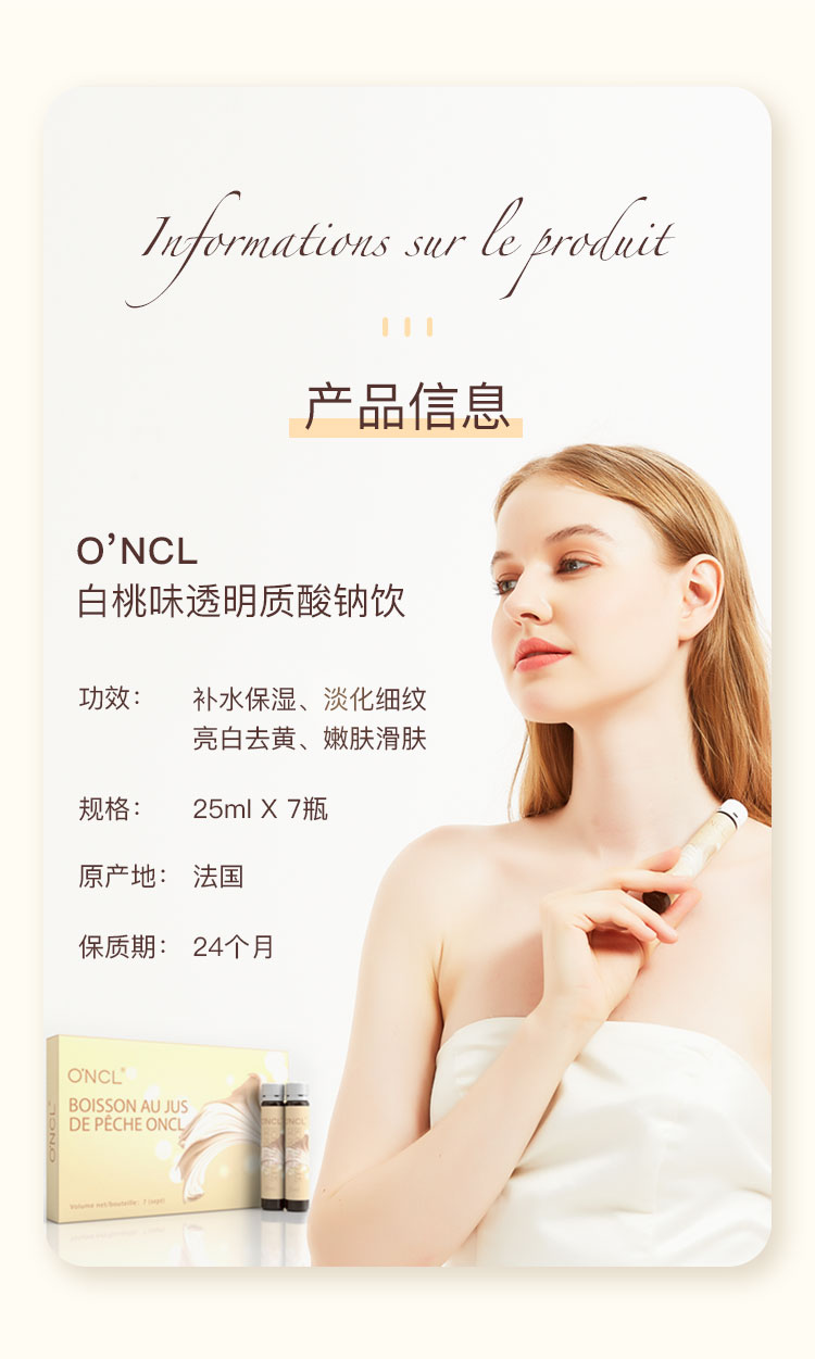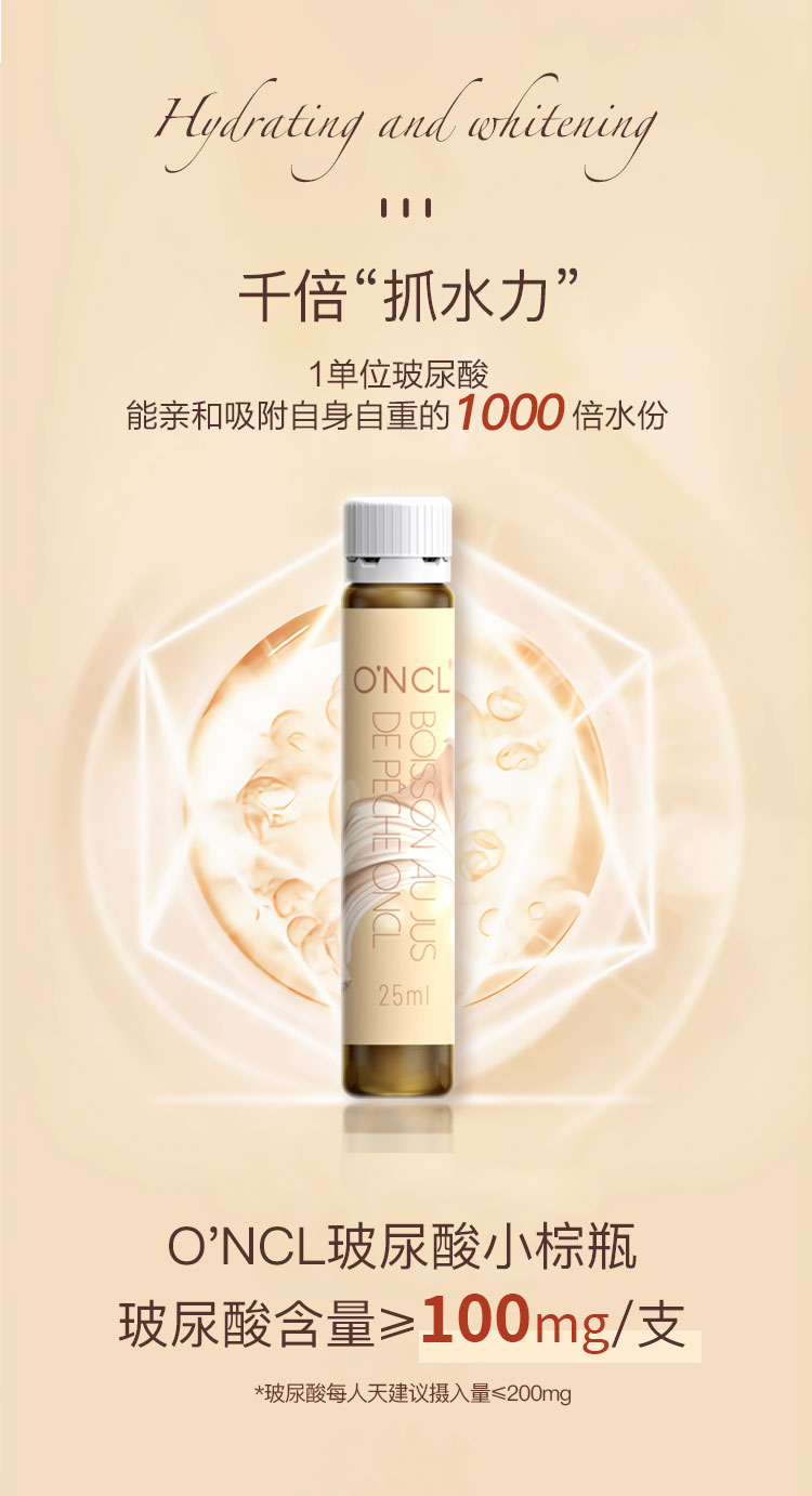 【法国进口 每天一瓶喝出水光肌】法国O'NCL玻尿酸小棕瓶1000倍补水补充流失胶原蛋白抚平细纹细腻肌肤恢复肌肤弹性