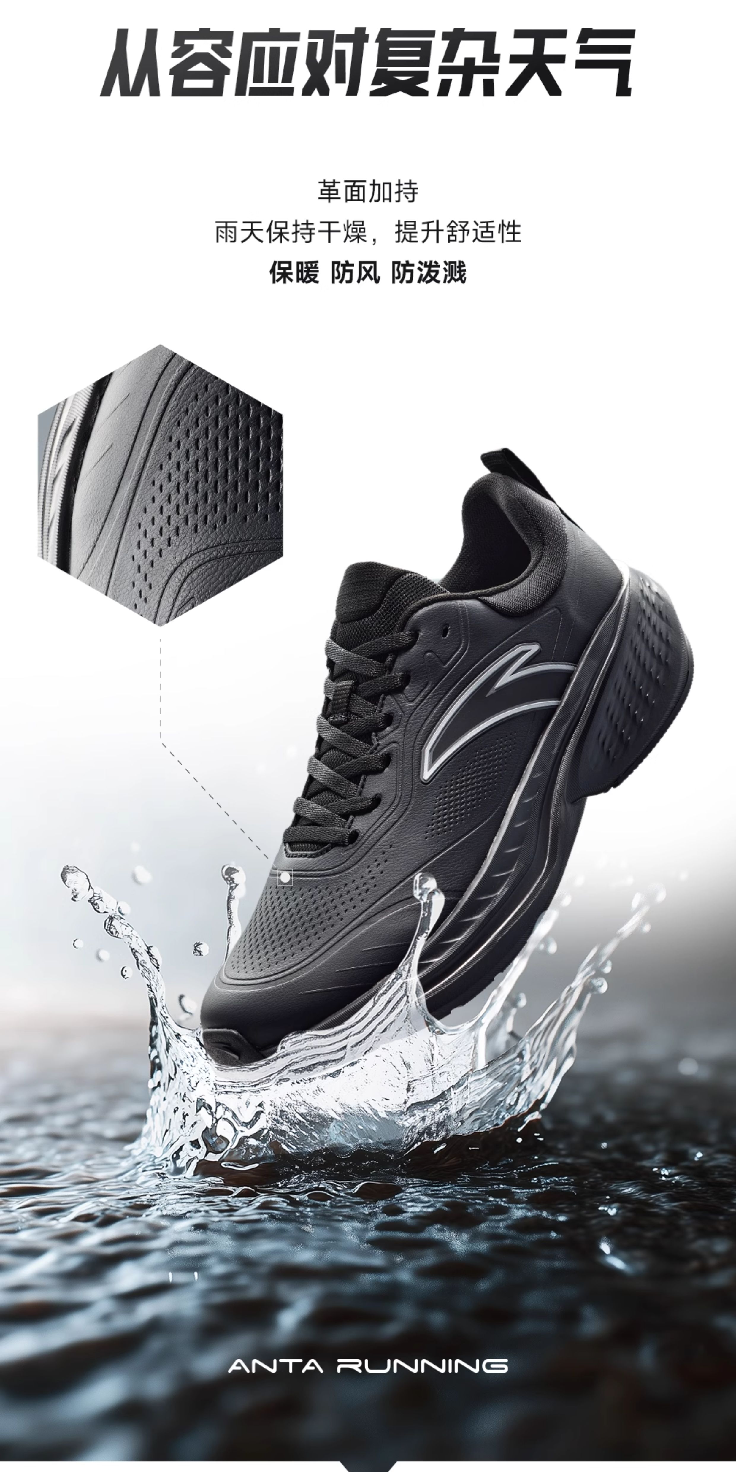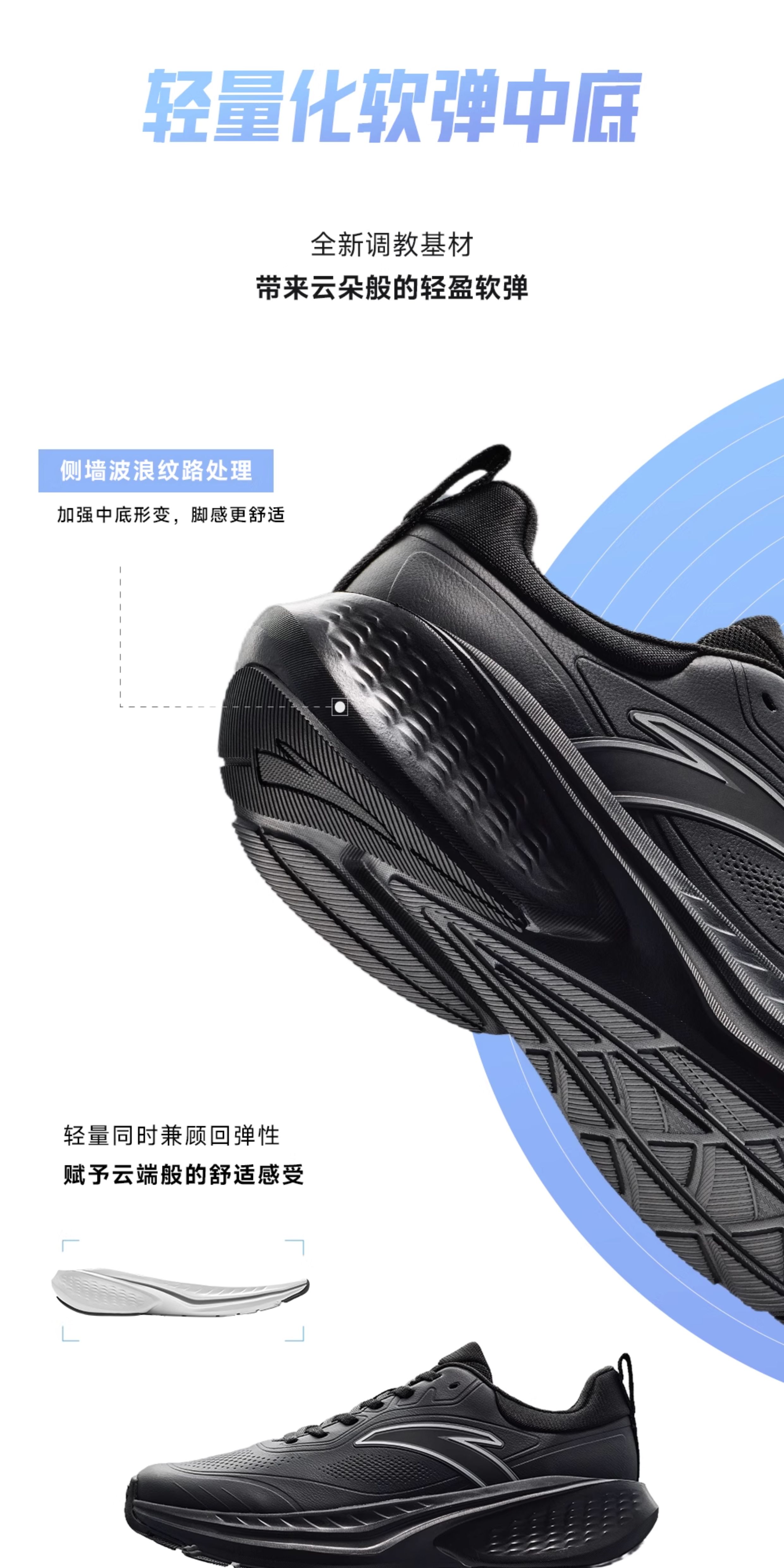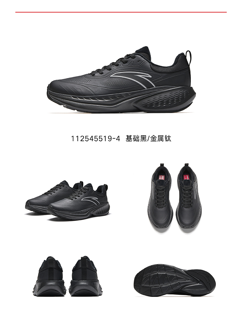 安踏云途丨轻质回弹缓震跑步鞋男2025秋季新款黑色跑鞋112545519