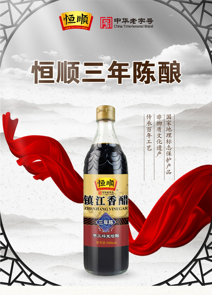 【加“料”】恒顺香醋三年陈580ml 调味料蘸食炒菜凉拌 酿造食醋