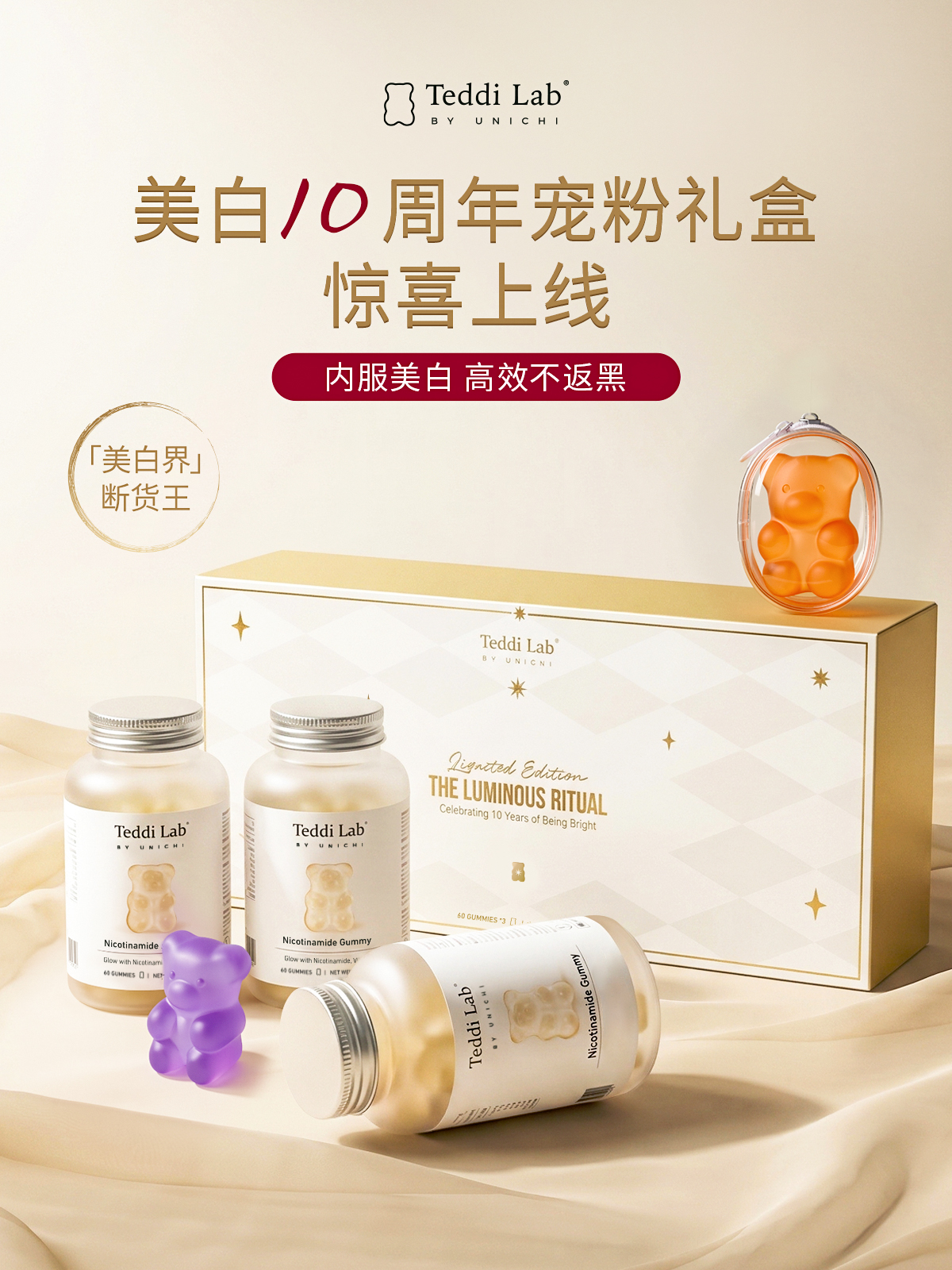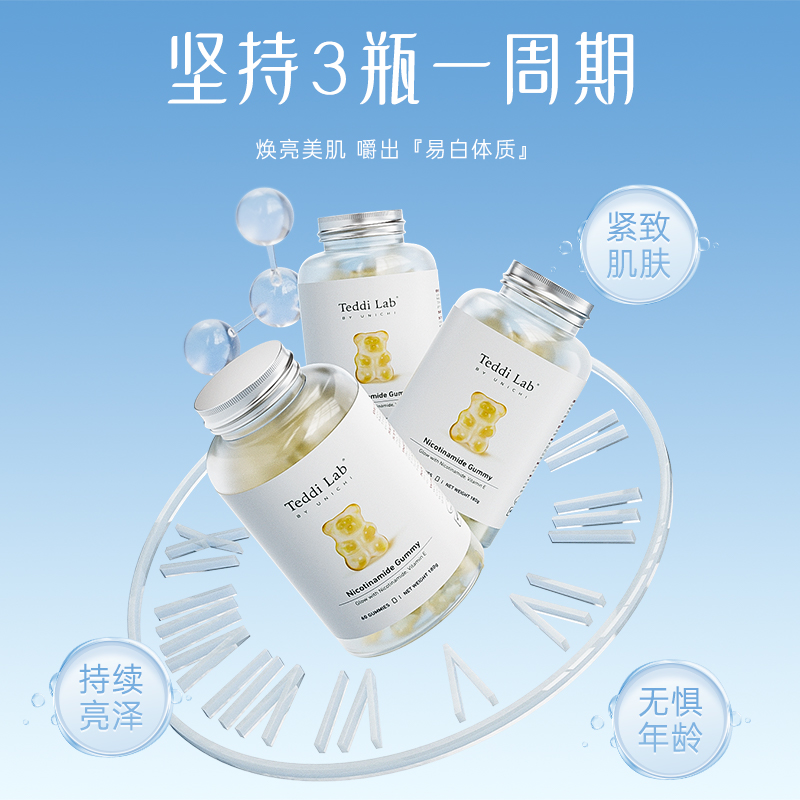 【烟酰胺美白礼盒】Unichi烟酰胺小熊软糖60粒/瓶*3赠盲盒捏捏