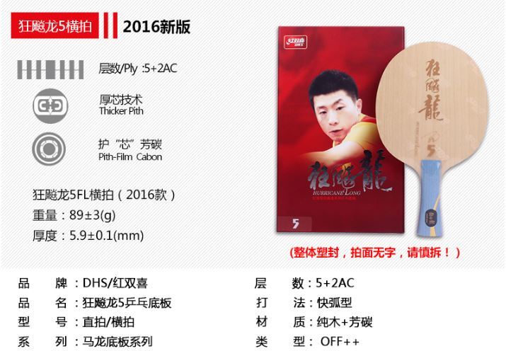 DHS红双喜 狂飚龙5x /龙5马龙奥运用 5+2芳碳结构 护芯碳技术