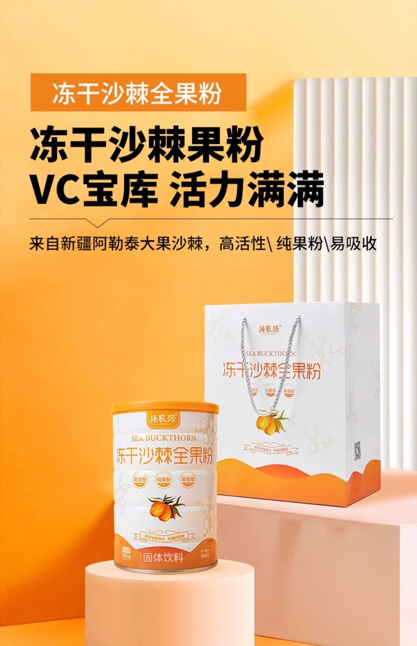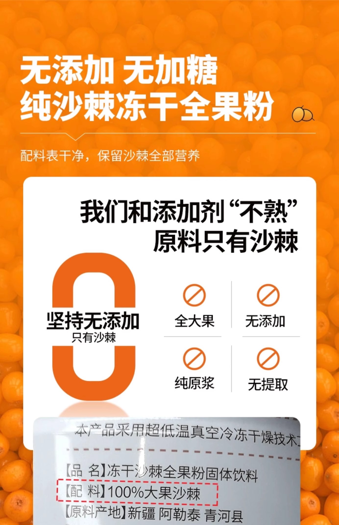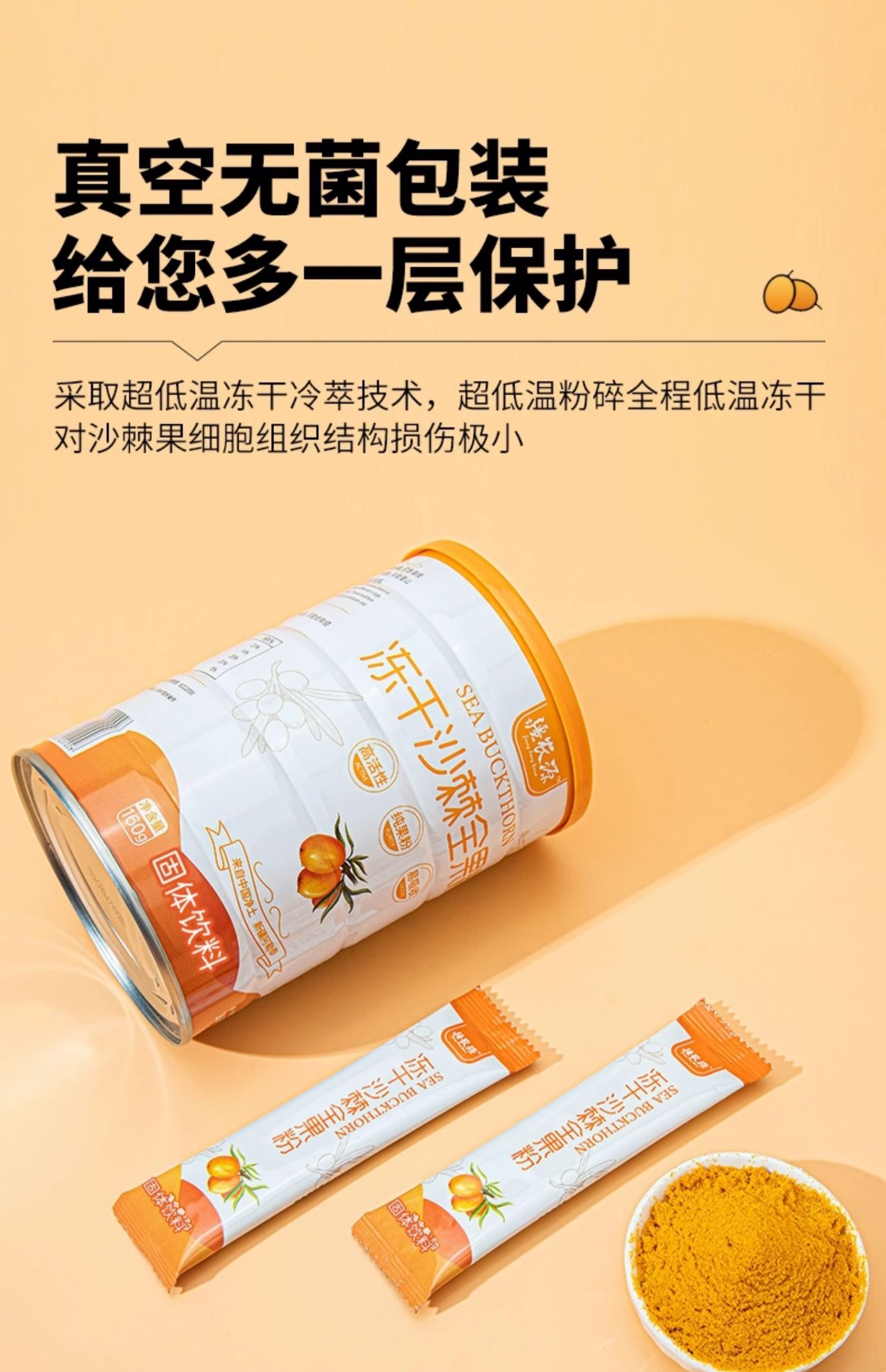 华盛元·有机沙棘冻干粉8g*16条 不提油、不提籽 保证全沙棘冻干成粉