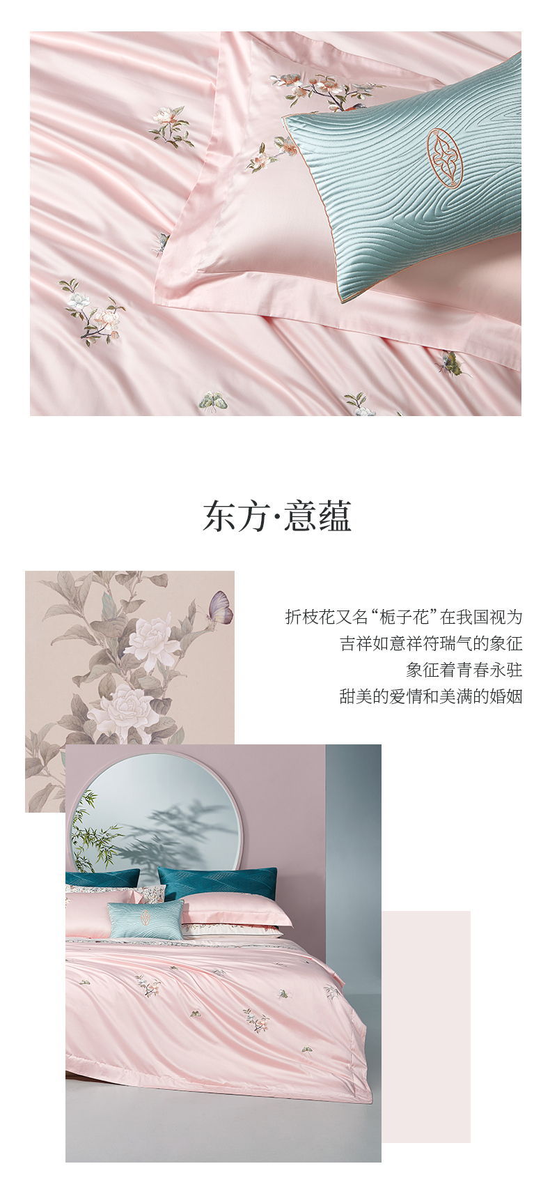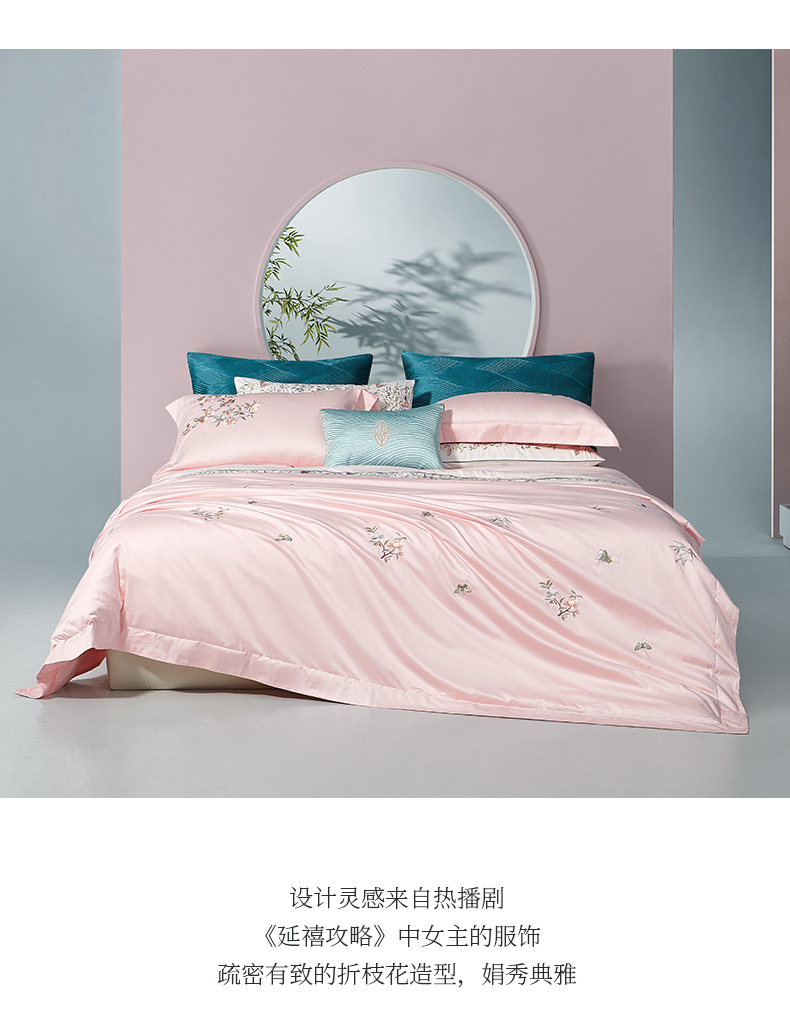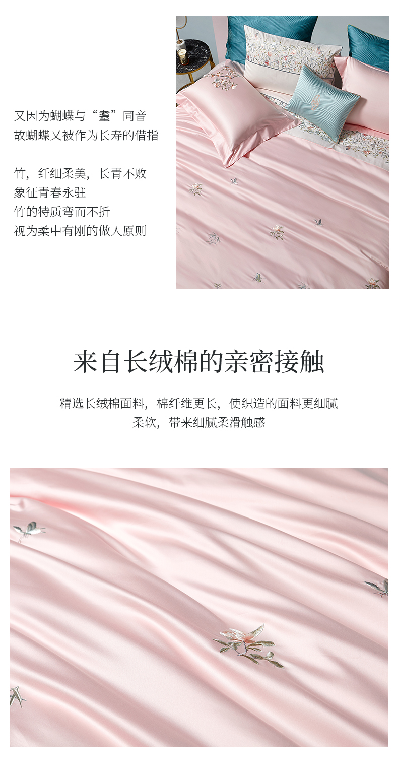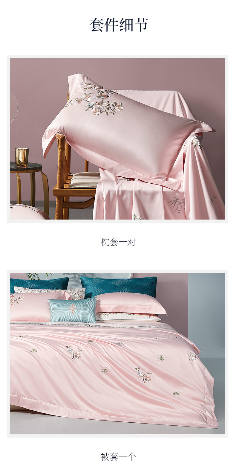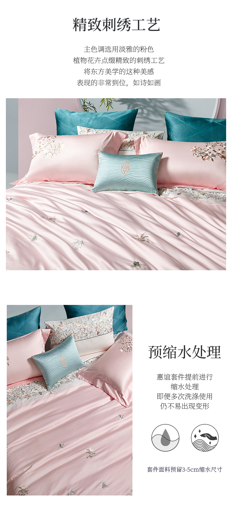 whinny/惠谊 新中式婉约100S新疆长绒棉全棉绣花四件套 雅韵凝脂