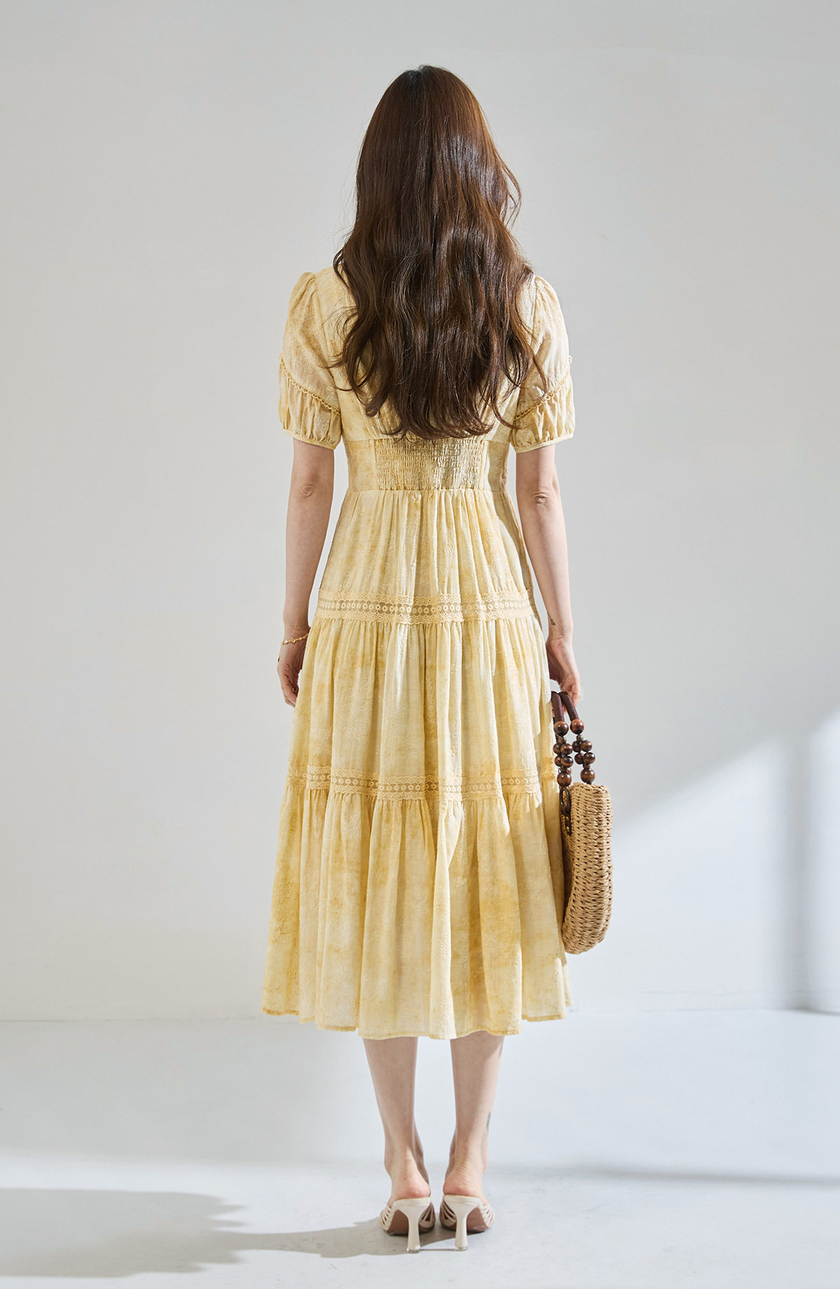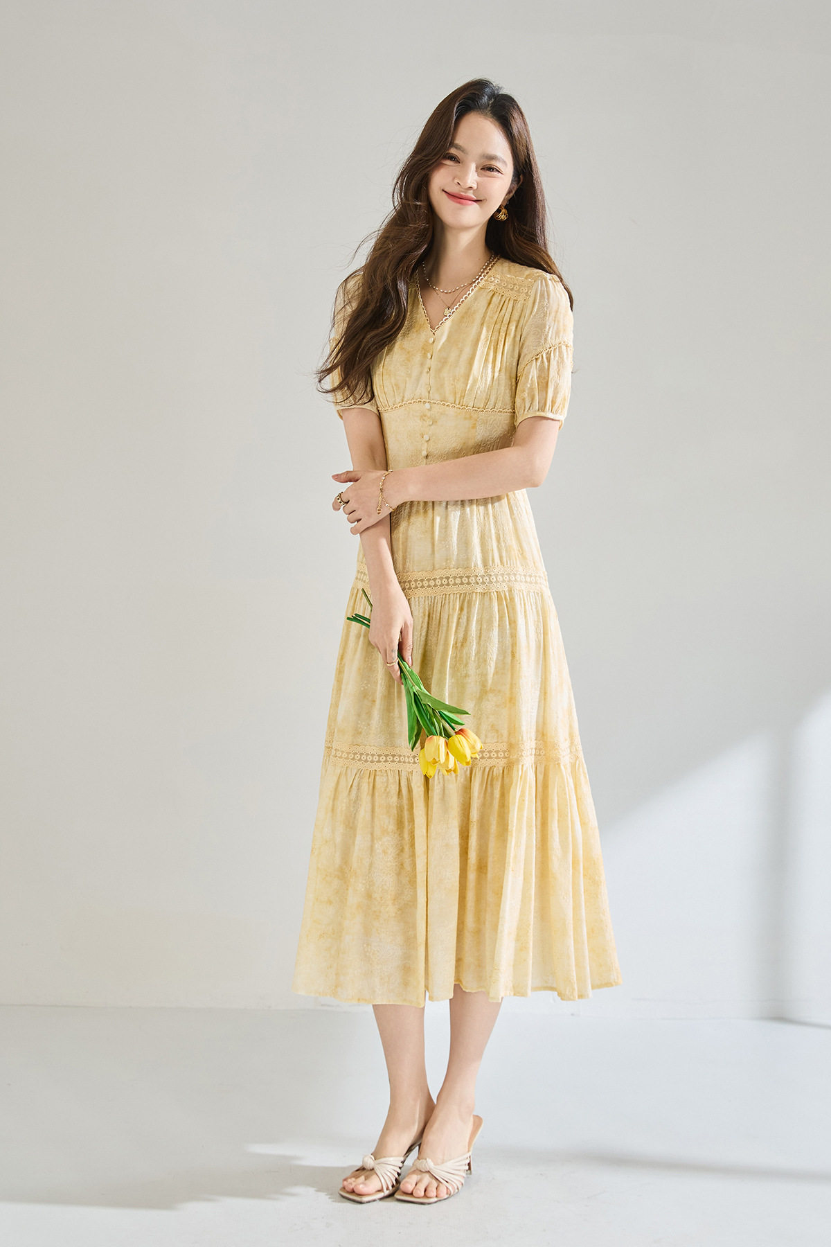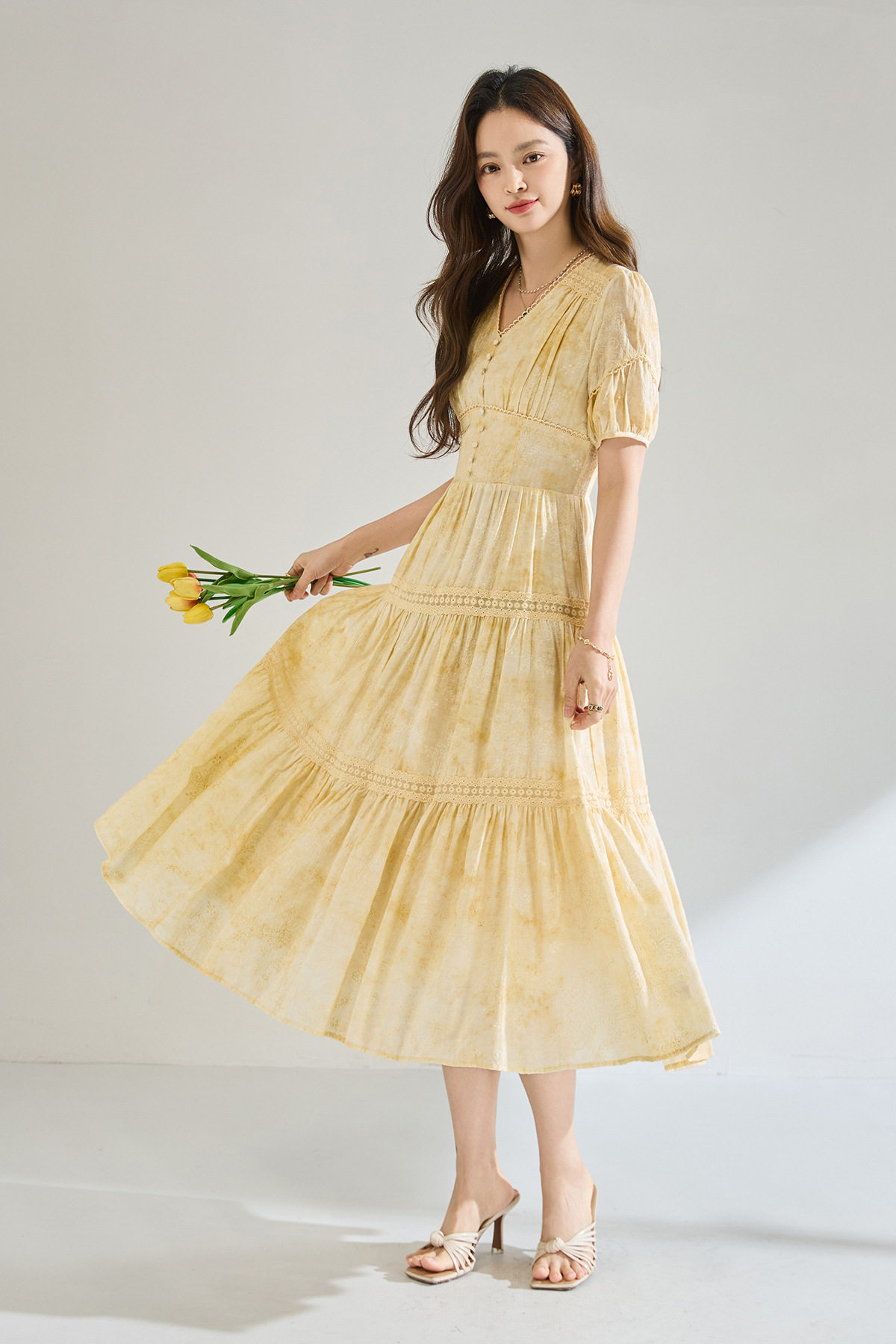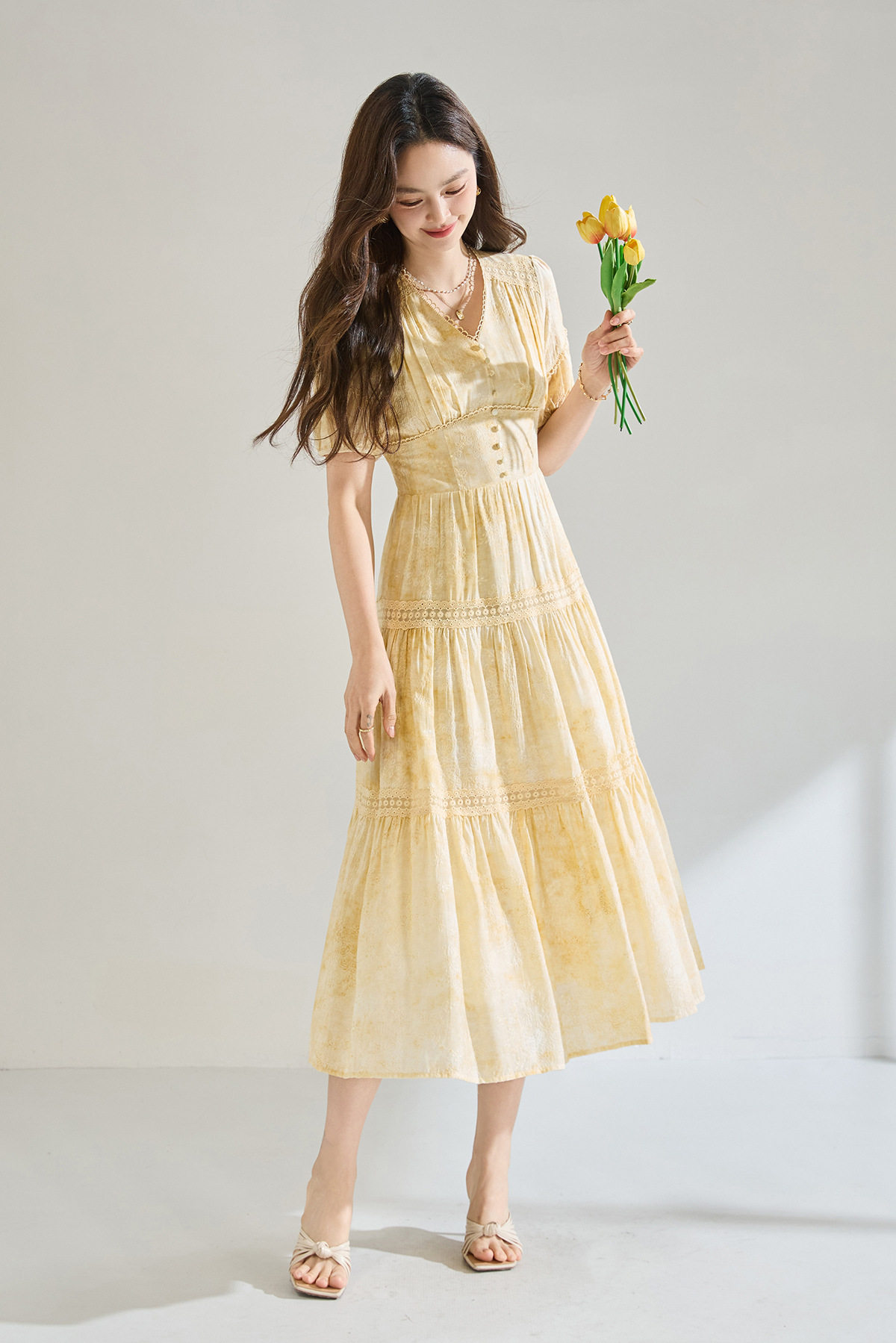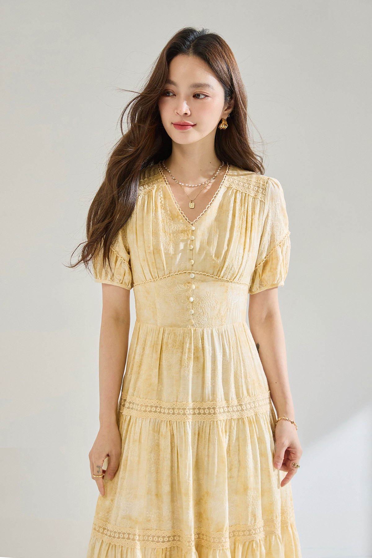「高货sh」全新升级【铂金会员330/天猫449/差价119】(12958)洛诗琳莱赛尔天丝刺绣连衣裙2026炒色工艺V领蕾丝拼接裙