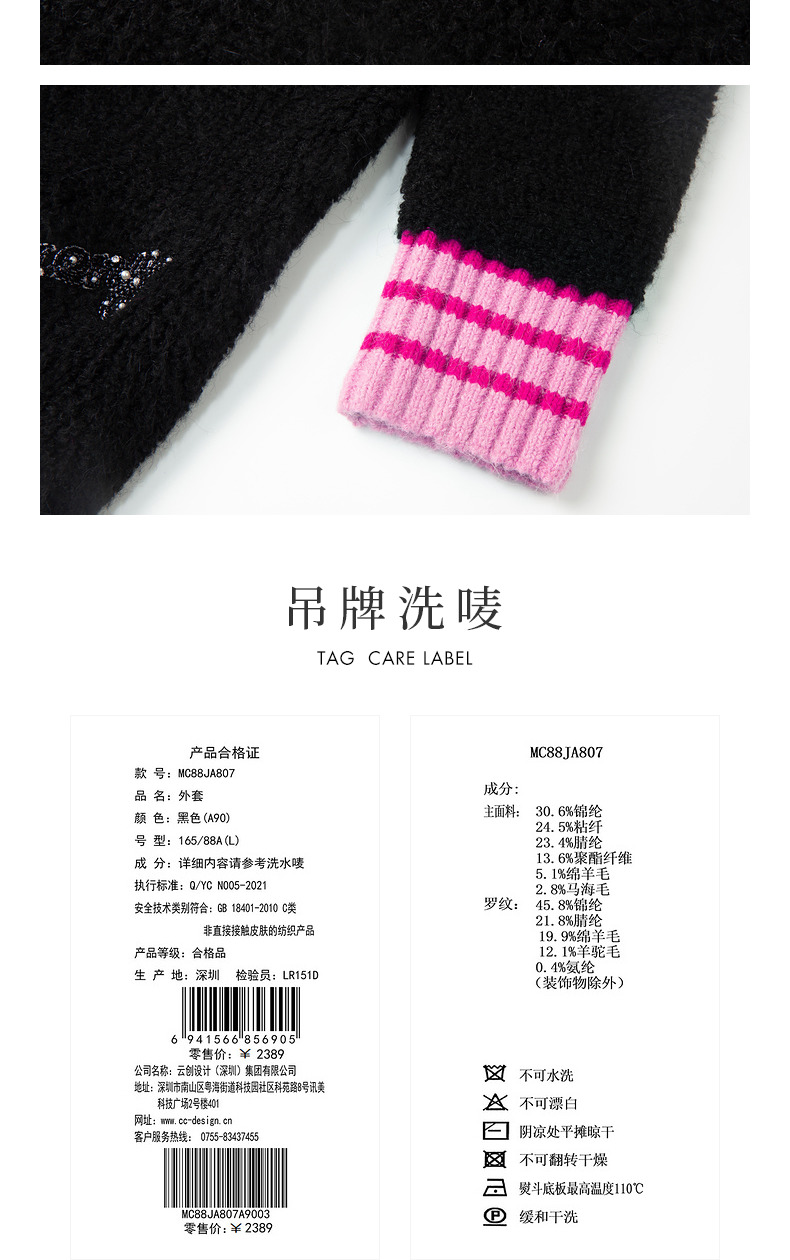 玛克门店发货:MAXRIENY撞色刺绣开衫外套(货号:MC88JA807)