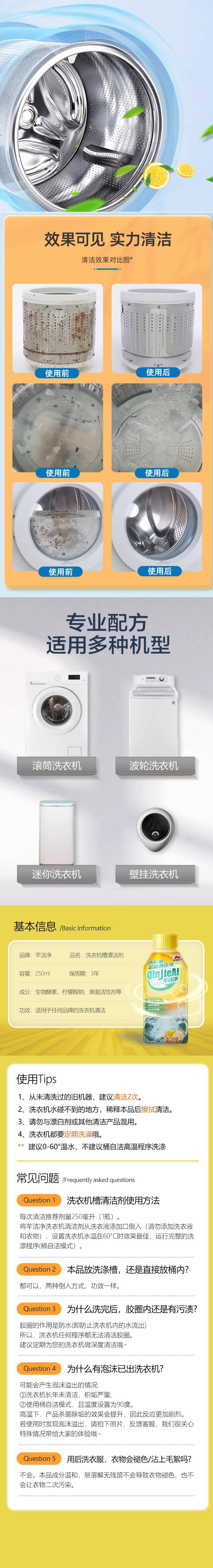 芊洁净 洗衣槽清洁剂250ml*5 6973025870559-5