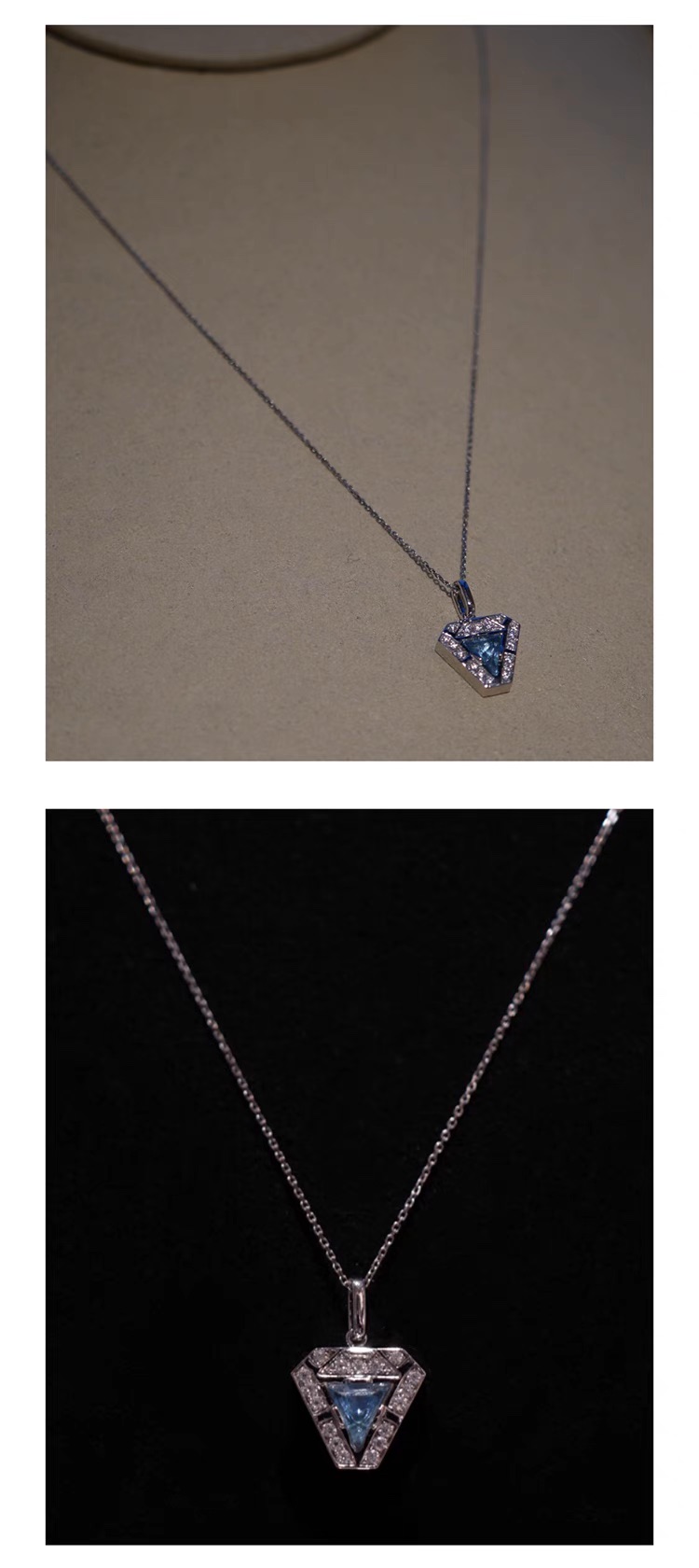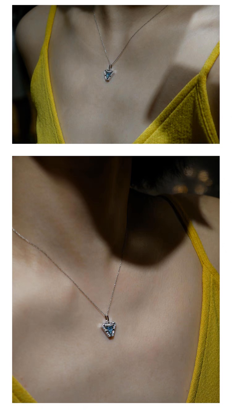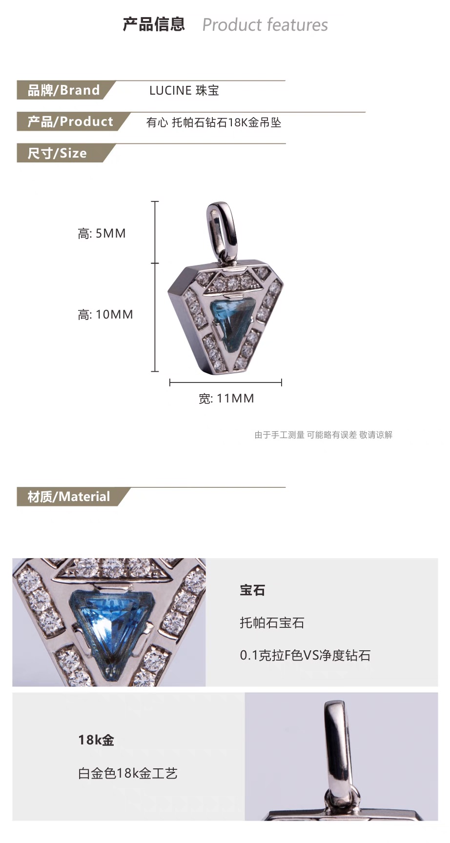 鹿鸣 有心18K白金项链锁骨钻石简约吊坠镶托帕石情人节新年送女友