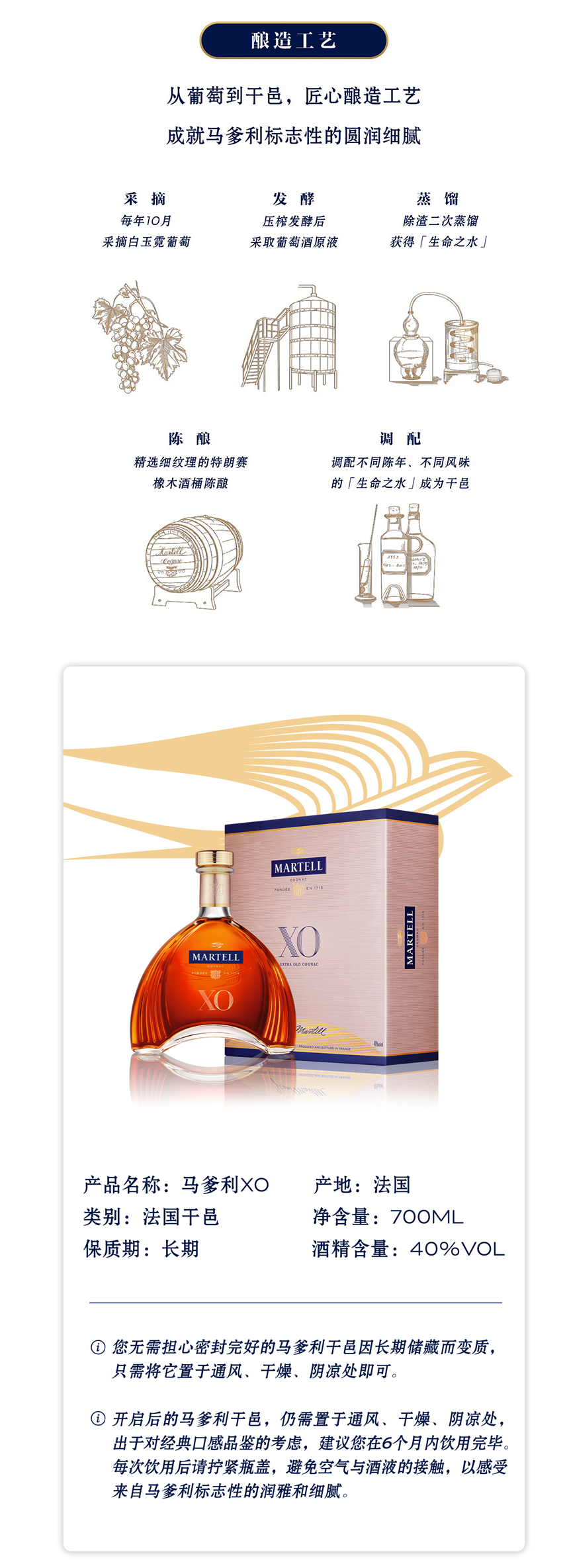 马爹利(Martell) XO 干邑白兰地 700ml 法国原装进口