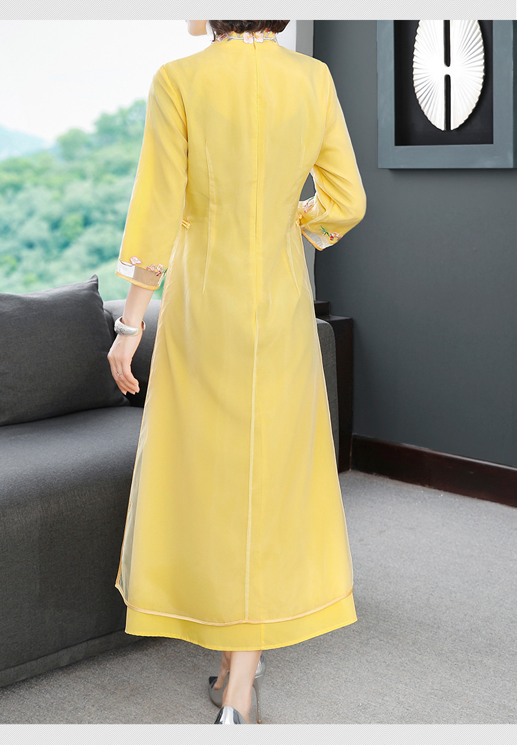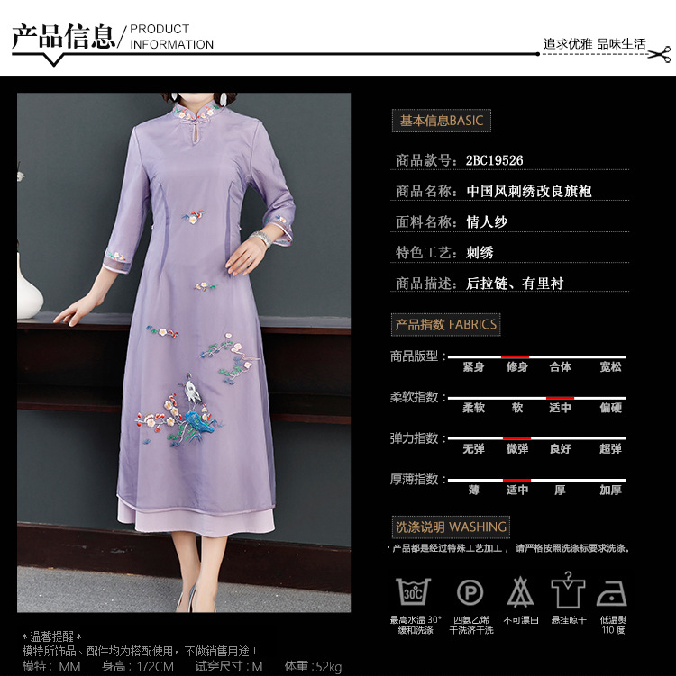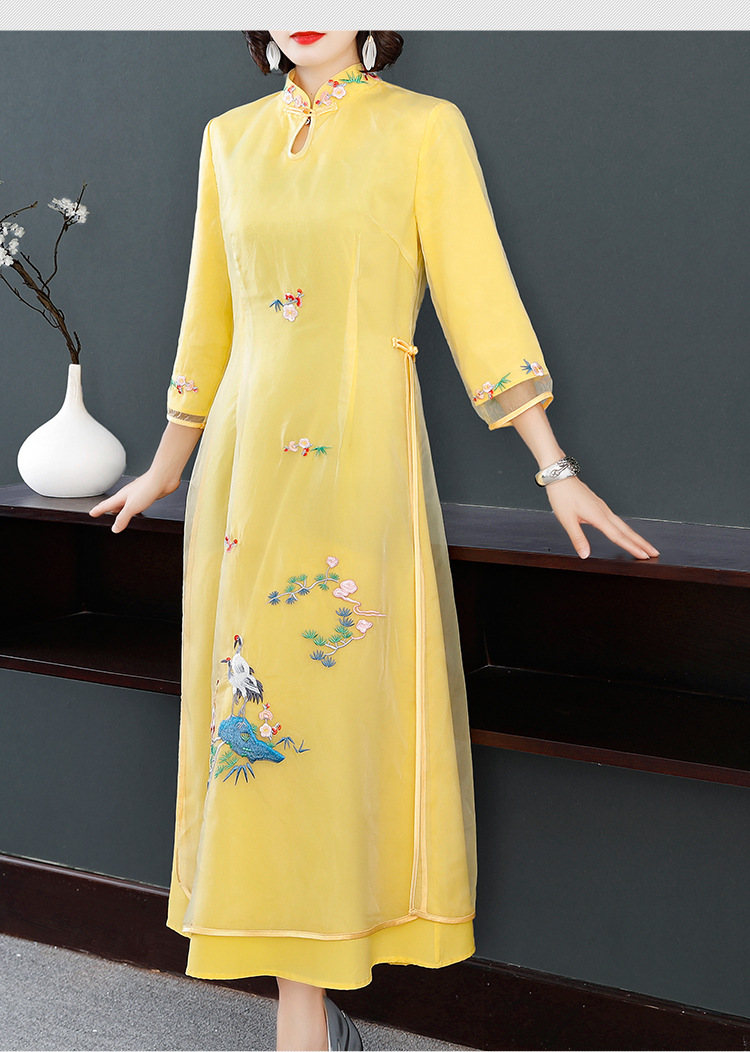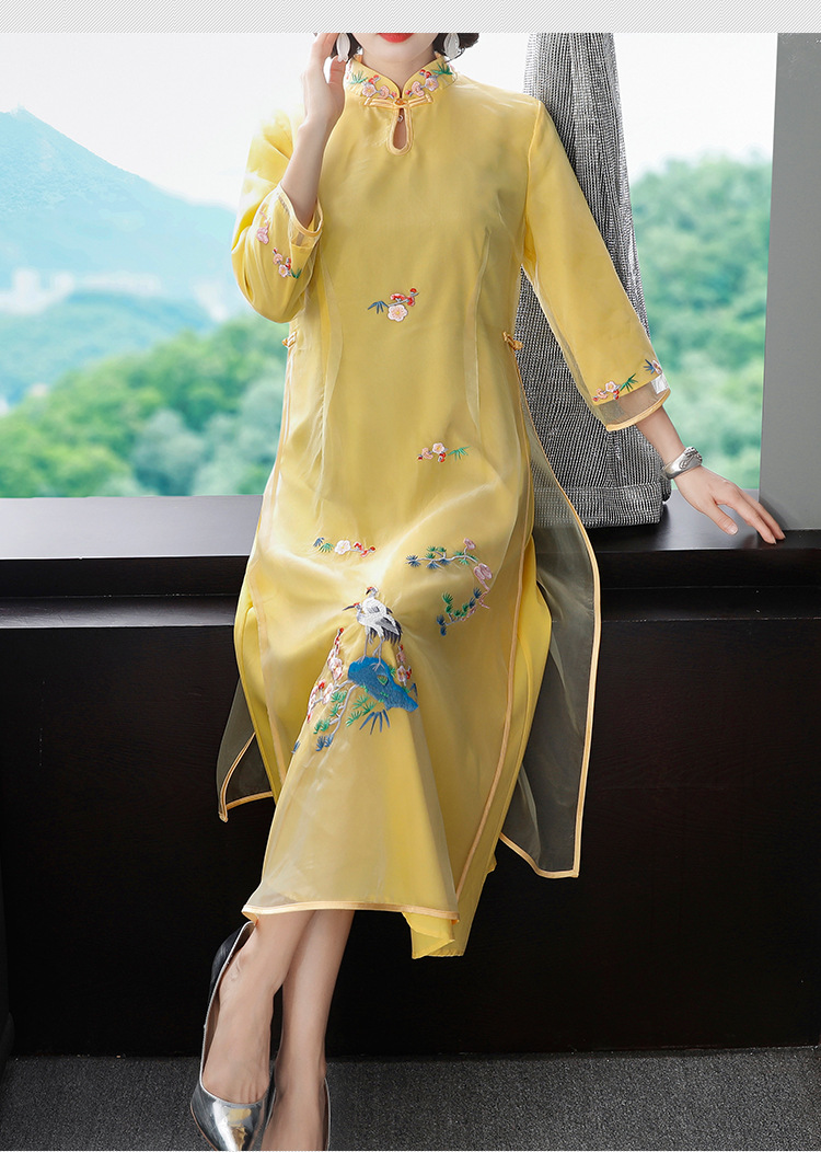 DEO-2BC19526情人纱旗袍新款宽松大码刺绣连衣裙