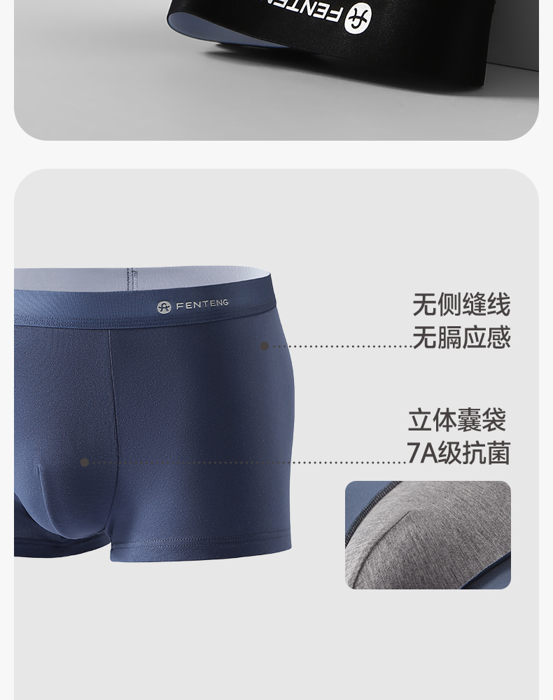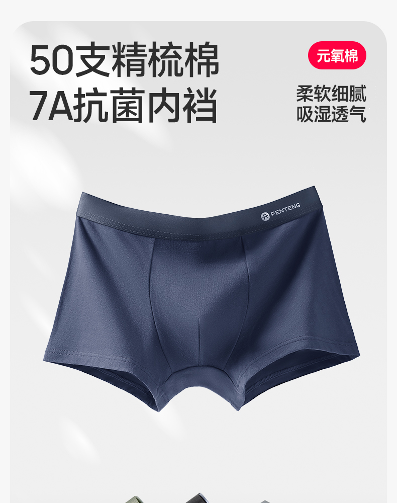 芬腾男士棉质内裤舒适透气抗菌内档平角裤青年男款大码四角短裤头